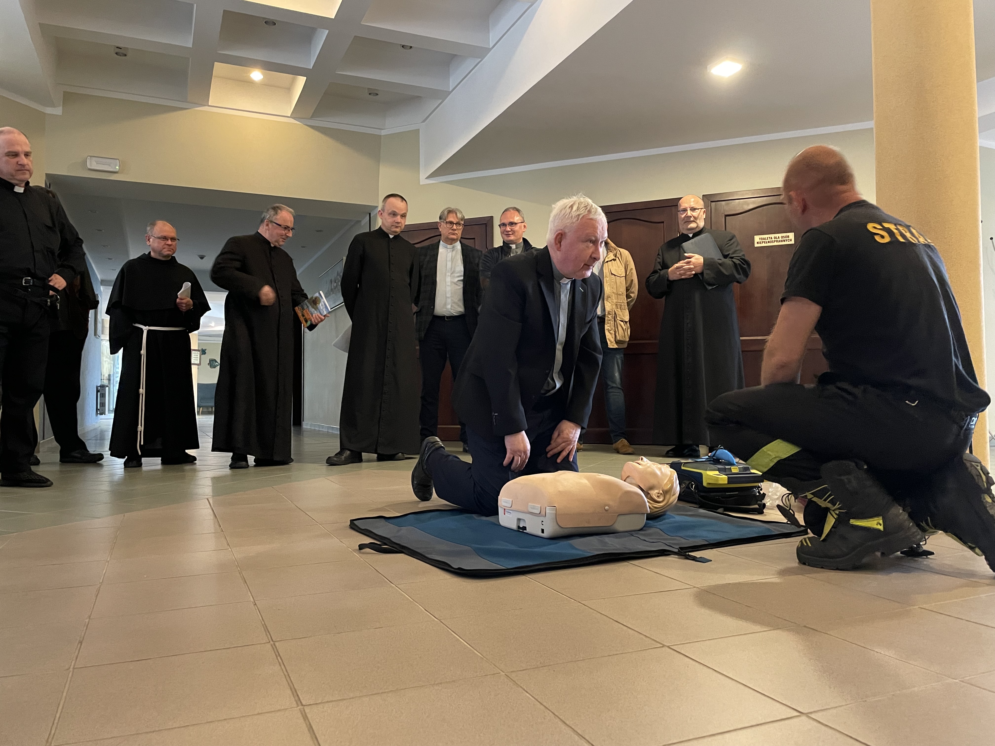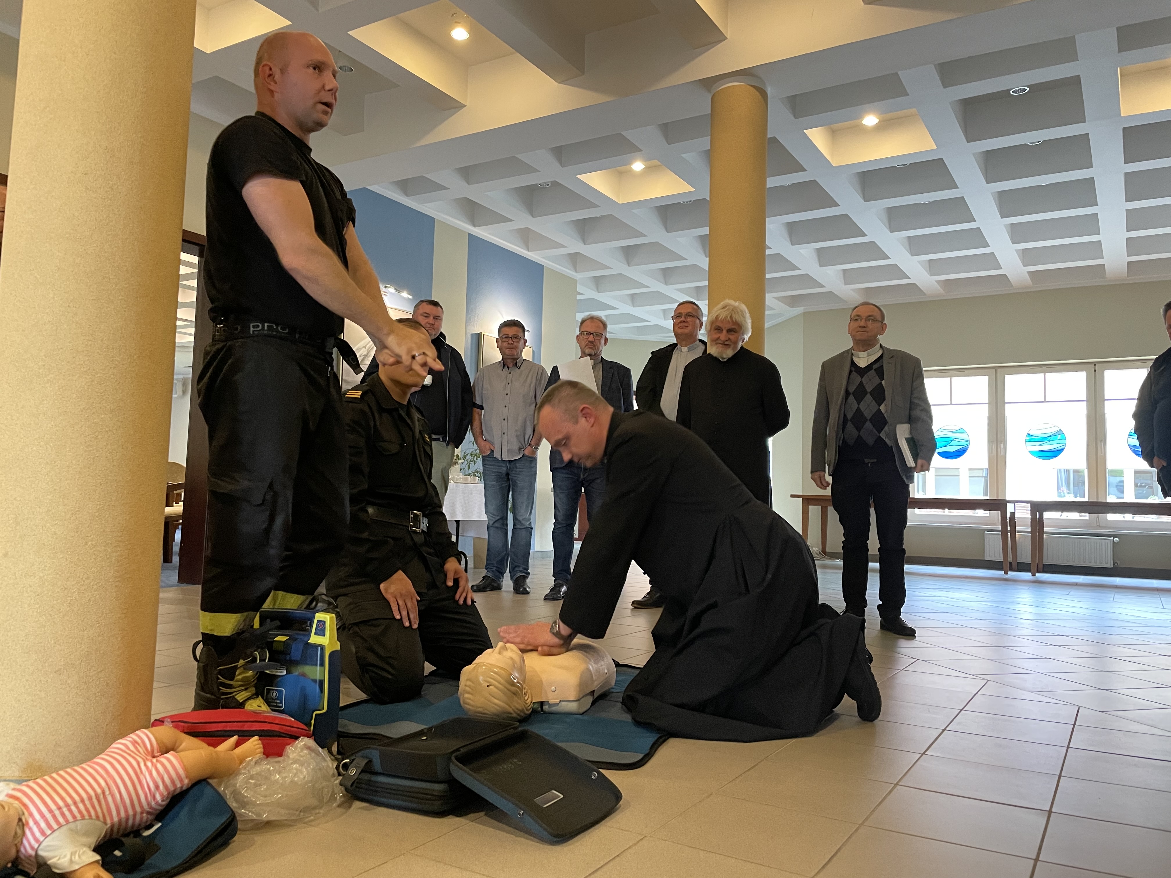 Szkolenie z zakresu bezpieczeństwa ppoż, w tym przepisów przeciwpożarowych, zasad postępowania na wypadek pożaru oraz z zakresu udzielania pierwszej pomocy przedmedycznej osób duchownych terenu pow. koszalińskiego