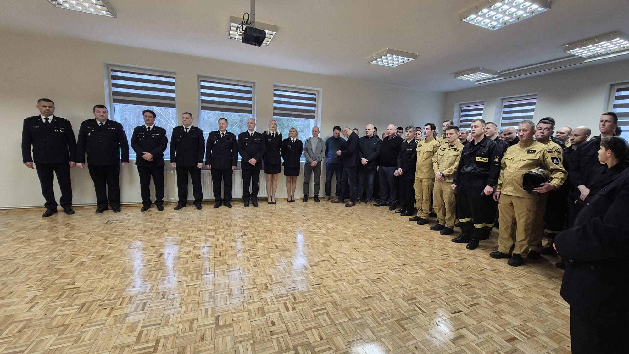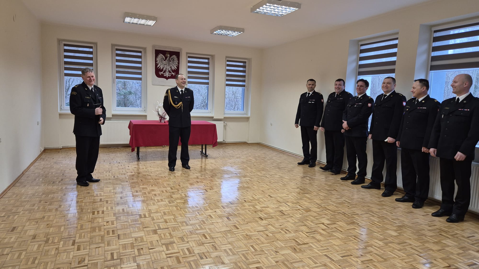 Odchodzącego funkcjonariusza żegnali: komendant miejski PSP w Koszalinie bryg. Zygmunt Adamczyk, funkcjonariusze, pracownicy cywilni oraz emeryci tutejszej Komendy.