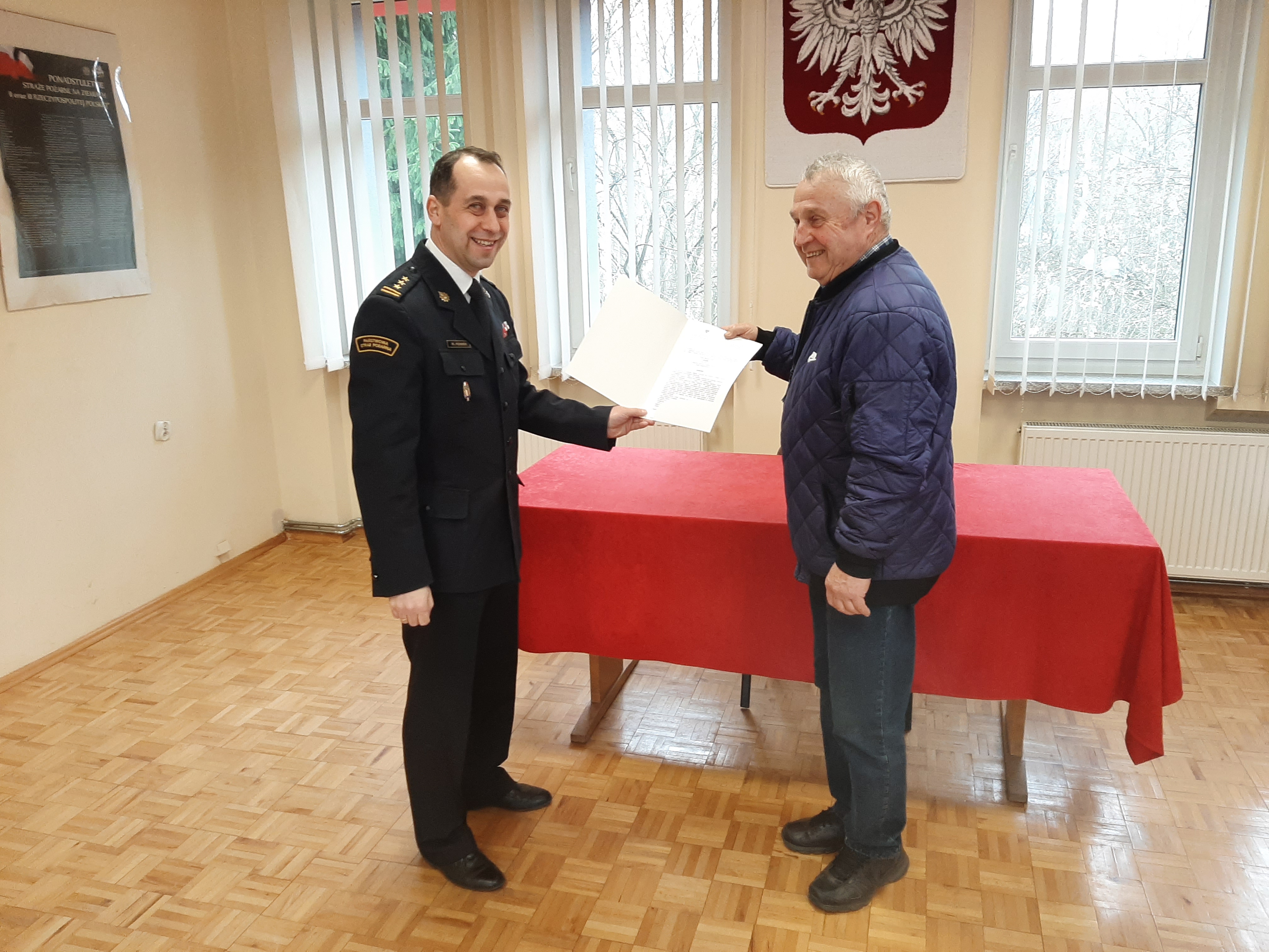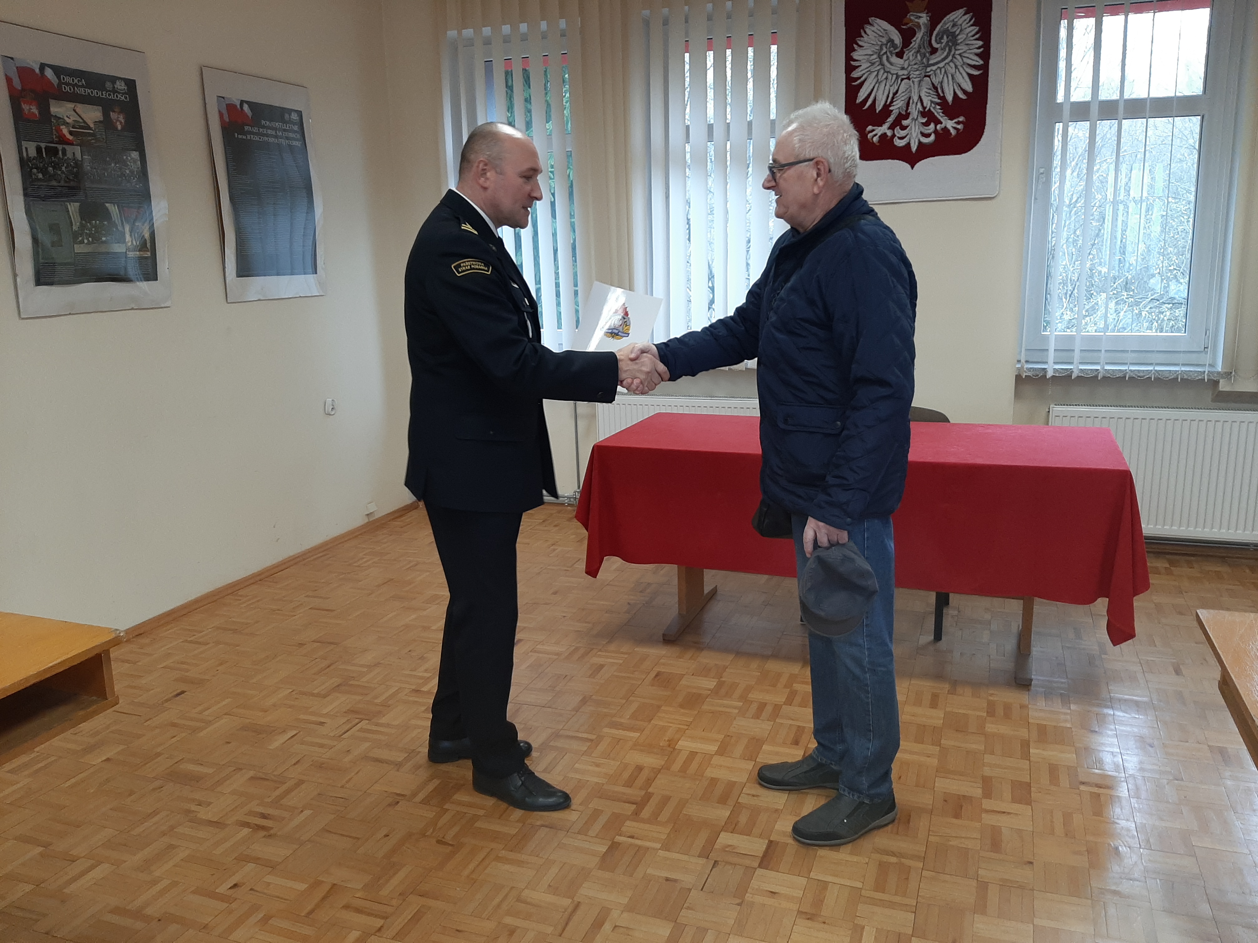 W trakcie spotkania Komendant Miejski PSP oraz Zastępca Komendanta Miejskiego PSP w Koszalinie, st. bryg. Mirosław Pender, st. bryg. Adam Gonciarz osobiście wręczyli decyzje przyznające ten dodatek do emerytury dwóm druhom z Ochotniczej Straży Pożarnej w Sianowie - dh Ryszardowi Kabacie oraz dh Edwardowi Pietraszkiewiczowi. Przyznanie świadczeń jest realizacją zapisów, obowiązującej od stycznia br. Ustawy o OSP. Nowy akt prawny stanowi, że świadczenie ratownicze przysługuje strażakowi ratownikowi OSP, który: