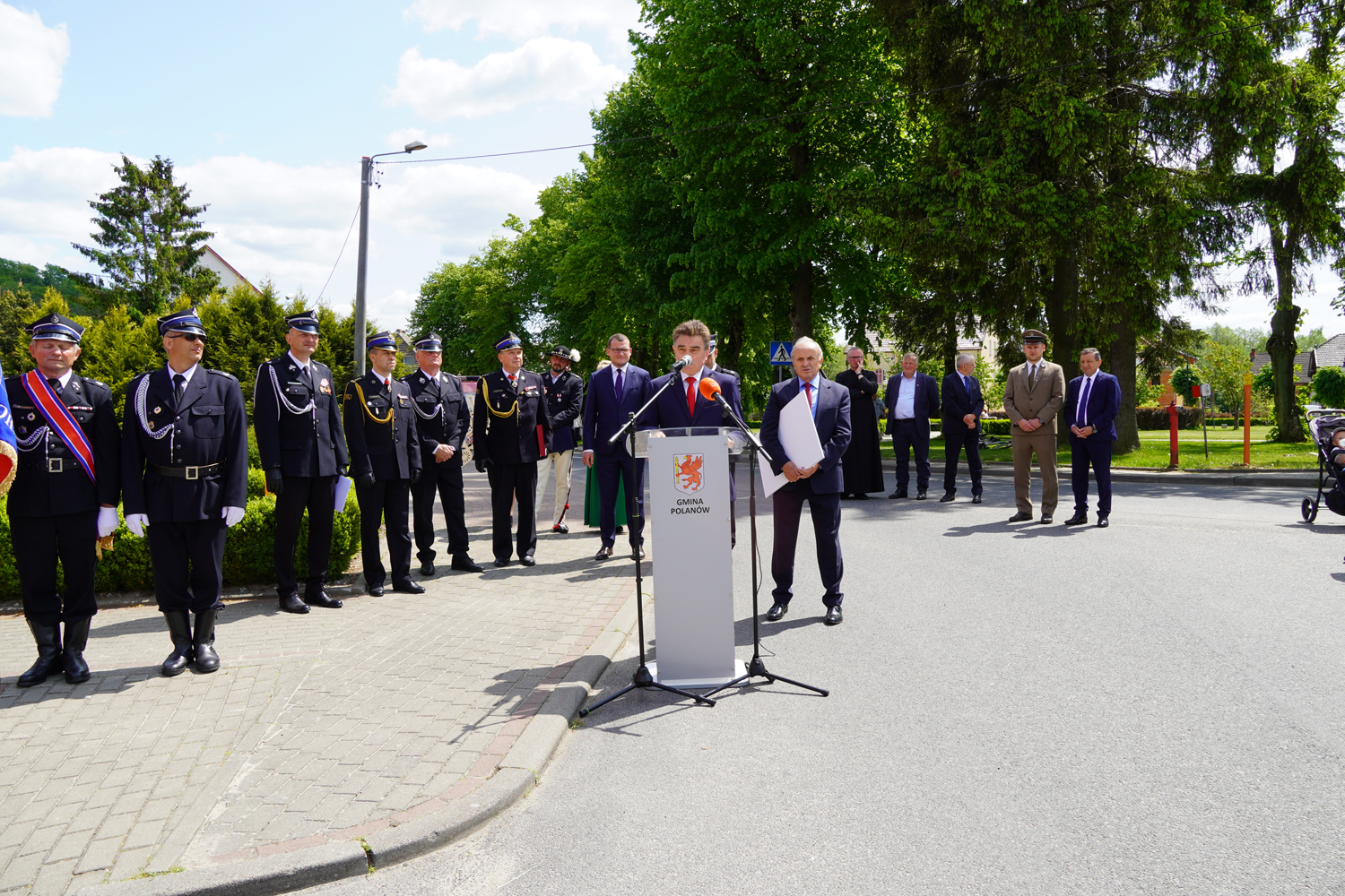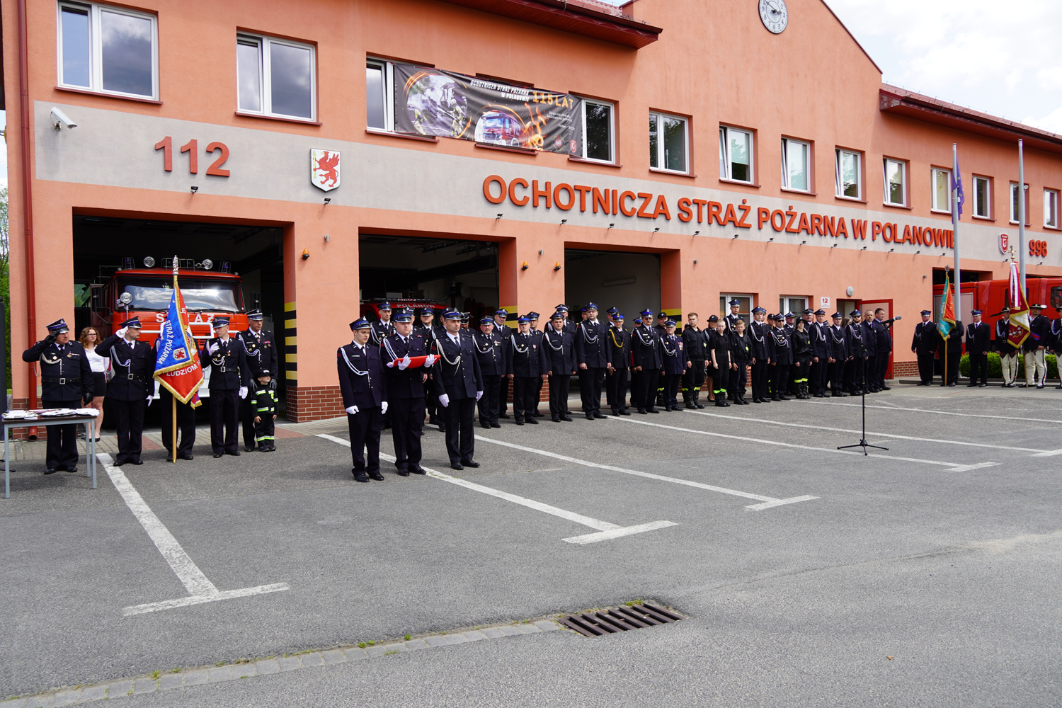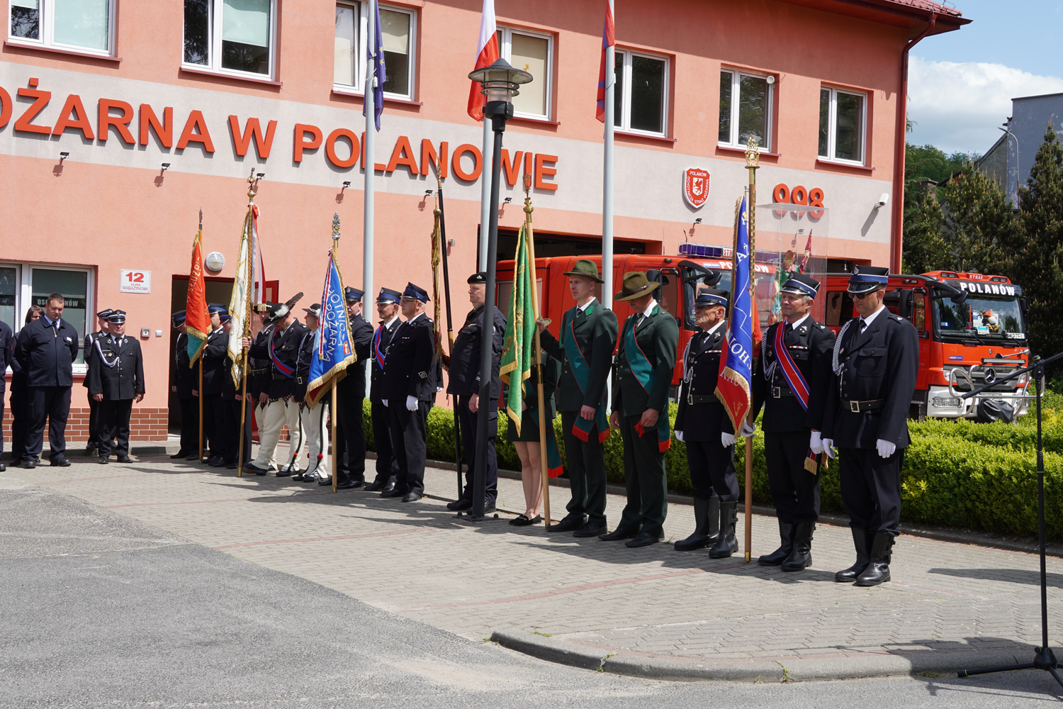 W dalszej kolejności Burmistrz Polanowa Grzegorz Lipski wraz z Prezesem OSP Polanów dh Dariuszem Kalinowskim przywitali przybyłych gości. Druh Prezes przedstawił również rys historyczny jednostki. Podczas uroczystości wręczono wyróżniającym się druhom medale, odznaczenia i wyróżnienia. Ponadto Zastępca Zachodniopomorskiego Komendanta Wojewódzkiego dokonał w imieniu Kapituły Zachodniopomorskiej udekorowania sztandaru OSP w Polanowie ,,Srebrym Krzyżem Św. Floriana".