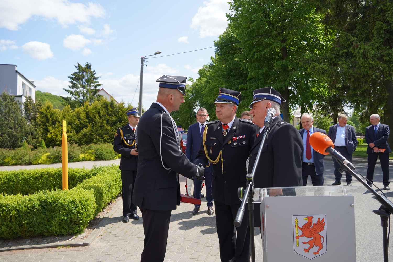 W uroczystości udział wzięli, m.in. Sekretarz Stanu w MSWiA Pan Paweł Szefernaker, Zastępca Zachodniopomorskiego Komendanta Wojewódzkiego PSP st. bryg. Mirosław Pender, Prezes ZOW ZOSP RP w Szczecinie dh Marek Kowalski, Komendant Miejski PSP w Koszalinie st. bryg. Jacek Szpuntowicz, Prezes ZOP ZOSP RP w Koszalinie dh Roman Budynek, przedstawiciele władz samorządowych, druhowie z zaprzyjaźnionych jednostek OSP oraz lokalna społeczność.