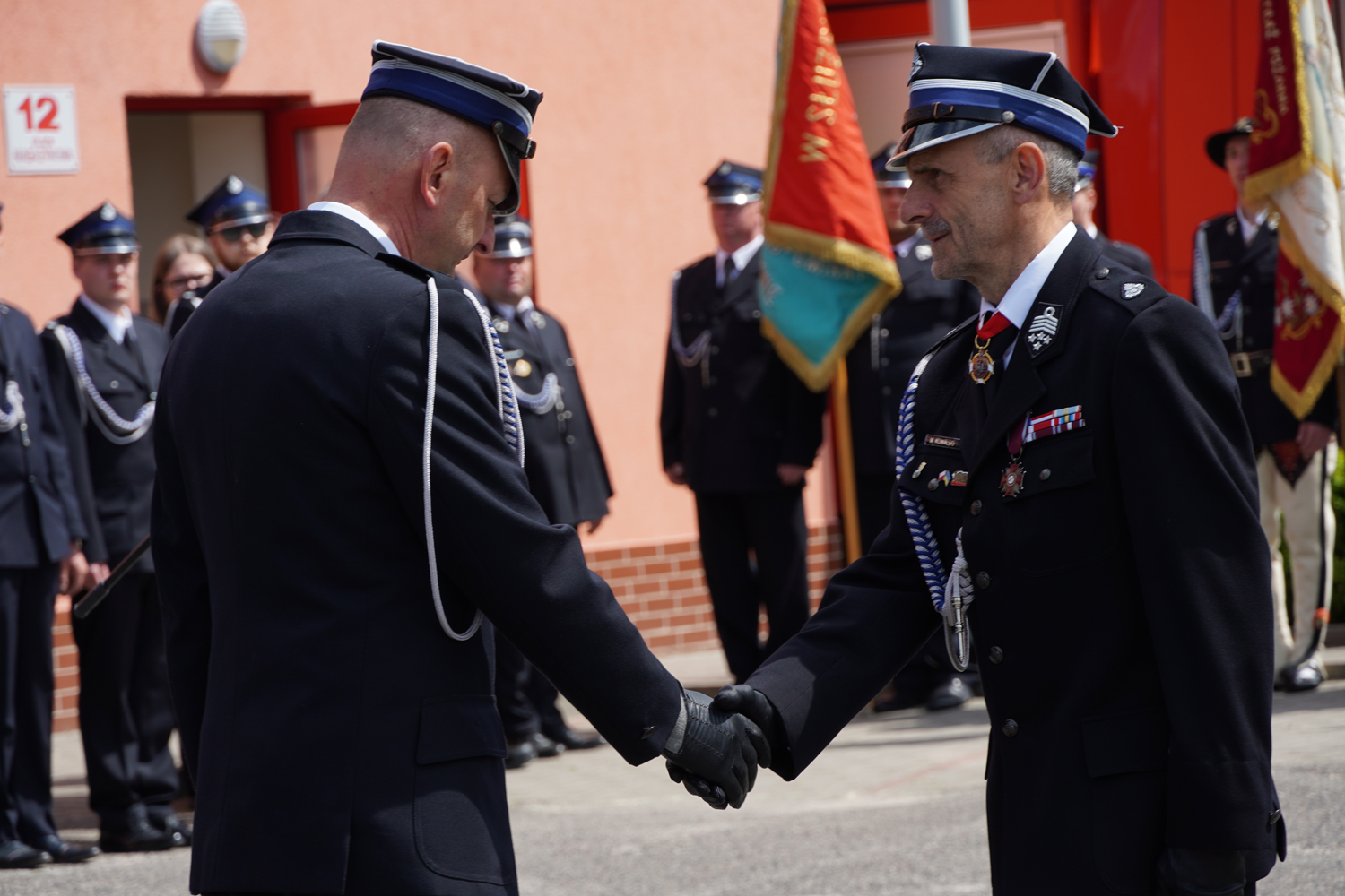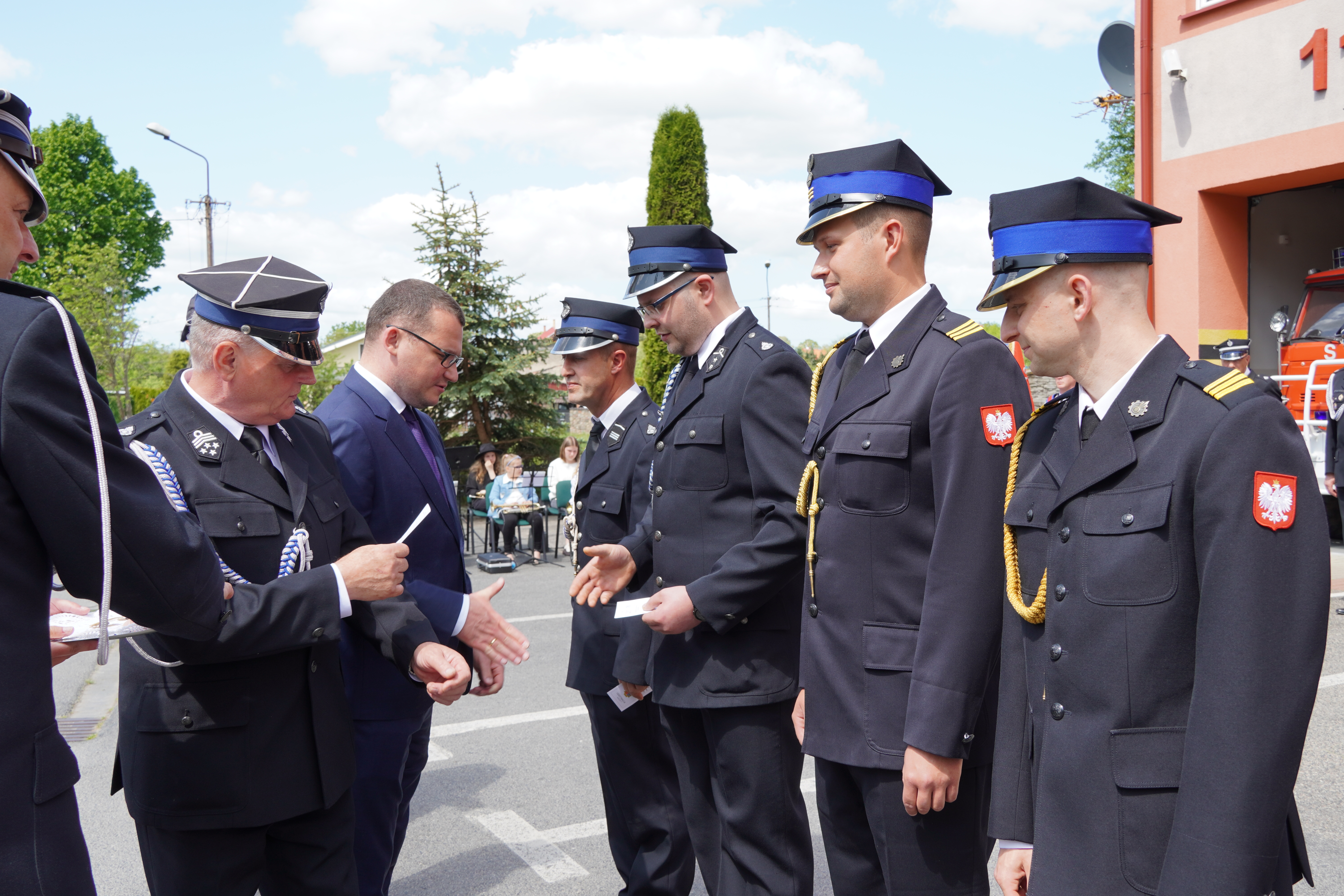 Pan Paweł Szefernaker Sekretarz Stanu w MSWiA, st. bryg. Jacek Szpuntowicz Komendant Miejski PSP w Koszalinie, Prezes ZOP ZOSP RP dh Roman Budynek wręczyli strażakom z Polanowa pamiątki jubileuszowe, dziękując za ich ofiarną służbę przez ten cały okres funkcjonowania OSP.
