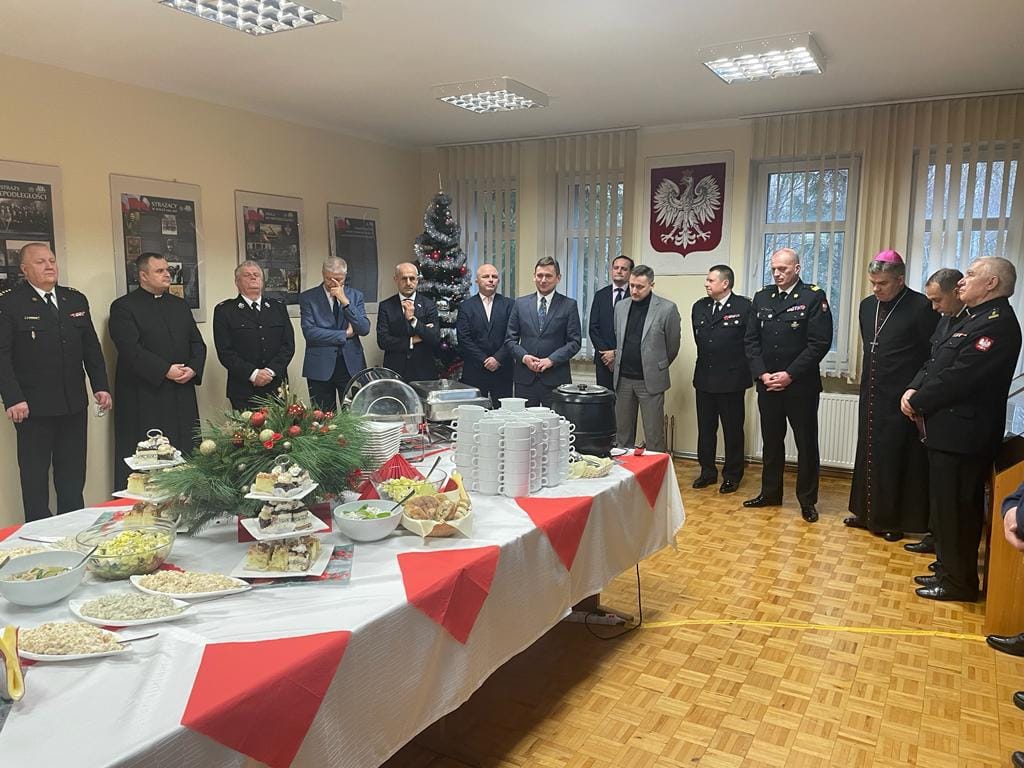 W dniu 22 grudnia br. tuż przed Świętami Bożego Narodzenia w siedzibie KMPSP w Koszalinie odbyło się spotkanie przy wigilijnym stole, na którym złożyły się świąteczne dekoracje, tradycyjne potrawy wigilijne.