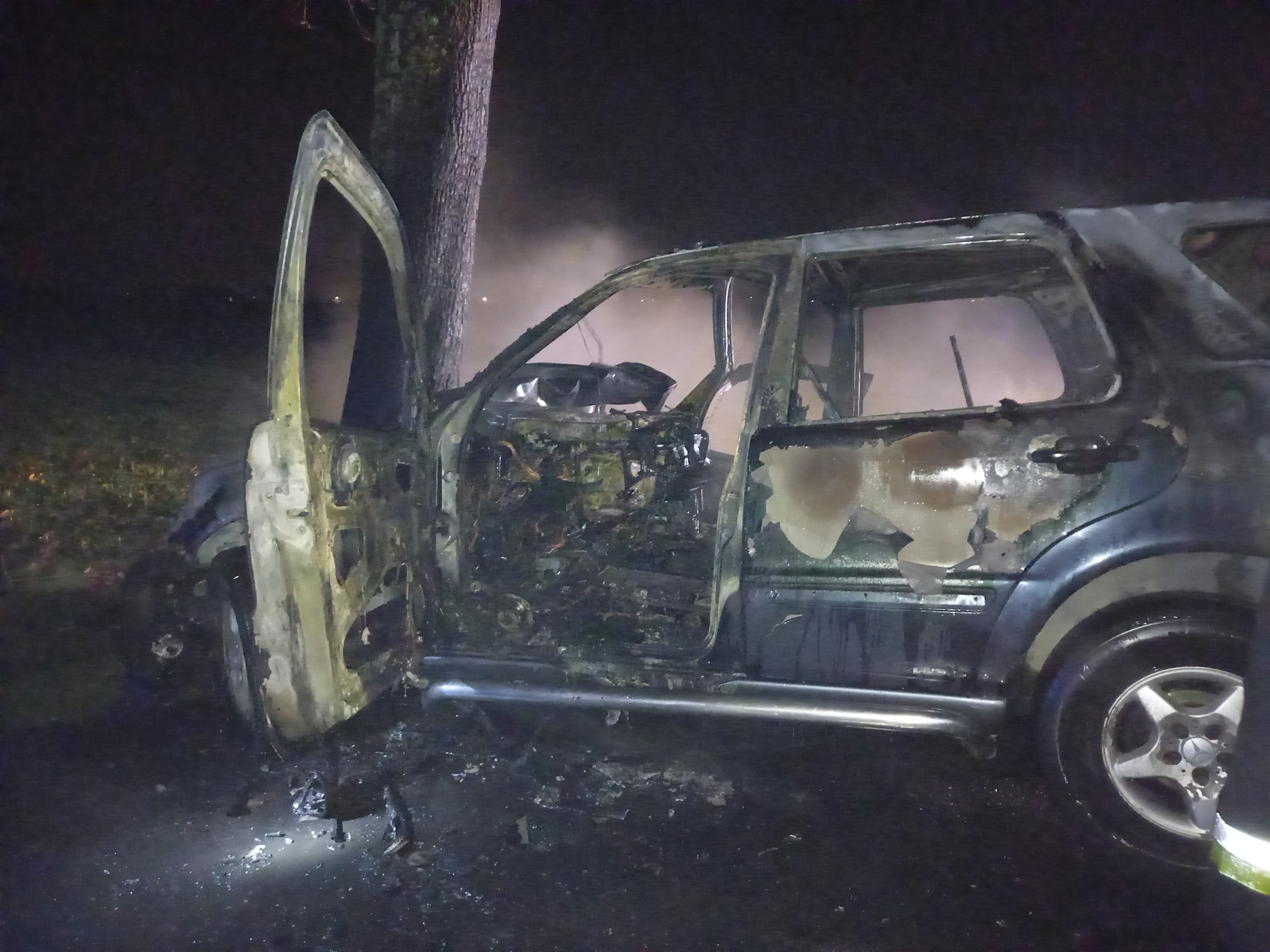 Na miejscu zdarzenia okazało się że auto osobowe marki Mercedes uderzyło w drzewo, w wyniku czego stanęło w płomieniach.