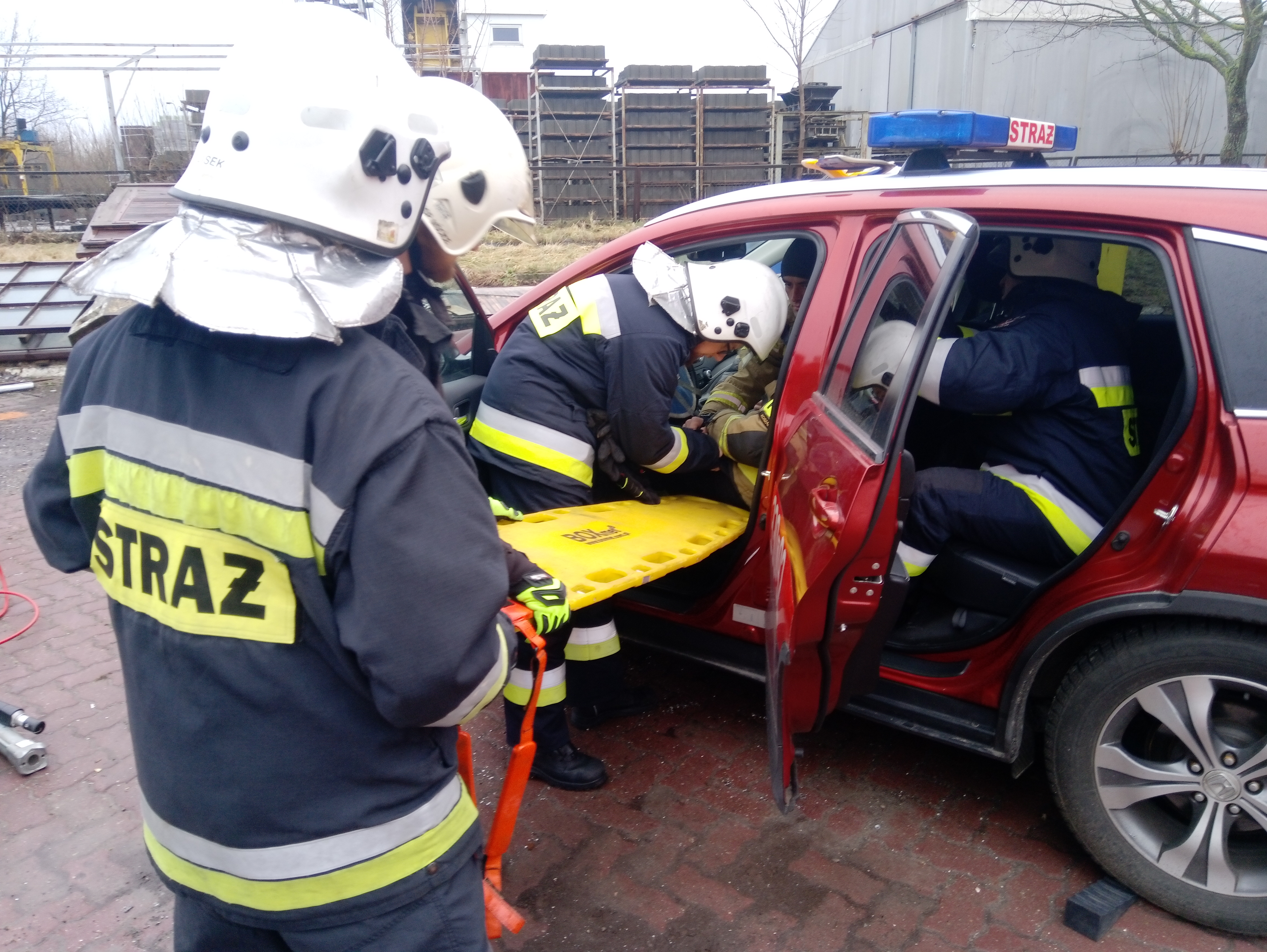 W poszczególnych etapach egzaminu weryfikowano dodatkowo umiejętności obsługi narzędzi hydraulicznych, sprawianie linii wężowych, pracę zespołową itd.