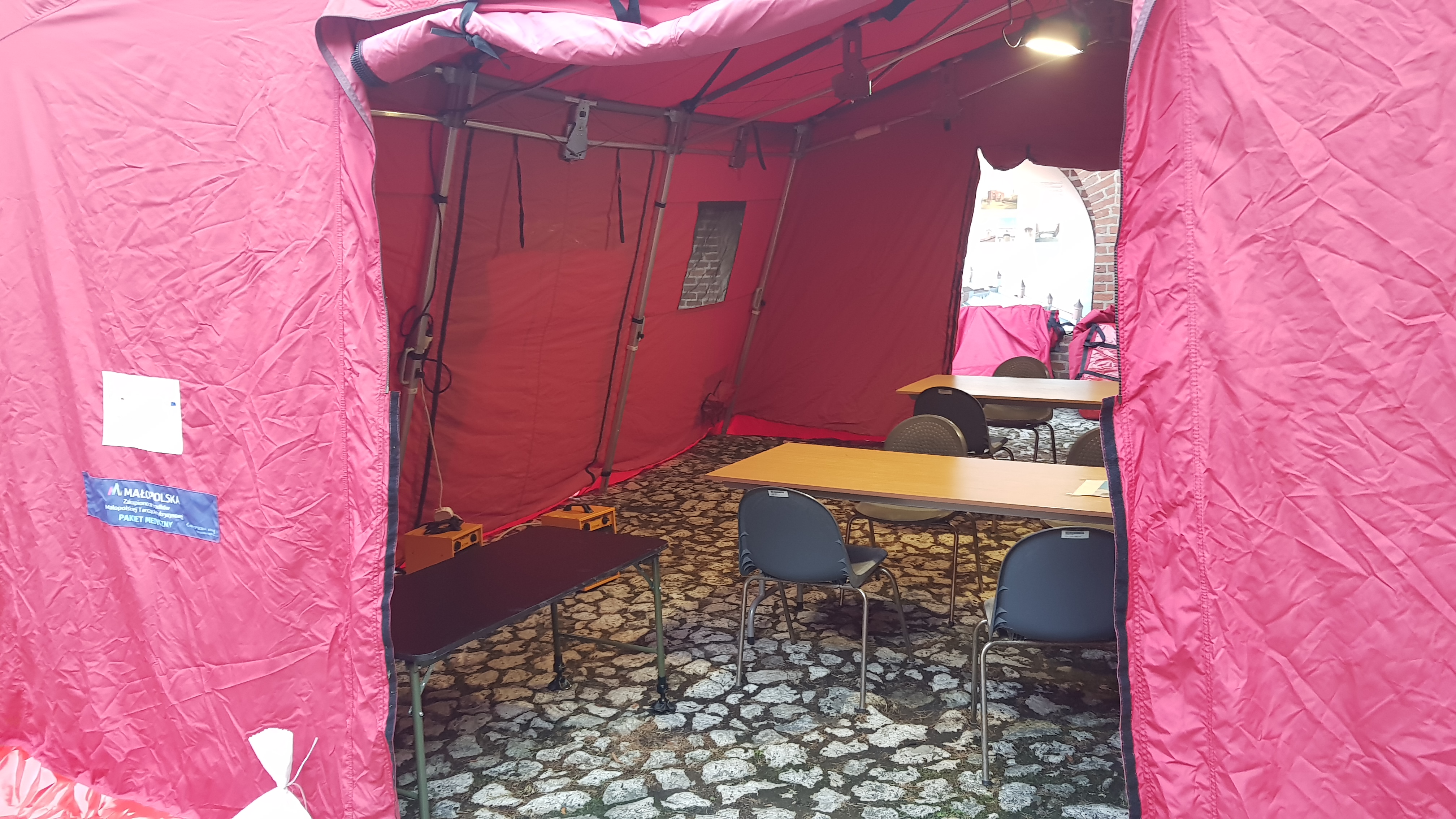 z trwającą pandemią koronawirusa, które na co dzień stacjonują głównie w jednostkach OSP. Punkt budowany był przez strażaków z JRG 1 KM PSP w Krakowie już w dniu 10 listopada, natomiast w dniu szczepienia strażacy zapewniali zabezpieczenia przeciwpożarowe, pomoc techniczną, oraz rozdawali flagi zaszczepionym mieszkańcom Krakowa.