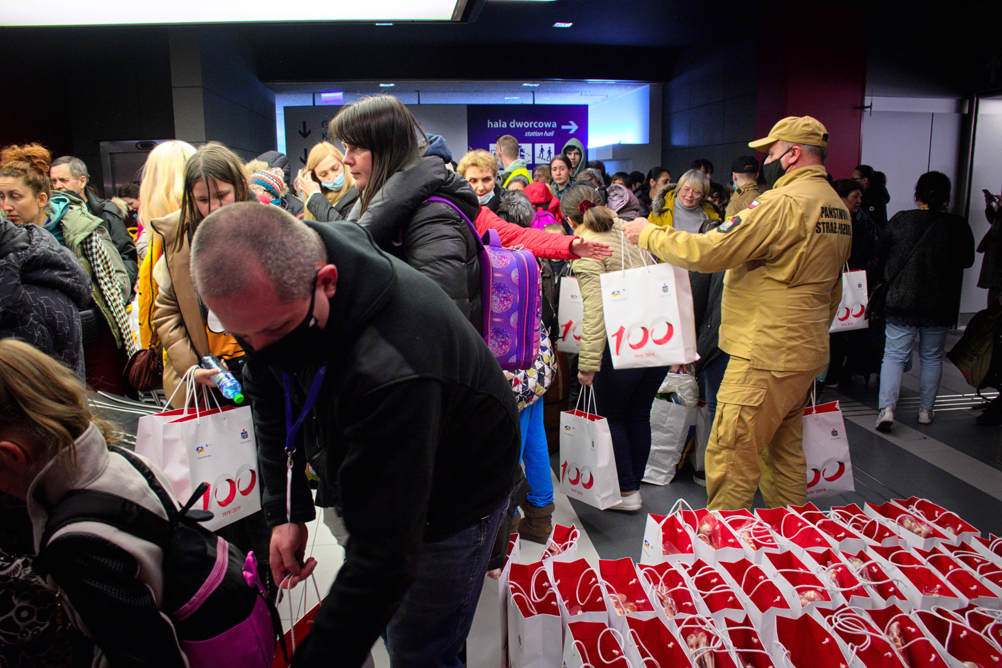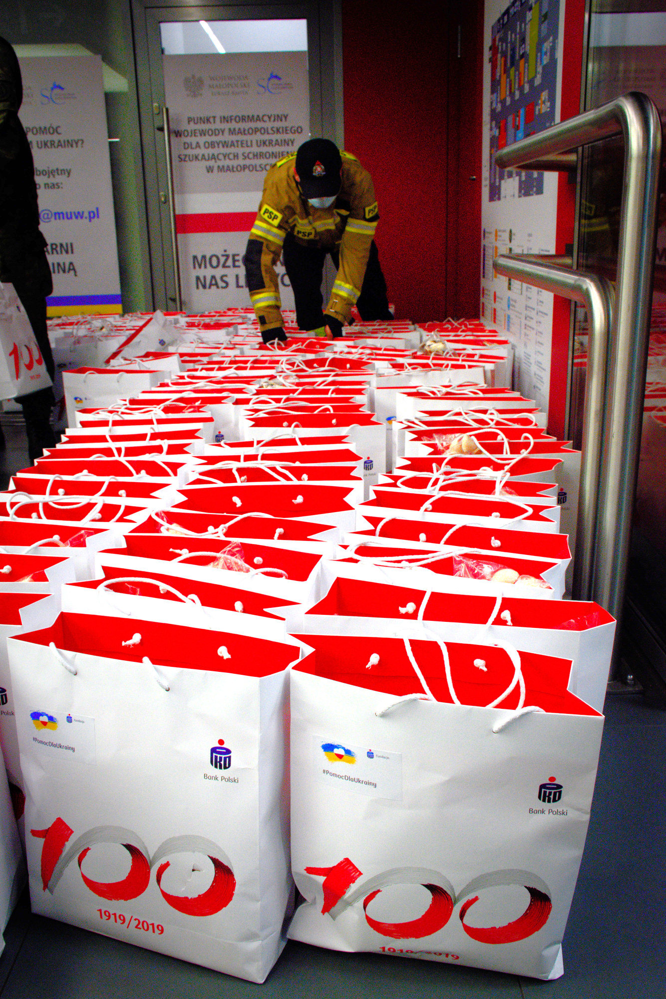 Komenda Miejska Państwowej Straży Pożarnej w Krakowie wspólnie z Małopolski Urząd Wojewódzki w ramach obsługi przyjeżdżających na Dworzec Główny przygotowali dystrybucje miłych niespodzianek, w postaci pluszowych zwierzaków wręczanym najmłodszym uchodźcom z Ukrainy.
