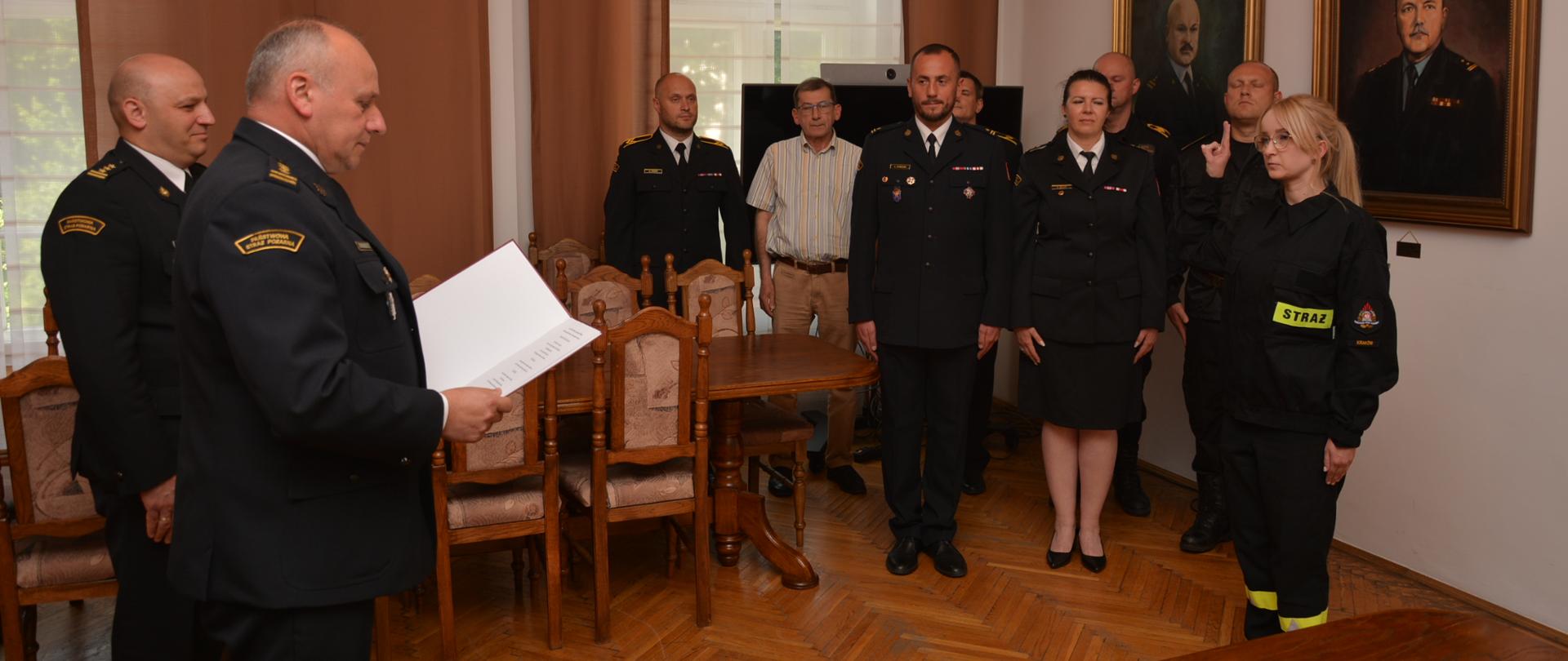 01.06.2023 KM PSP KrakówUroczyste ślubowanie funkcjonariuszki Wydziału Kwatermistrzowskiego KM PSP w Krakowie