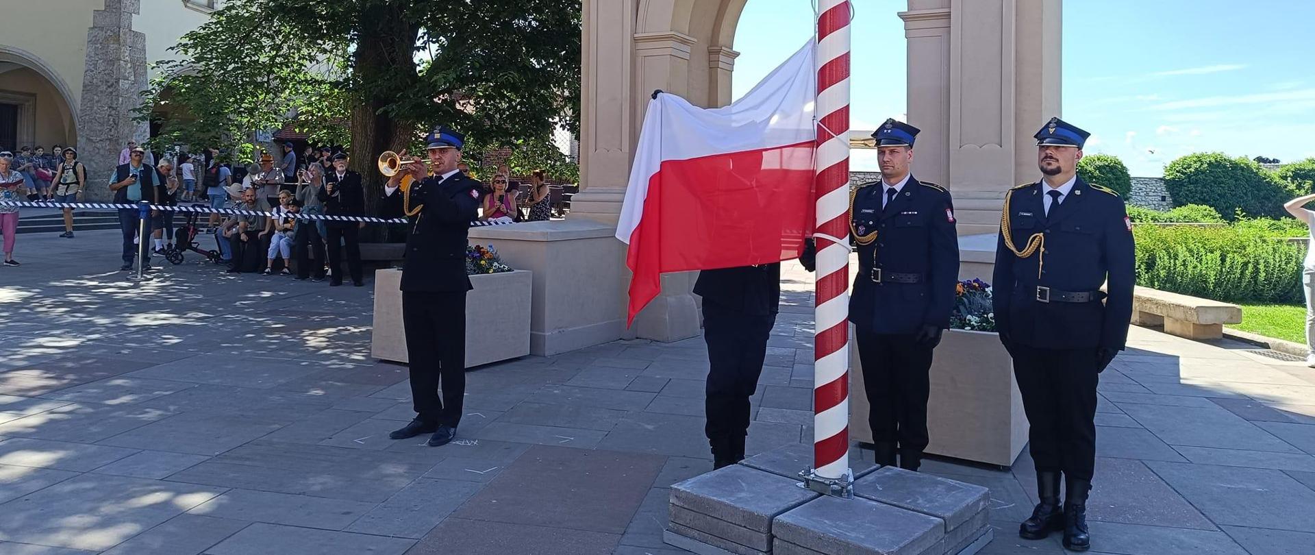02.05.2024 KrakówUroczyste Podniesienie Flagi Państwowej w Komendzie Miejskiej PSP w Krakowie