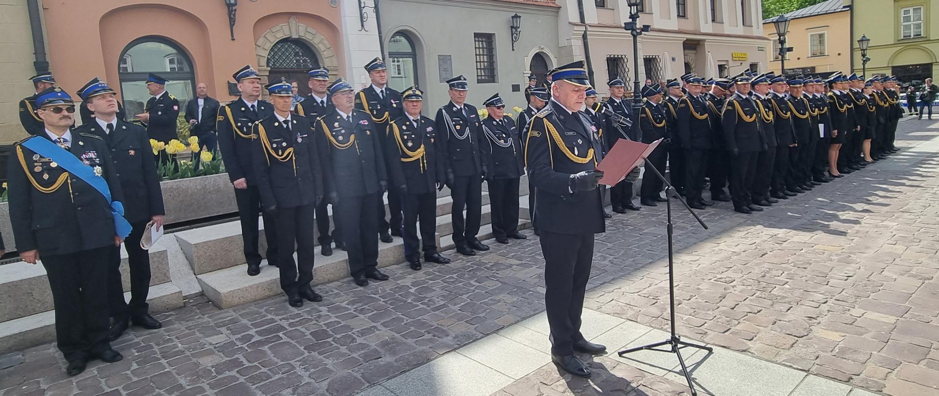 25.05.2024 KM KrakówApel z okazji dnia strażaka oraz 25-lecia Zarządu Powiatowego ZOSP RPDzień Strażaka KM PSP w Krakowie na Wzgórzu Wawelskim 25.05.2024r.