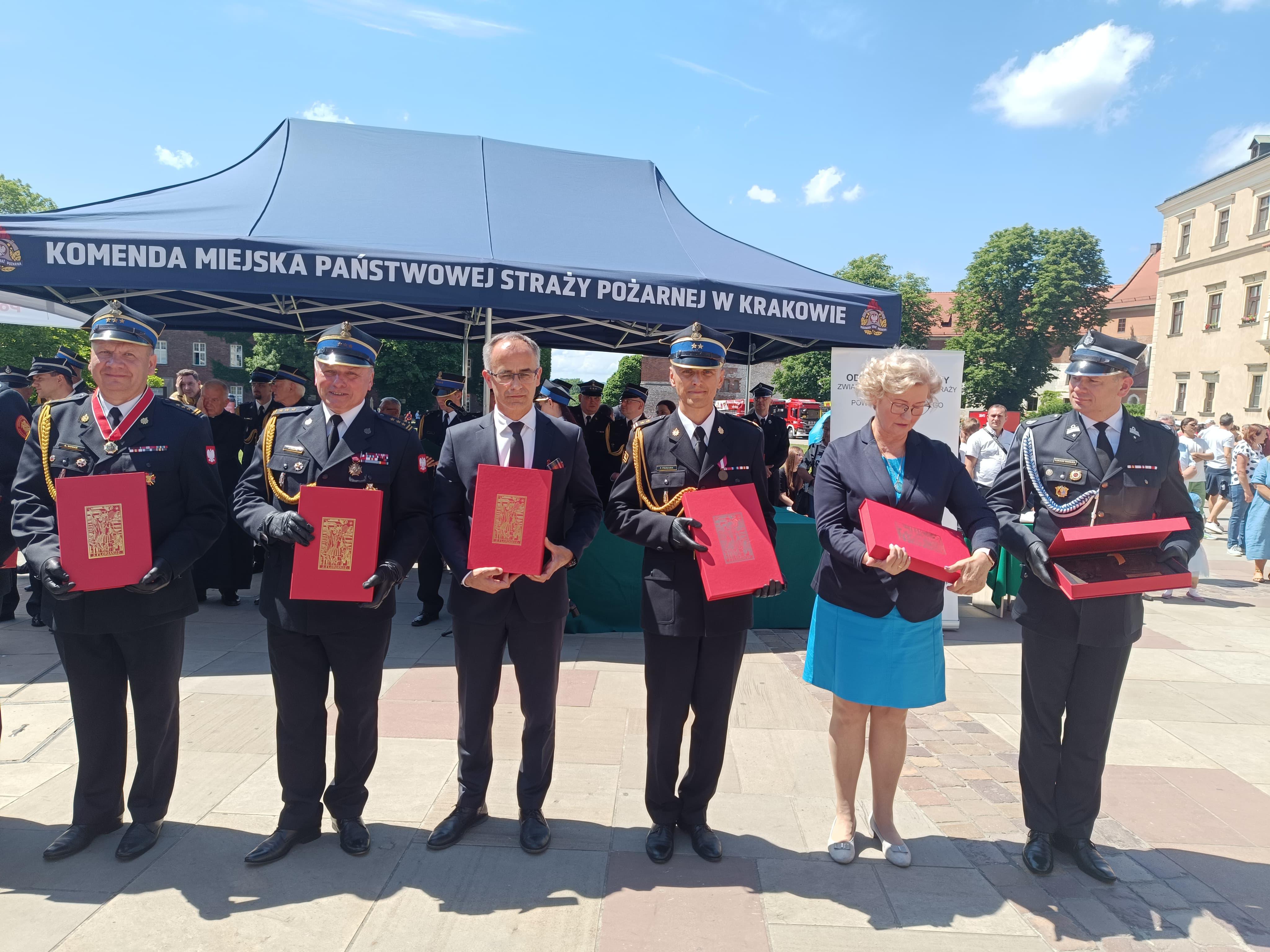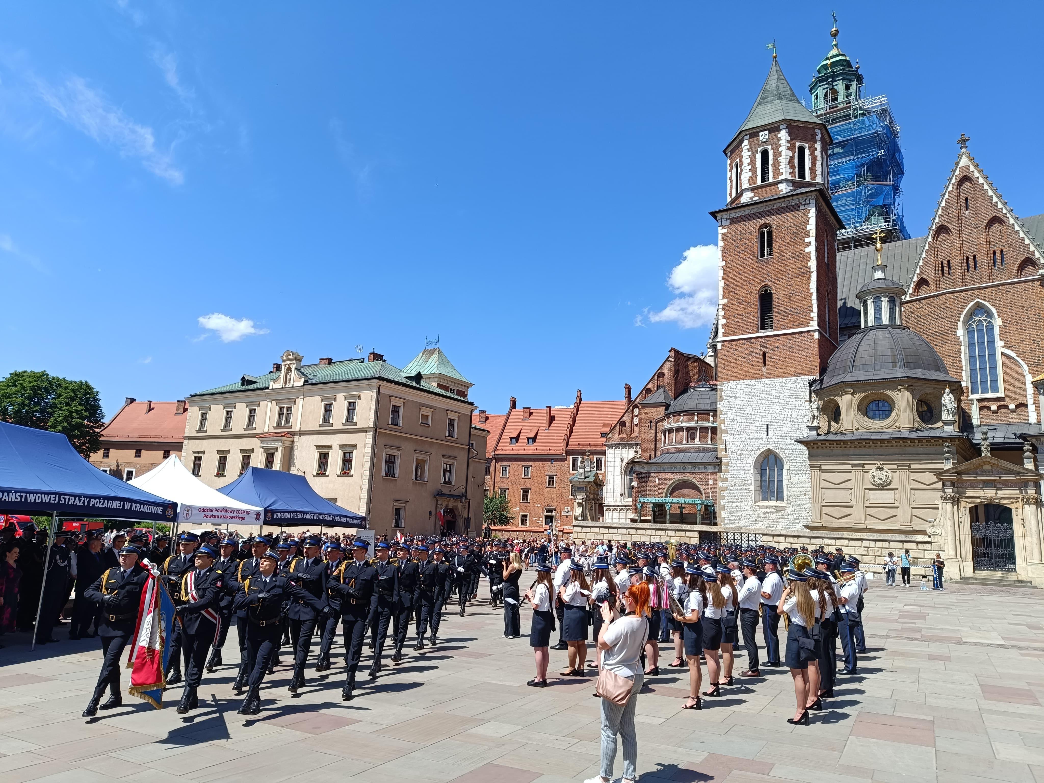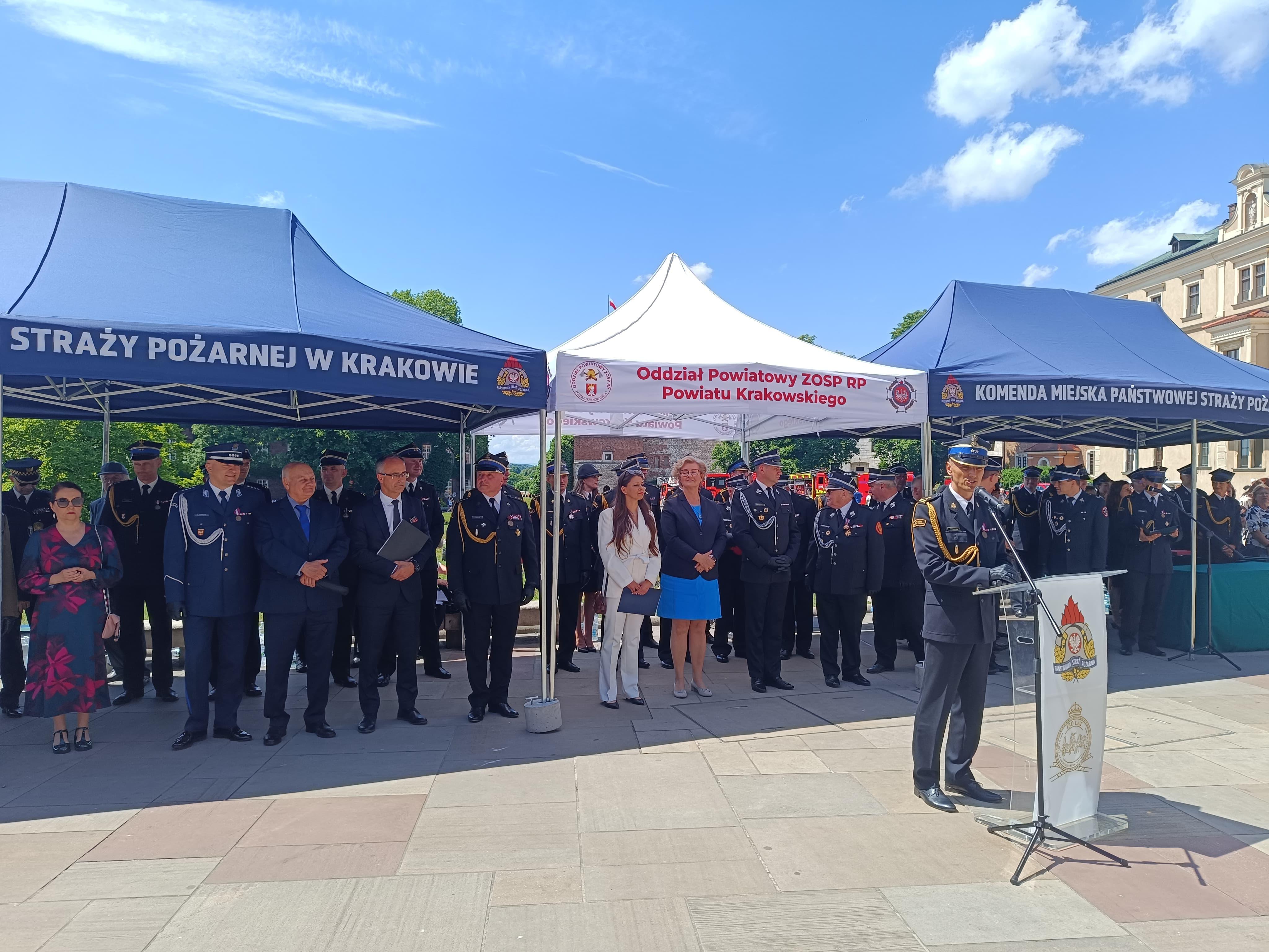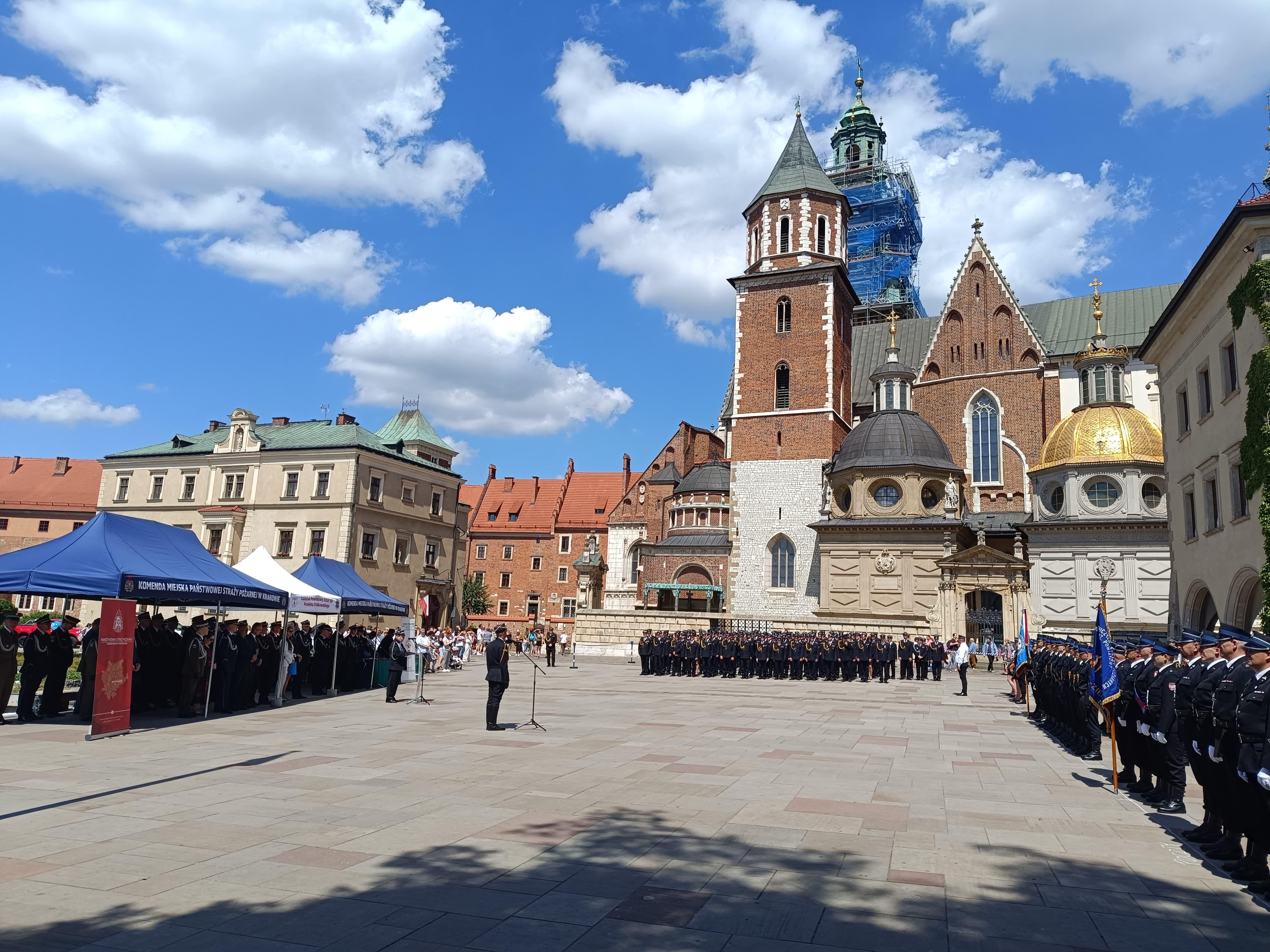 Na wzgórzu wawelskim podczas uroczystego apelu z okazji dnia strażaka połączonego z 25-leciem Zarządu Oddziału Powiatowego ZOSP RP wręczono odznaczenia, państwowe, resortowe, medale oraz awanse na stopnie w korpusach oficerskim, aspiranckim i podoficerskim.
