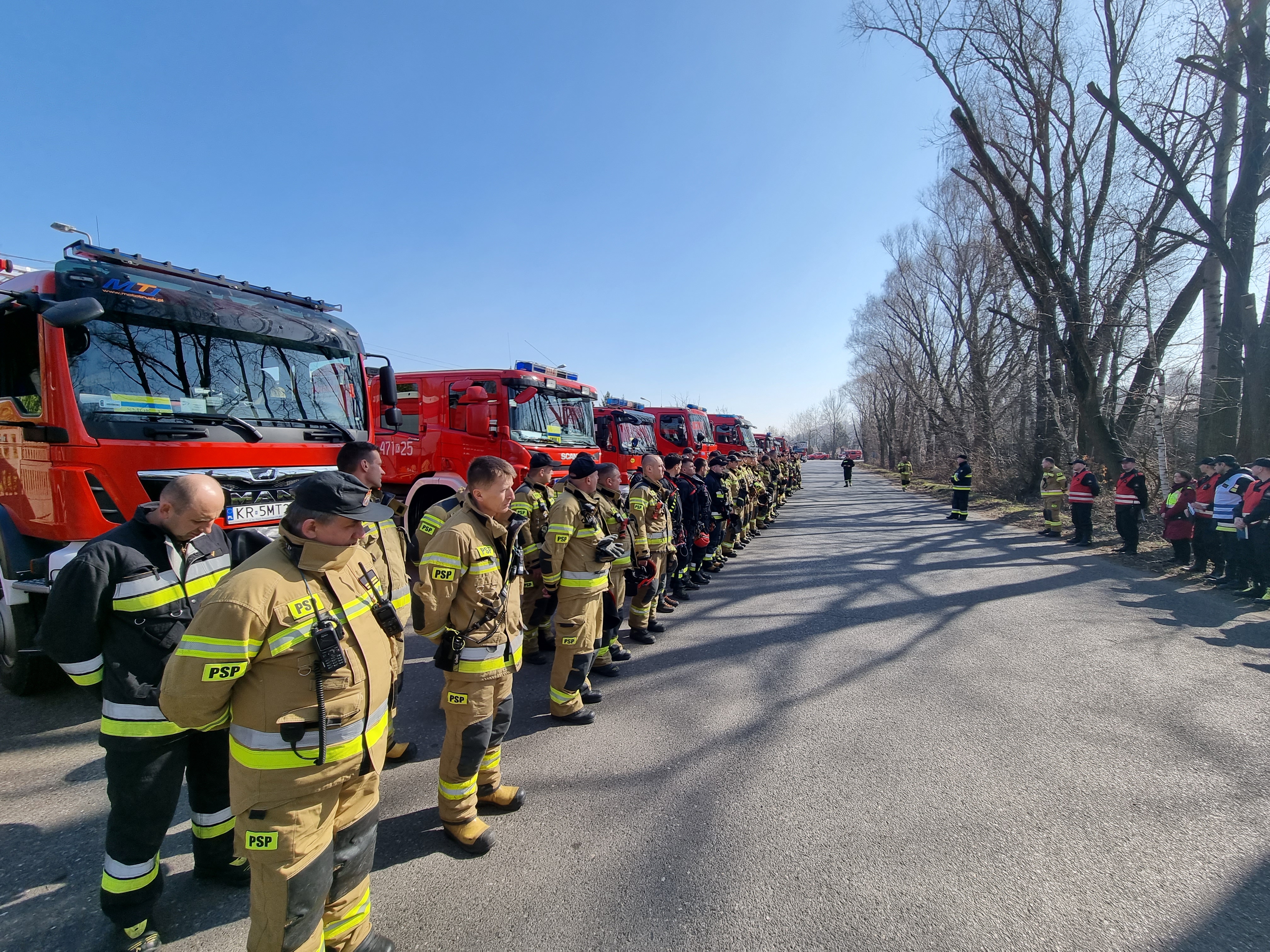 W ćwiczeniach udział wzięło ponad 100 strażaków, 26 zastępów ratowniczo - gaśniczych z terenu małopolski, funkcję Kierującego Działaniem Ratowniczym sprawował Zastępca Komendanta Miejskiego PSP w Krakowie bryg. Andrzej Nowak, którego wsparcie stanowili Dowódcy odcinków bojowych, oraz sztab Komendanta Miejskiego PSP na bazie pojazdu SDŁ Renault z KW PSP w Krakowie.