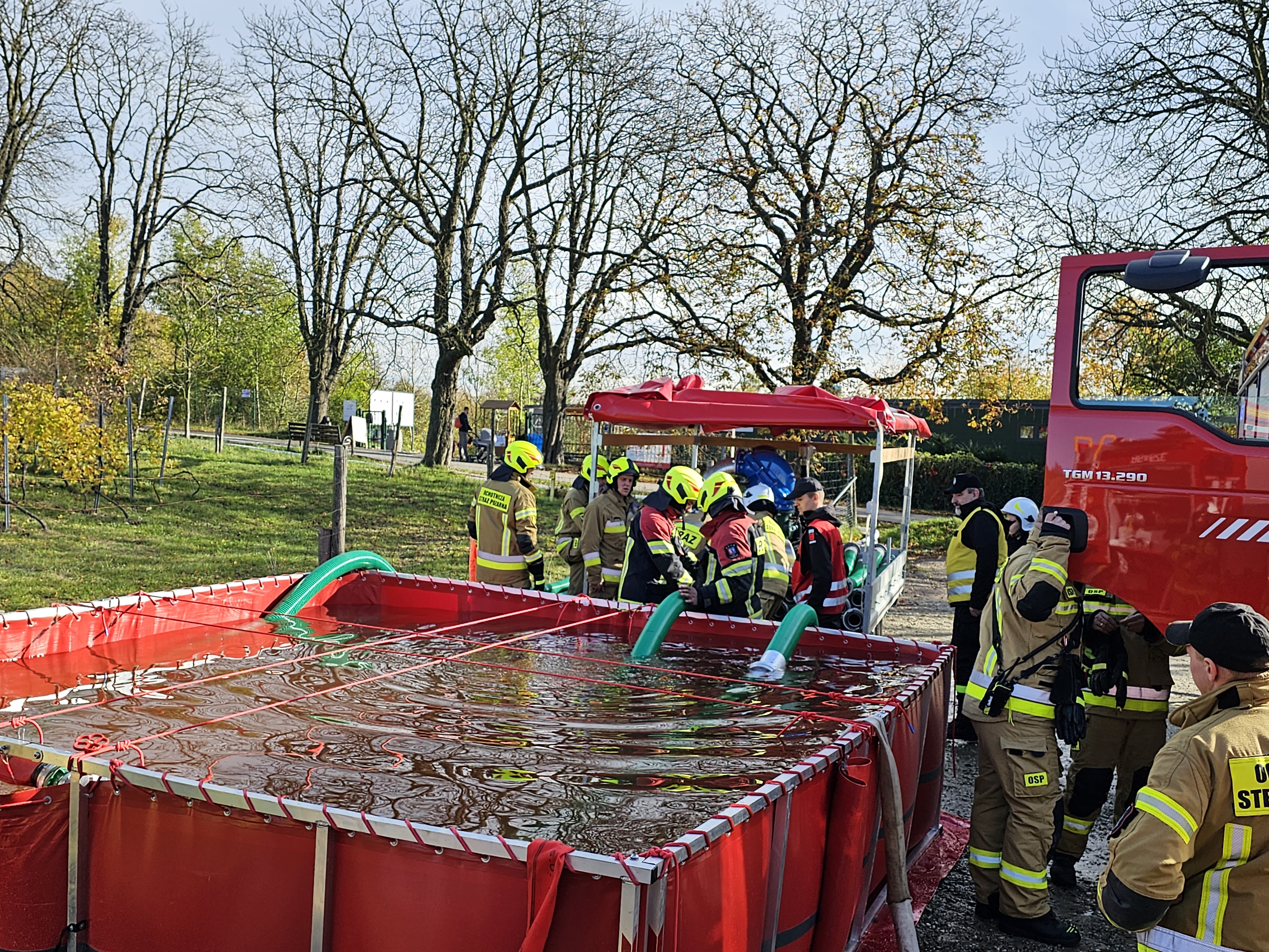 - wykorzystanie walorów taktyczno – bojowych pojazdów, quadów, przyczepek, pomp pływających do budowy stanowiska wodnego, bufora wodnego, budowy magistral wężowych W75 oraz W110,