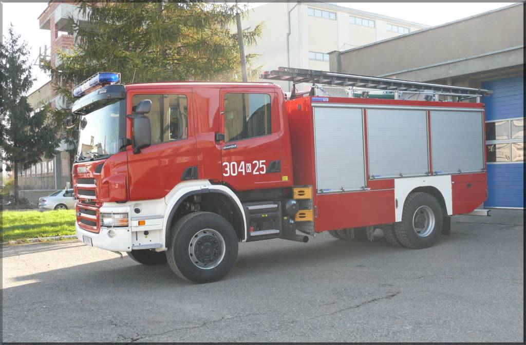 GCBA 5/24 Scania - ciężki samochód ratowniczo-gaśniczy, podwozie Scania P 400 CB 4x4 EHZ, silnik o mocy 400 KM, zabudowa wykonana przez ISS Wawrzaszek, liczba miejsc 1 + 1 + 4, zbiornik na wodę o pojemności 5000 l, autopompa Ruberg R40/2,5 – dwustopniowa o wydajności Q=2400 l/min – 8 bar i 400 l/min – 40 bar, działko wodno-pianowe o wydajności 2400 l/min, wyposażenie: agregat prądotwórczy 6 KW, maszt oświetleniowy 2 x 1000 W, pilarka do drewna, narzędzia techniczne, zestaw ratownictwa medycznego typu R 1. Dopuszczalna masa całkowita 18,0 t.