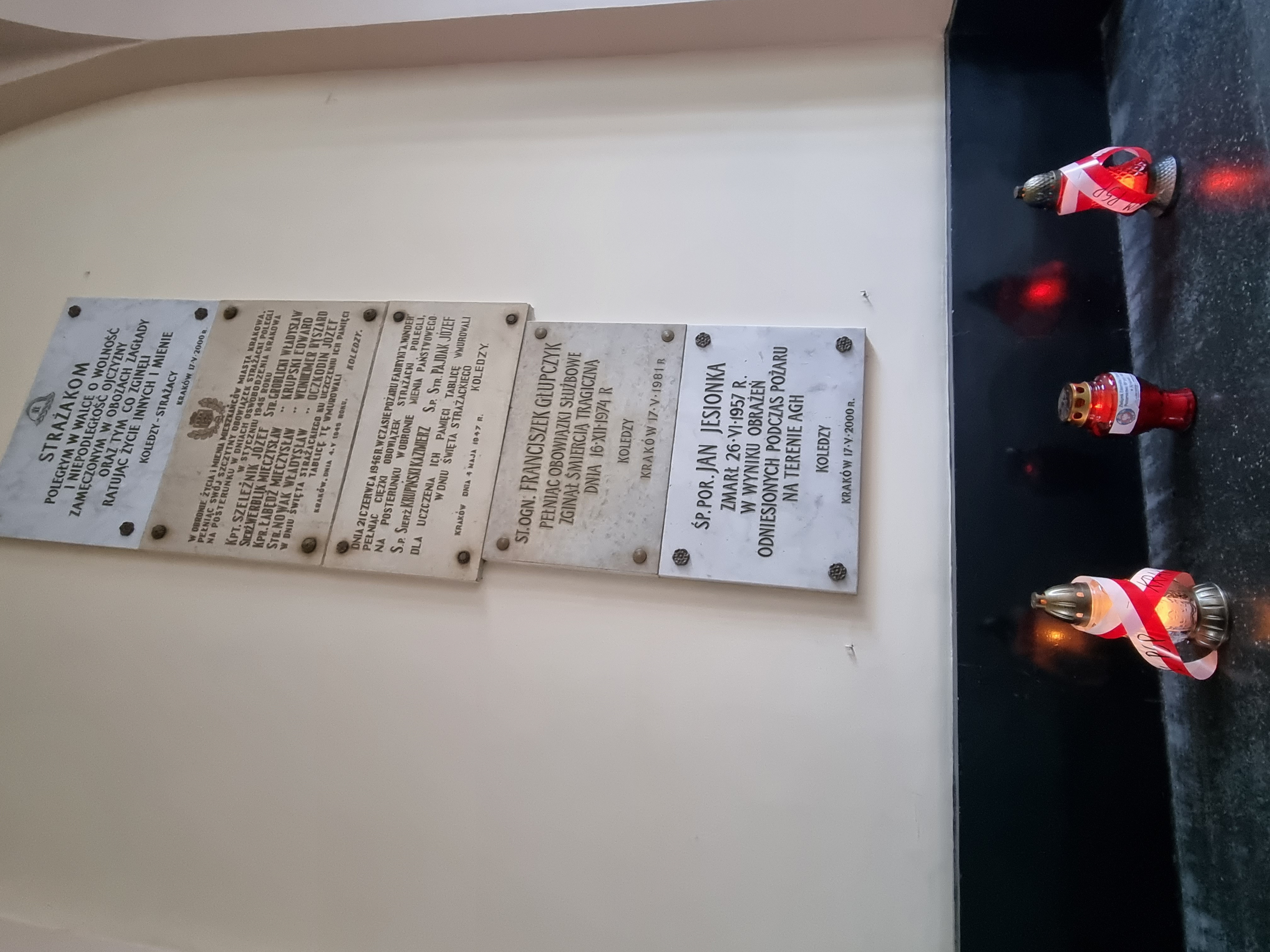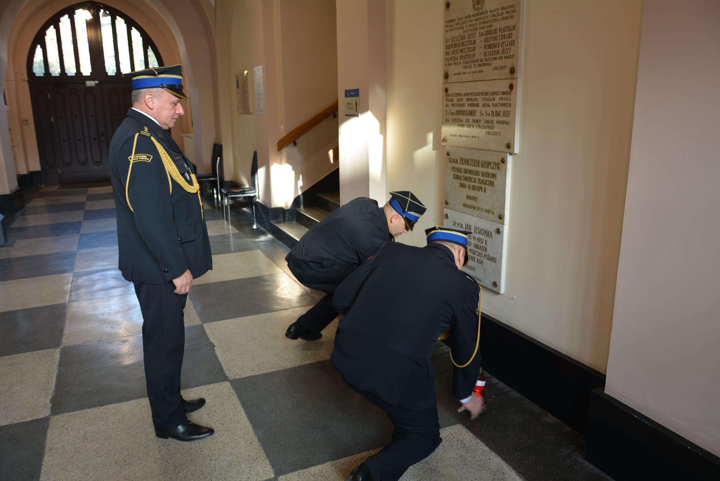 Komendanci Miejscy KM PSP w Krakowie w dniu 31 października oddali honory przy tablicach pamiątkowych poległych strażaków.