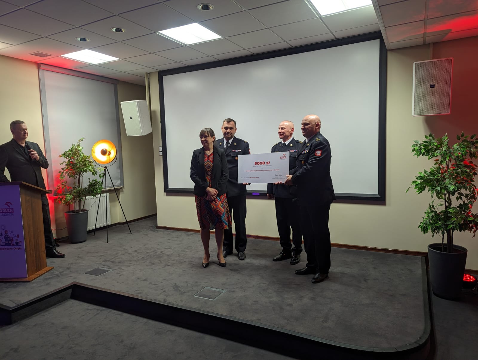 Zastępca Komendanta Miejskiego PSP w Krakowie bryg. Arkadiusz Kielin, wraz z Dowódcą JRG 2 Kraków mł.bryg. Piotrem Marchewką odebrali czek na dofinansowanie w wysokości 5 tysięcy złotych. Pieniądze te zostaną wykorzystane na doposażenie sali edukacyjnej "Ognik" , która funkcjonuje w JRG 2 Kraków przy ul.Rzemieślniczej.