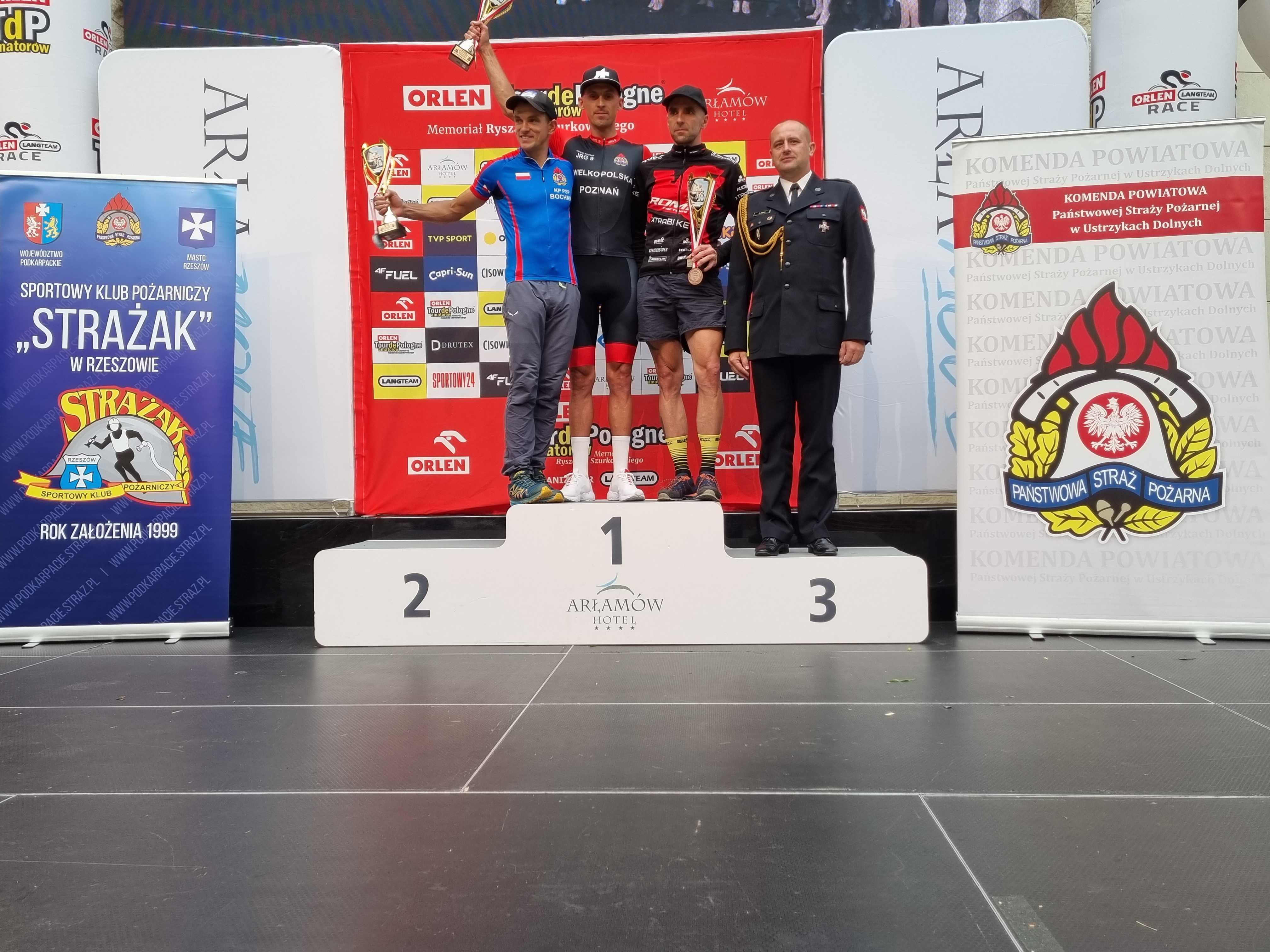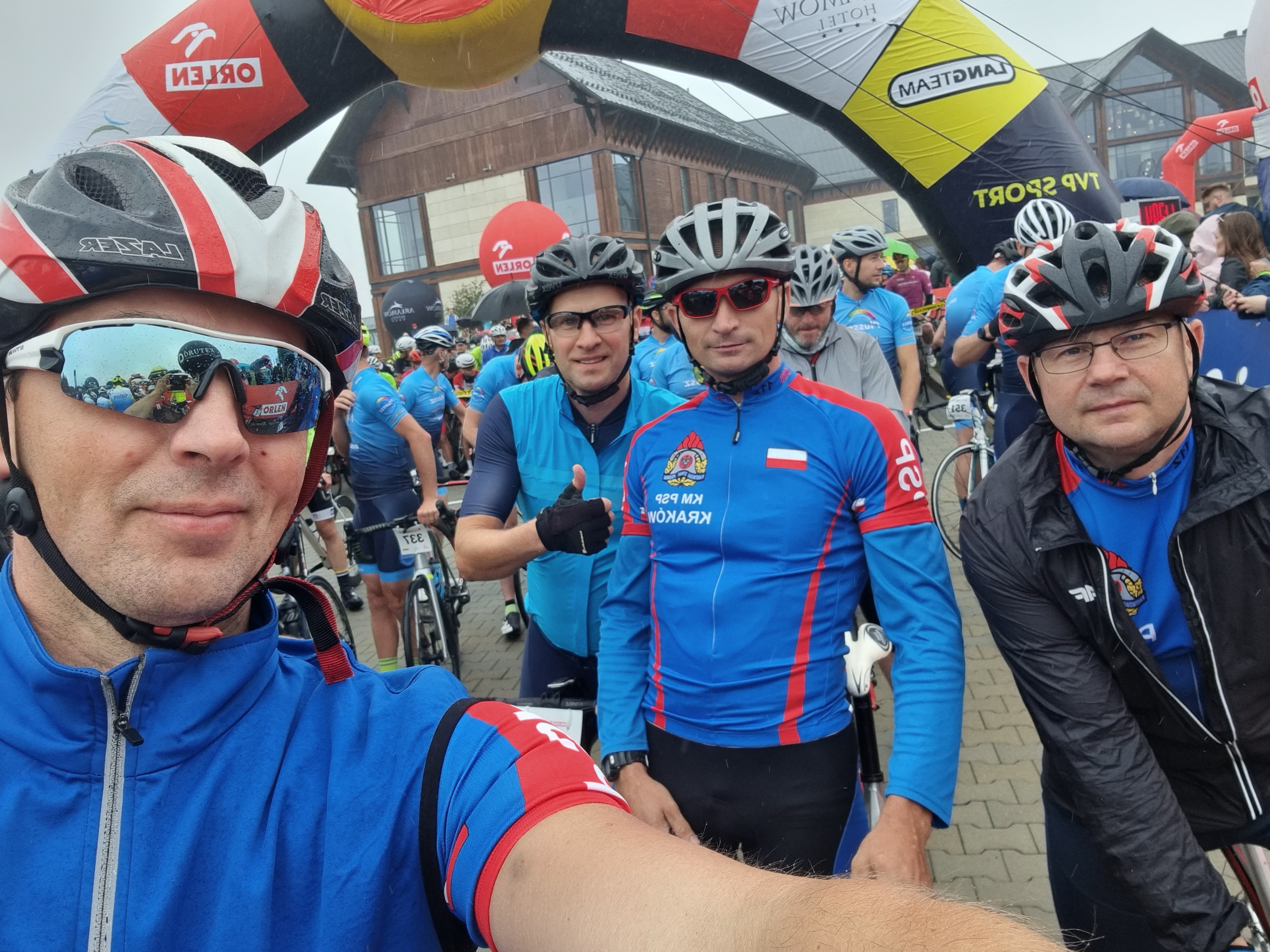 Krakowscy strażacy na trasie ToudePologne Amatorów w Arłamowie. 31 lipca dokładnie o godz.11.45 na trasę wyścigu kolarskiego TdPA wystartowało blisko 2 tysiące uczestników, pośród nich 51 strażaków PSP , a wśród nich 4 osobowa reprezentacja Komenda Miejska Państwowej Straży Pożarnej w Krakowie st.kpt. Bartłomiej Rosiek, kpt.Marek Murzyn, st.ogn. Janusz Czapnik oraz st.ogn. Grzegorz Janicki.
