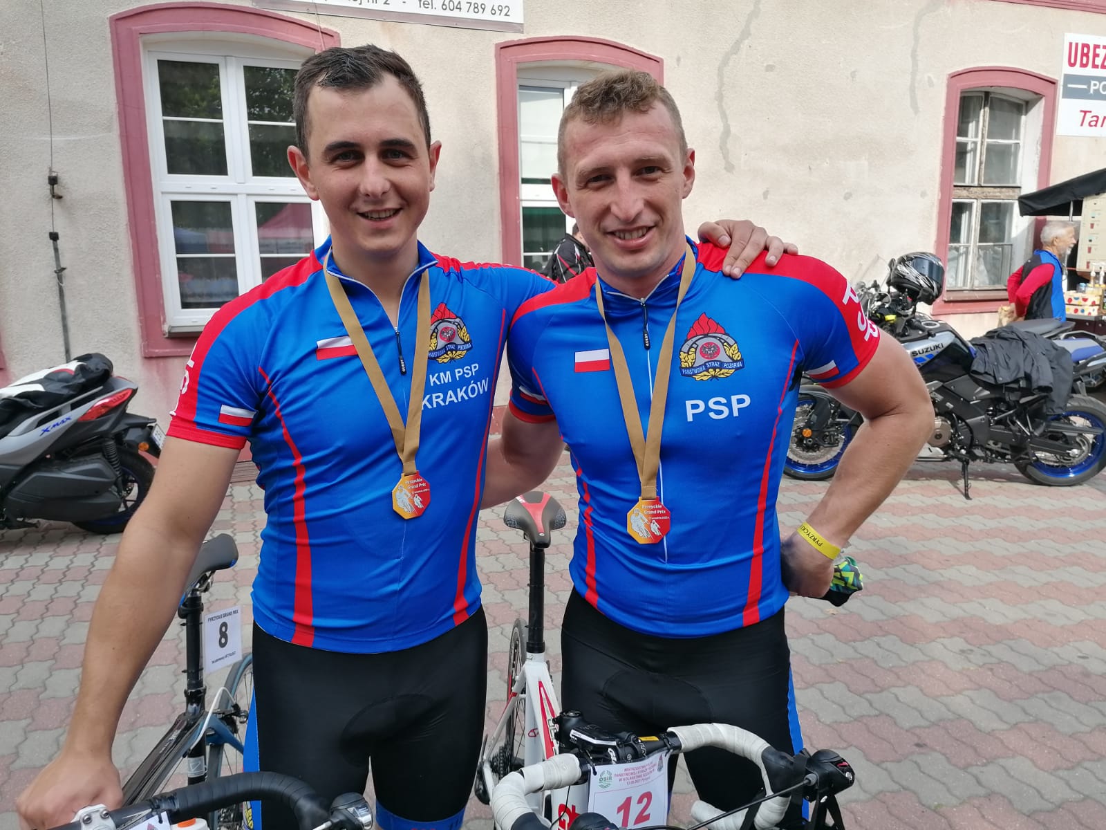 Strażacy ścigali się na 94 kilometrowym dystansie CLASSIC. Wszyscy reprezentanci KM PSP w Krakowie ukończyli zawody, na szczególną uwagę zasługuje występ Kazimierza Dubiela, który w kategorii M50 zdobył tytuł Wicemistrza Polski PSP w Kolarstwie Szosowym oraz Piotra Madeja, który w kategorii M20 zdobył tytuł Brązowego medalisty Mistrzostw Polski PSP w Kolarstwie Szosowym. Na trasie groźnie wyglądającą wywrotkę zaliczył Janusz Czapnik, na szczęście skończyło się jedynie na obtarciach naskórka. Gratulujemy udanego występu, i liczymy na bardzo dobre rezultaty w kolejnych edycjach mistrzostw.