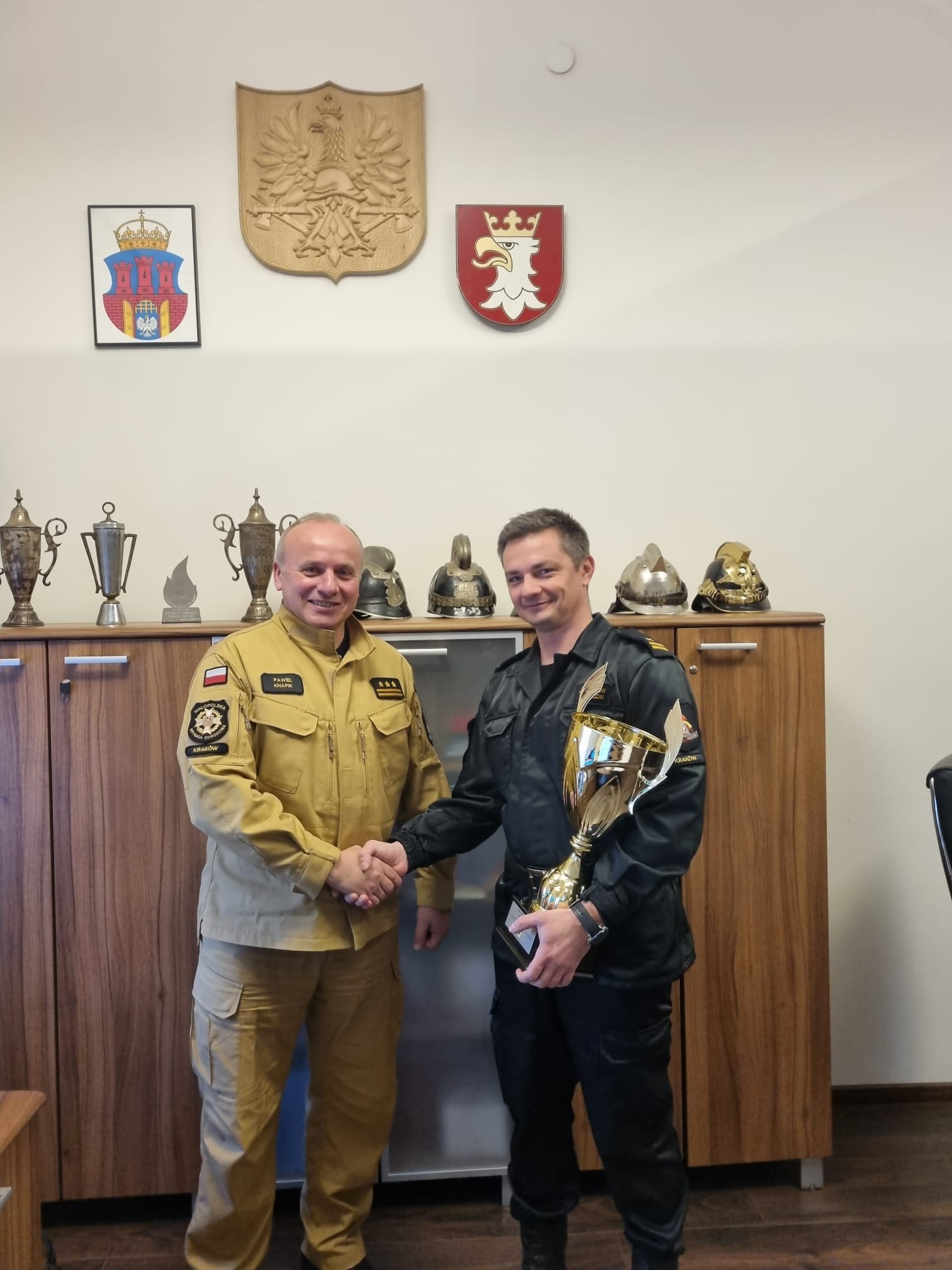Komendant Miejski PSP w Krakowiest.bryg. Paweł Knapik pogratulował zdobytego tytułu mistrzowskiego, i zapewnił o czynnym wsparciu i kibicowaniu w kolejnych planach sportowych: