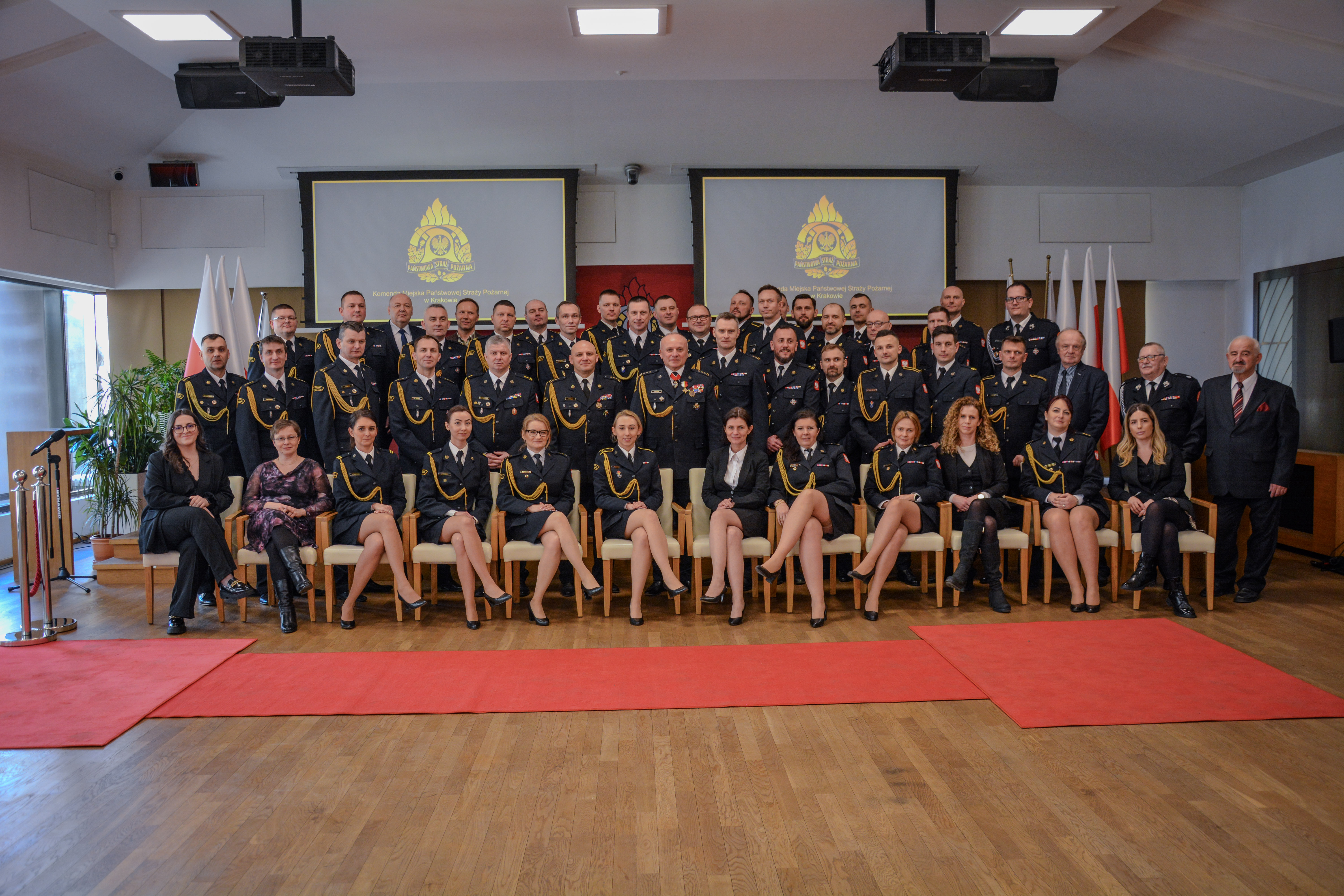 Delegacje Komendantów Miejskich i Powiatowych PSP woj. małopolskiego. Kadra kierownicza, dowódcy Jednostek - Ratowniczo-Gaśniczych, Naczelnicy Wydziałów, Samodzielne Stanowiska, funkcjonariusze i pracownicy cywilni Komendy Miejskiej Państwowej Straży Pożarnej w Krakowie. Przedstawiciele Zarządów Oddziałów Powiatowych miasta Krakowa,Powiatu Krakowskiego, Oddziału Wojewódzkiego ZOSP RP woj. małopolskiego i Zarządu Powiatowego Związku Ochotniczych Straży Pożarnych ZOSP RP, dh Leszek Zięba, dh Wojciech Ruśniak, dh Tomasz Nowak.