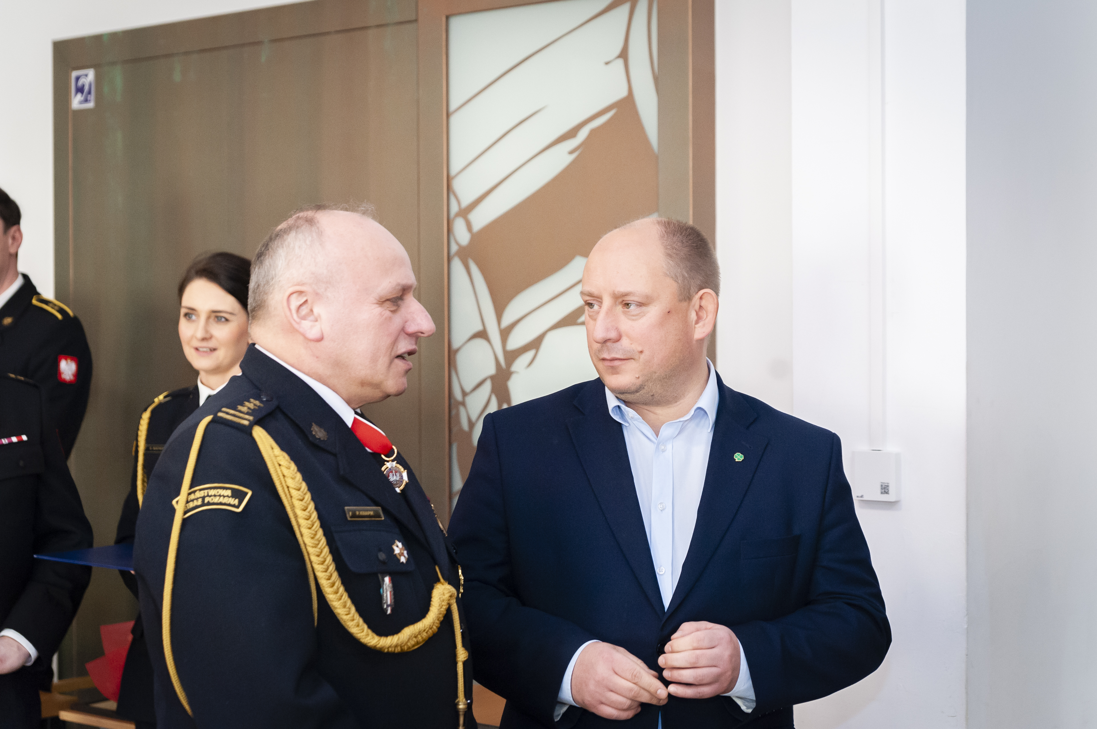 komendant Szkoły Aspirantów PSP w Krakowie - nadbryg. Piotr Filipek, wraz z zastępcą mł.bryg. Bogusławem Szydło,