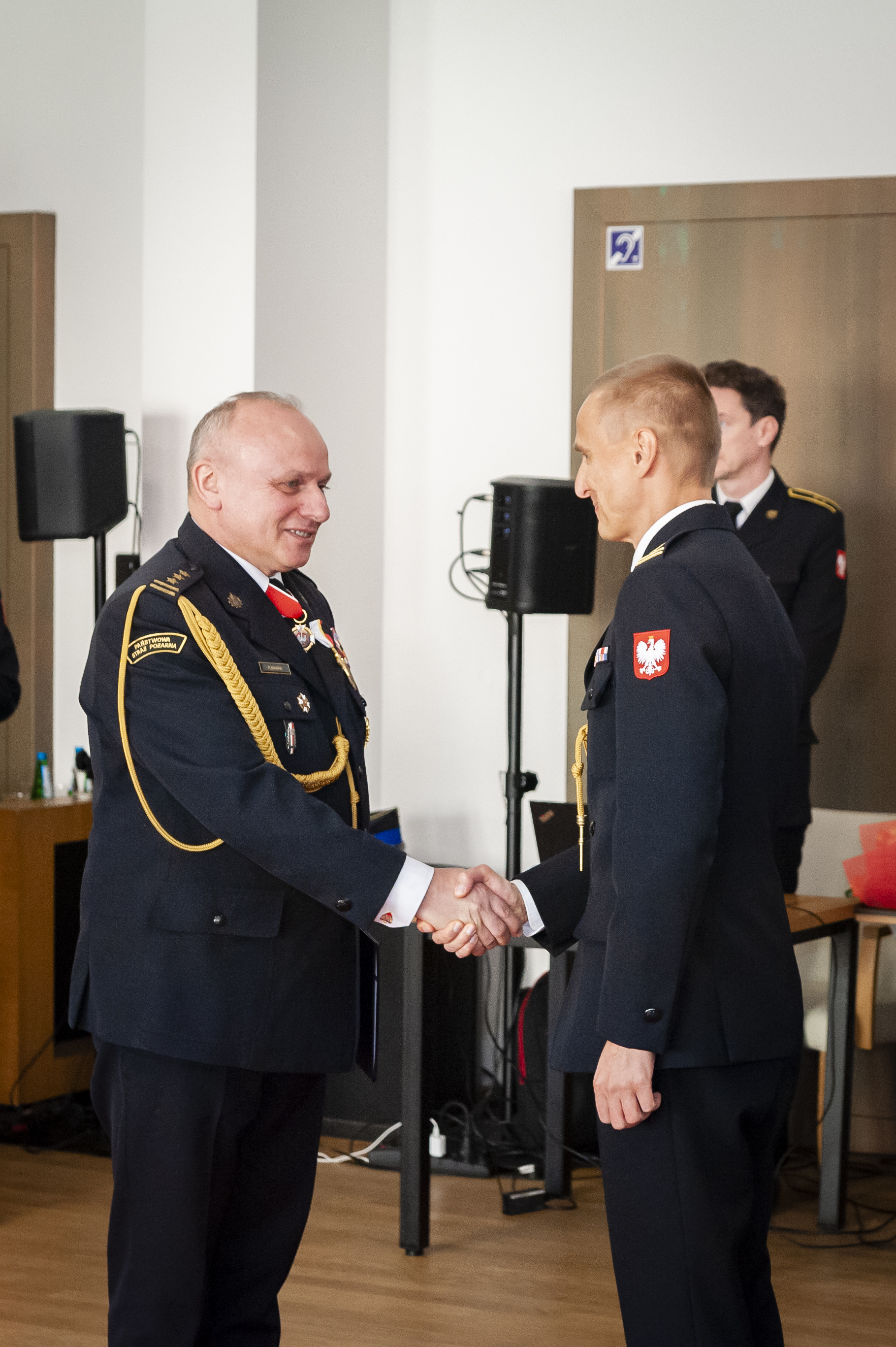 Zastępcy komendanta miejskiego PSP w Krakowie bryg. Damian Woszczyna, oraz bryg. Łukasz Szewczyk