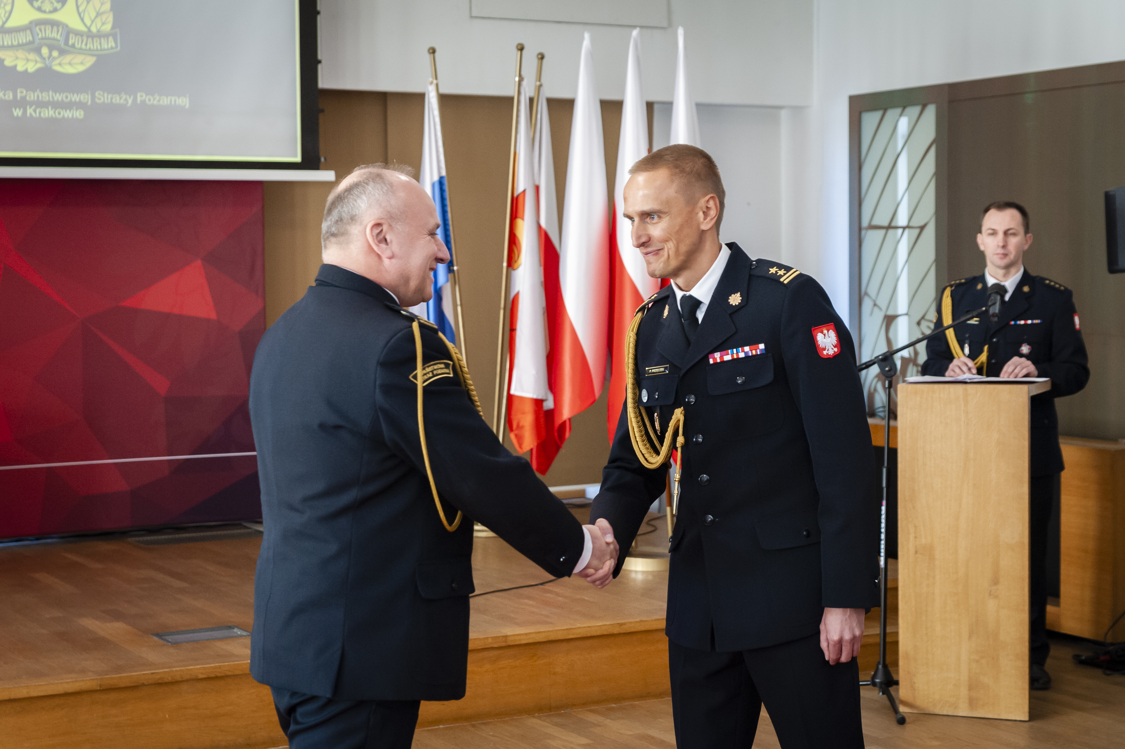 - odczytanie powierzenia obowiązków na stanowisku Komendanta Miejskiego PSP w Krakowie starszego brygadiera Arkadiusz Kielina.