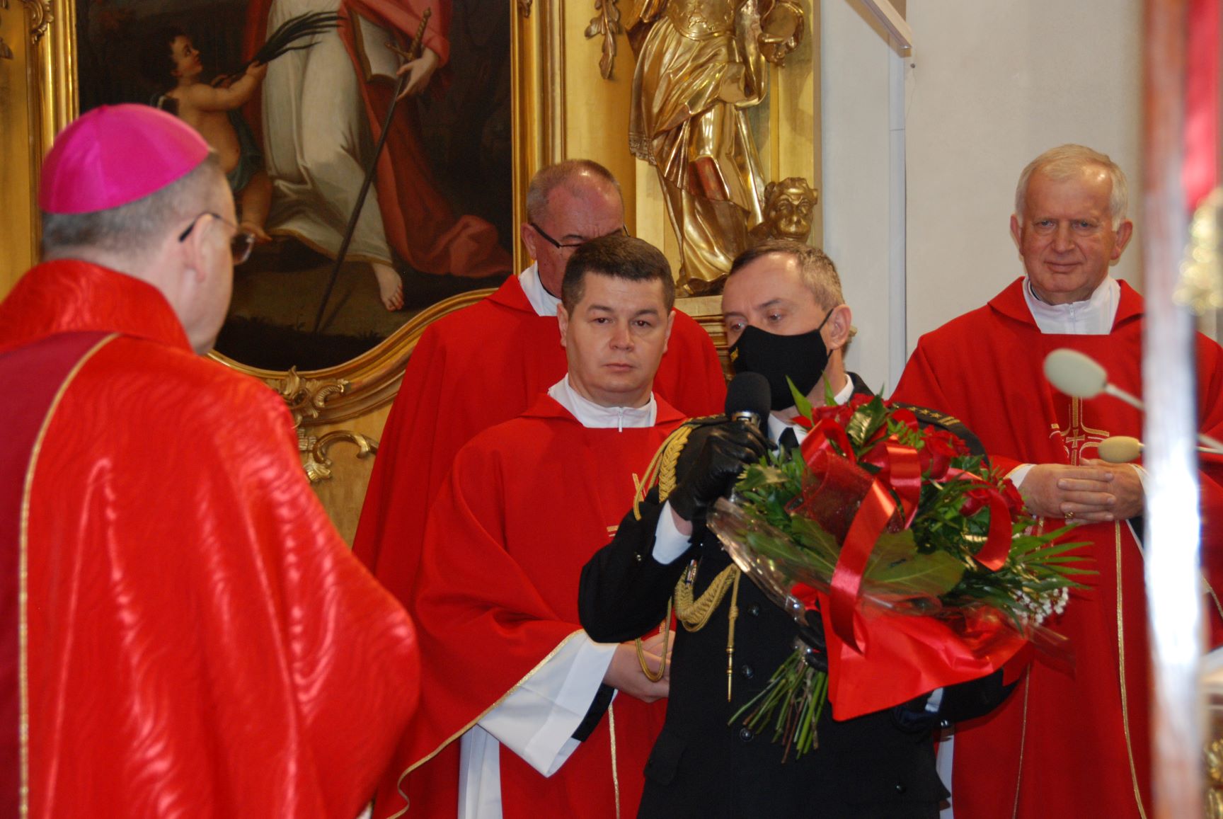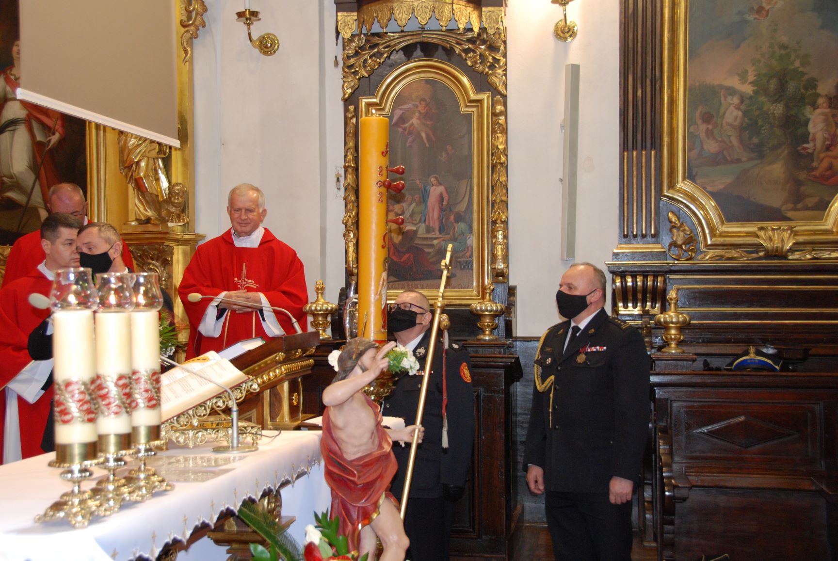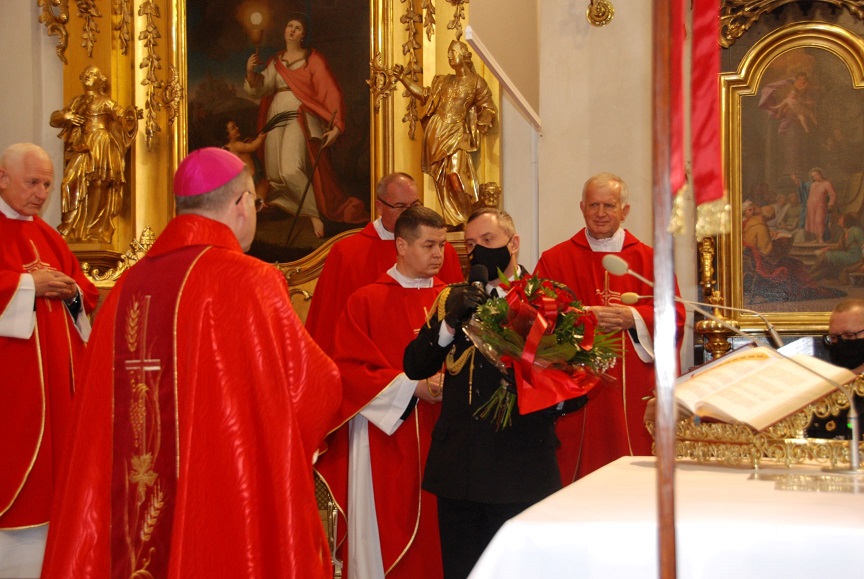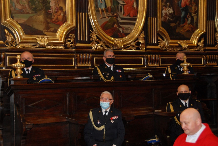 Kolejno o godzinie 11.30 Małopolski Komendant Wojewódzki PSP st.bryg. Piotr Filipek w asyście Komenadntów Miejskich i Powiatowych PSP z terenu województwa małoplskiego udali się w przemarszu z dziedzińca Komendy Miejskiej w Krakowie przez Mały Rynek, Rynek Główny, ul. Floriańską , Plac Matejki do Bazyliki św. Floriana w Krakowie , gdzie o godzinie 12.00 odbyła sie uroczysta msza święta w intencji małopolskich strażaków i ich rodzin.