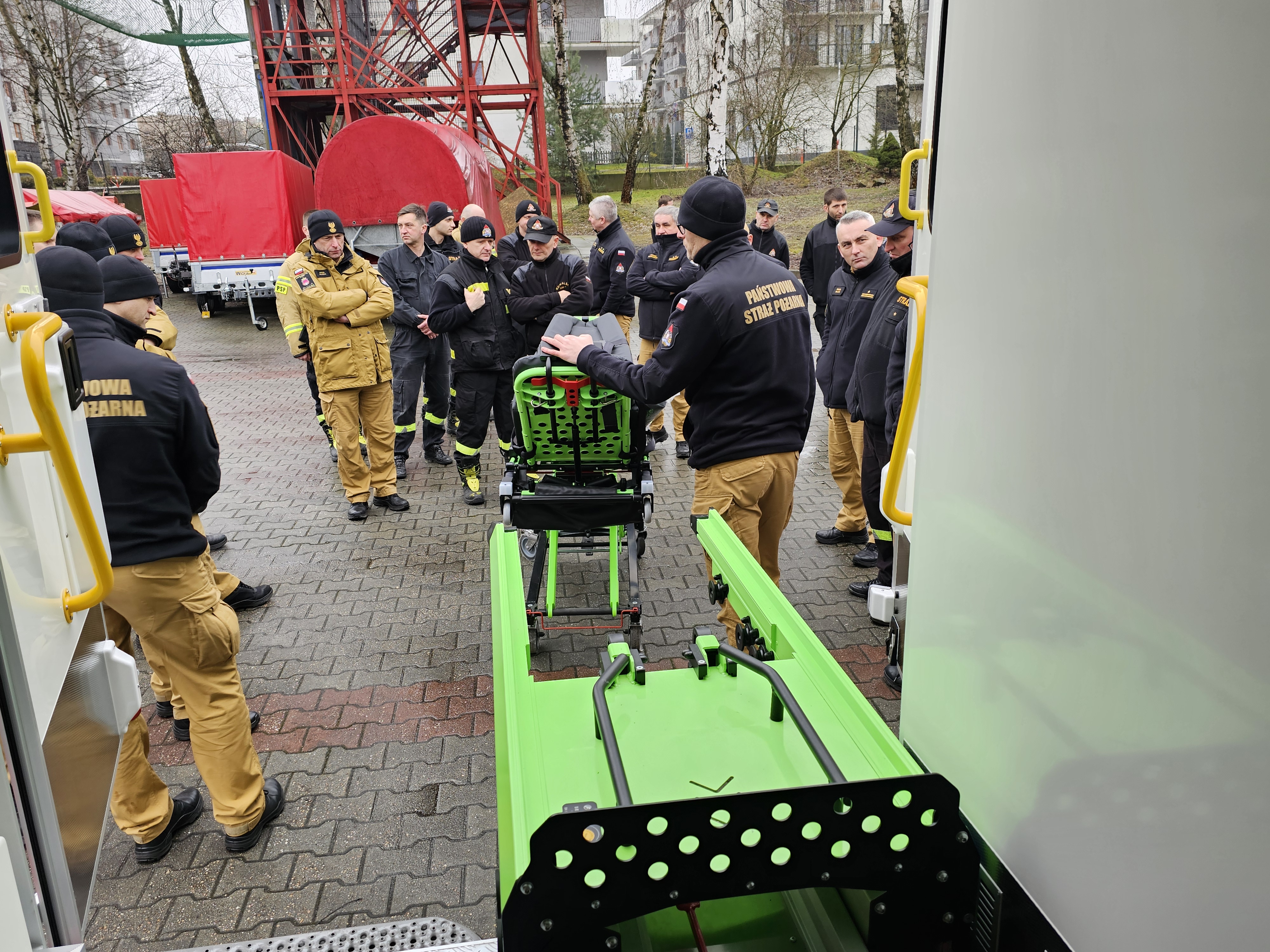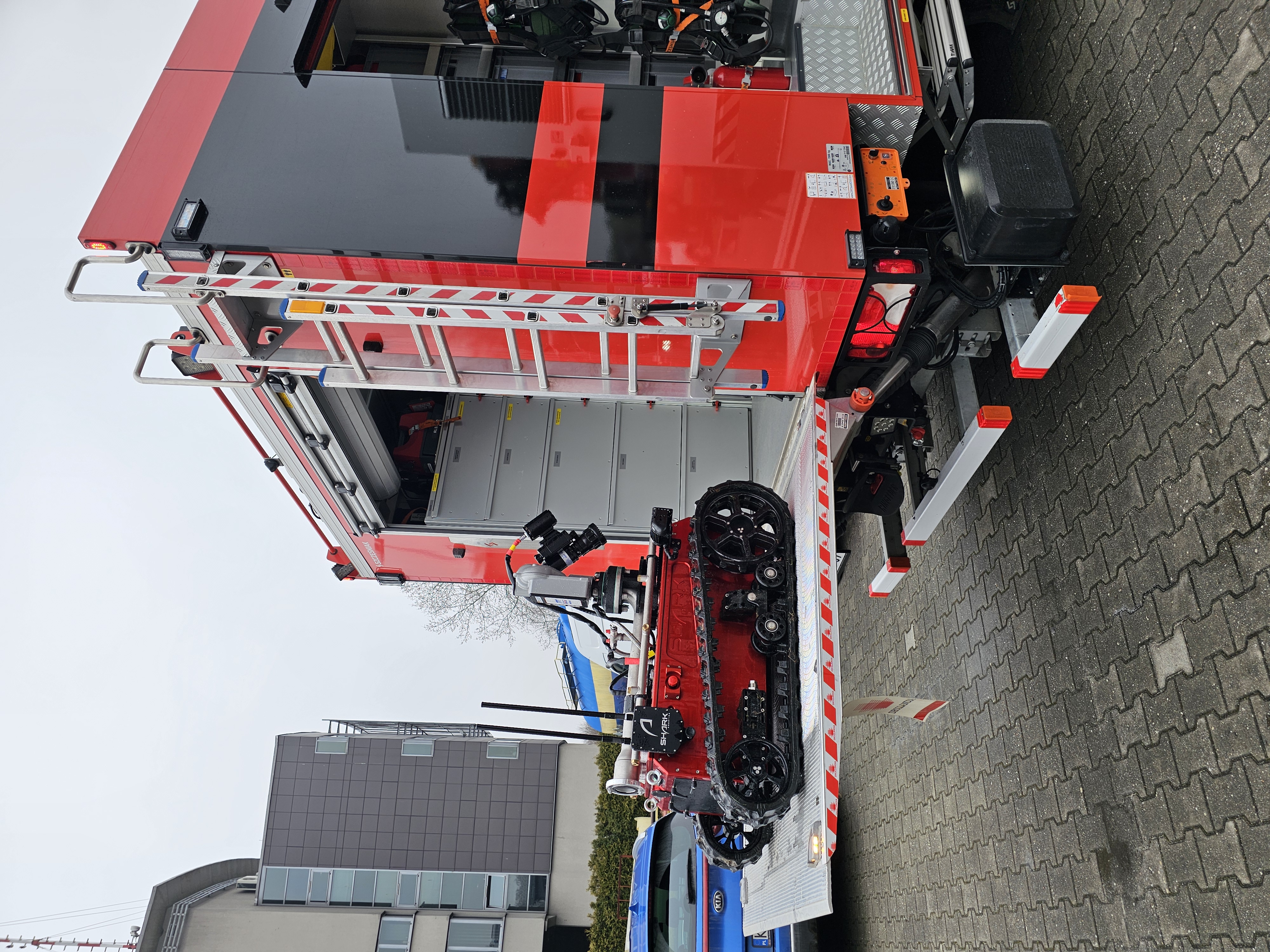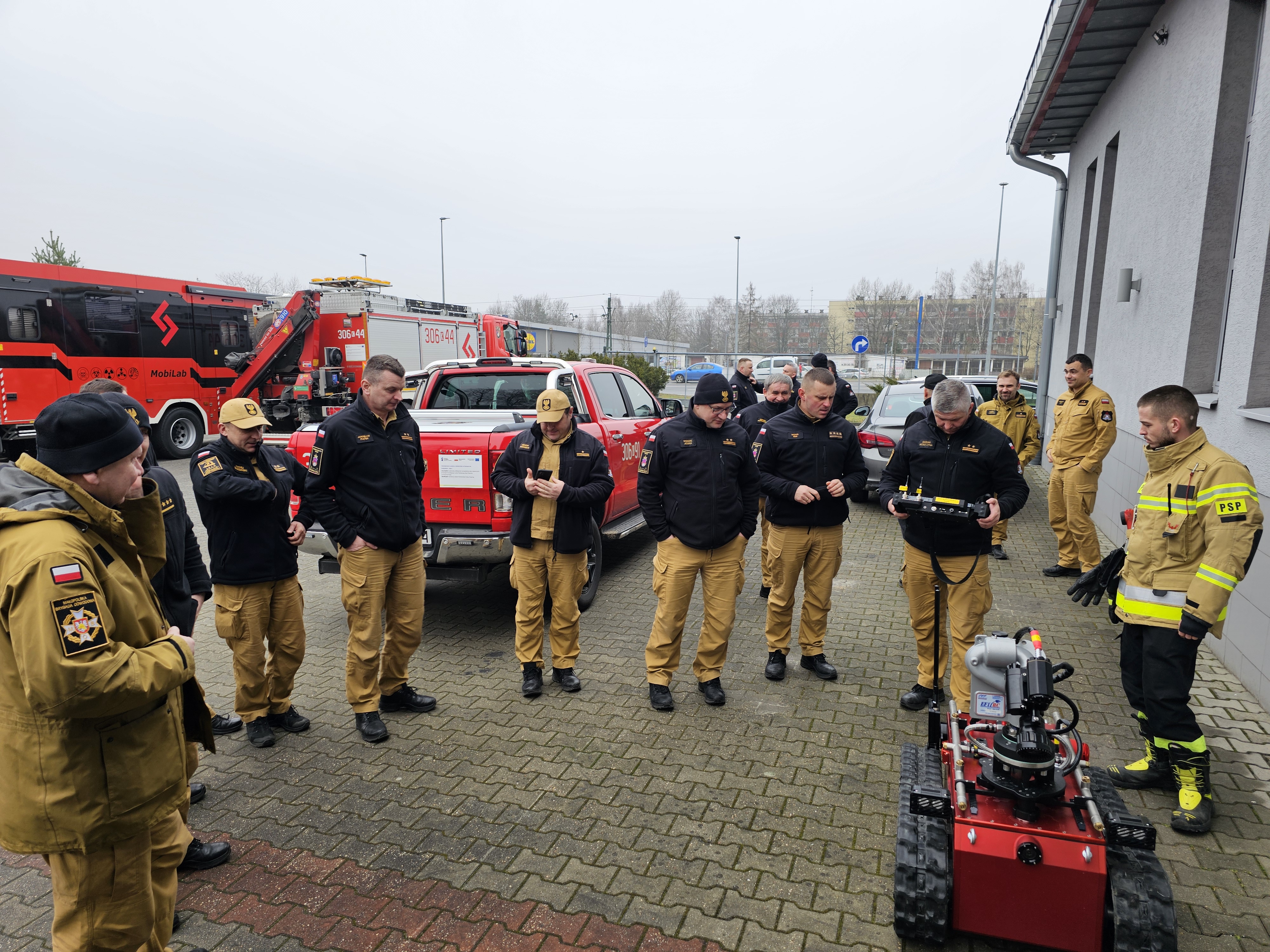 Zaprezentowano nowe nabytki sprzętów i pojazdów w postaci robota gaśniczego, tarczy balistycznej użytkowanych w JRG 6 Kraków, pojazdu wsparcia medycznego CBRN z Jednostka Ratowniczo - Gaśnicza nr1 Kraków.
