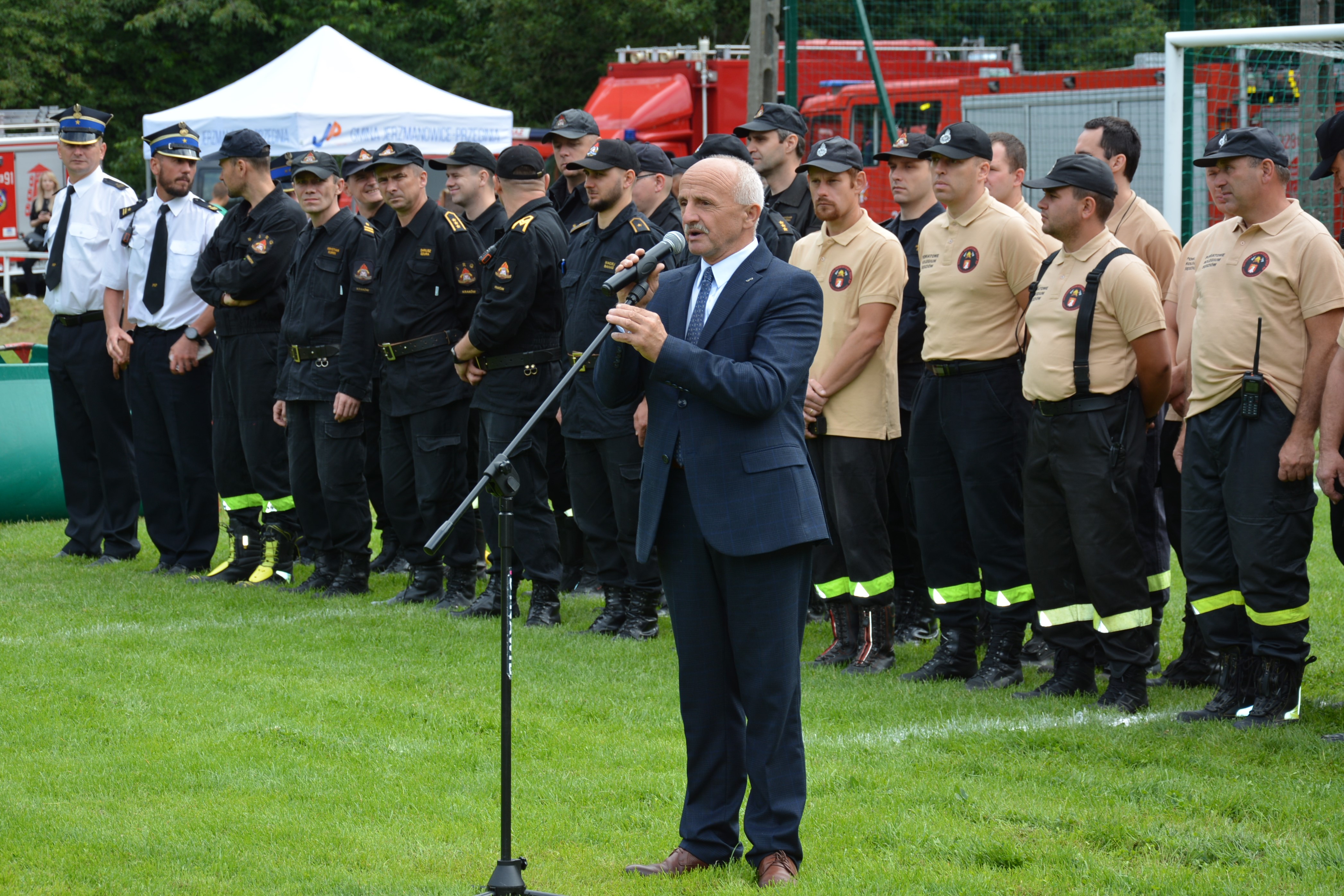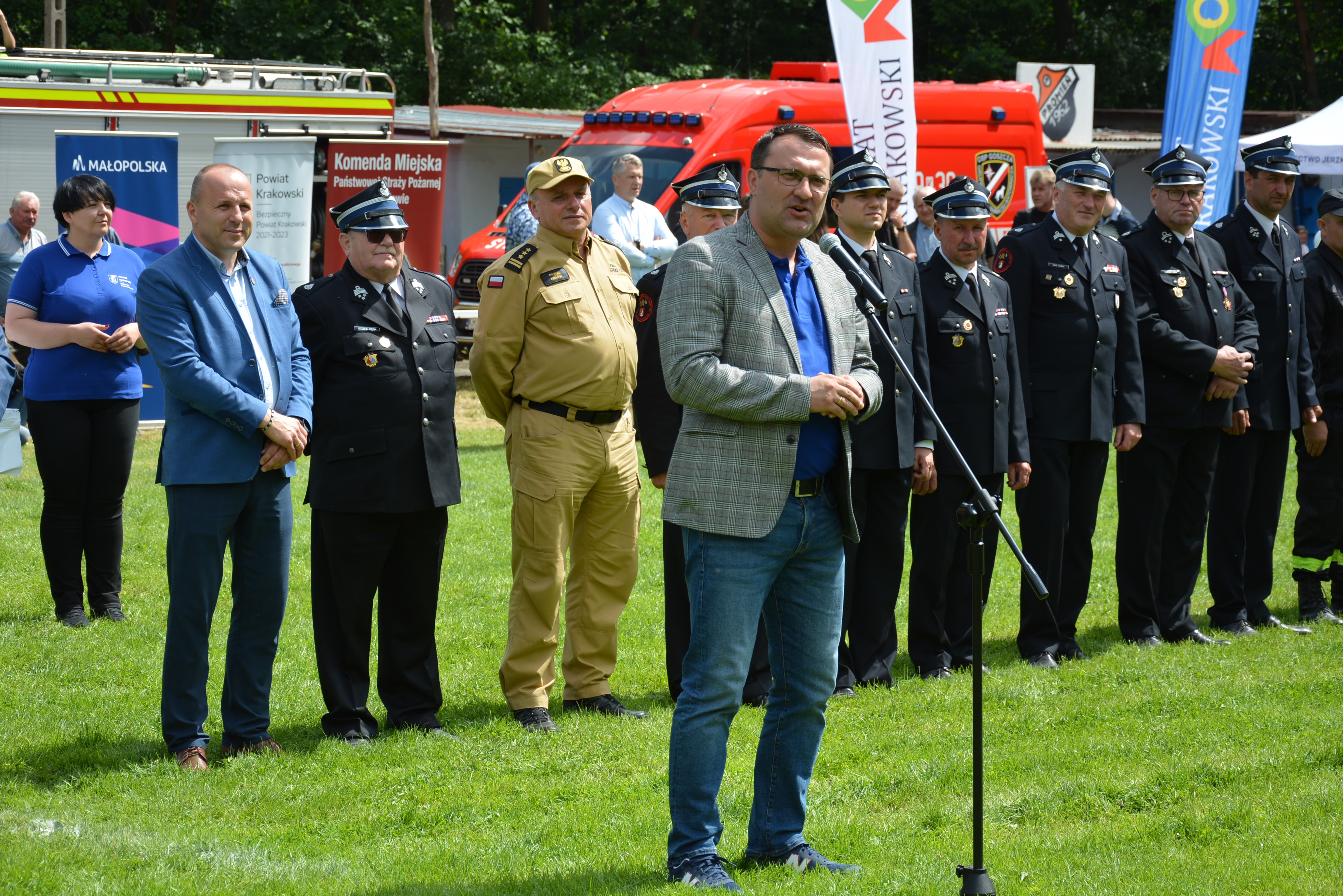 W sobotę, 9 lipca br. w gościnnej gminie Jerzmanowice Przeginia, na stadionie sportowym „LKS Promień” w Przegini odbyły się Powiatowe Zawody Sportowo - Pożarnicze Ochotniczych Straży Pożarnych z terenu powiatu krakowskiego. Zawody zostały przeprowadzone w dwóch konkurencjach – sztafeta pożarnicza 7 x 50 m z przeszkodami oraz ćwiczenie bojowe. W zmaganiach wzięło łącznie udział 26 drużyn, w tym 10 kobiecych i 16 męskich, a sędzią głównym zawodów był mł. bryg. Jarosław Piątek – Zastępca Naczelnika Wydziału Operacyjno-Szkoleniowego Komendy Miejskiej PSP w Krakowie. Komisję sędziowską po raz pierwszy tworzyli wspólnie funkcjonariusze KM PSP w Krakowie oraz członkowie nowo powstałego kolegium sędziowskiego utworzonego przy zarządzie oddziału powiatowego ZOSP RP Kraków – Ziemski. Zawody zostały zorganizowane wspólnie przez: Starostę Krakowskiego, Komendanta Miejskiego PSP w Krakowie, Prezesa Zarządu Oddziału Powiatowego Związku OSP RP Powiatu Krakowskiego oraz Wójta Gminy Jerzmanowice-Przeginia – gospodarza tegorocznych zawodów.