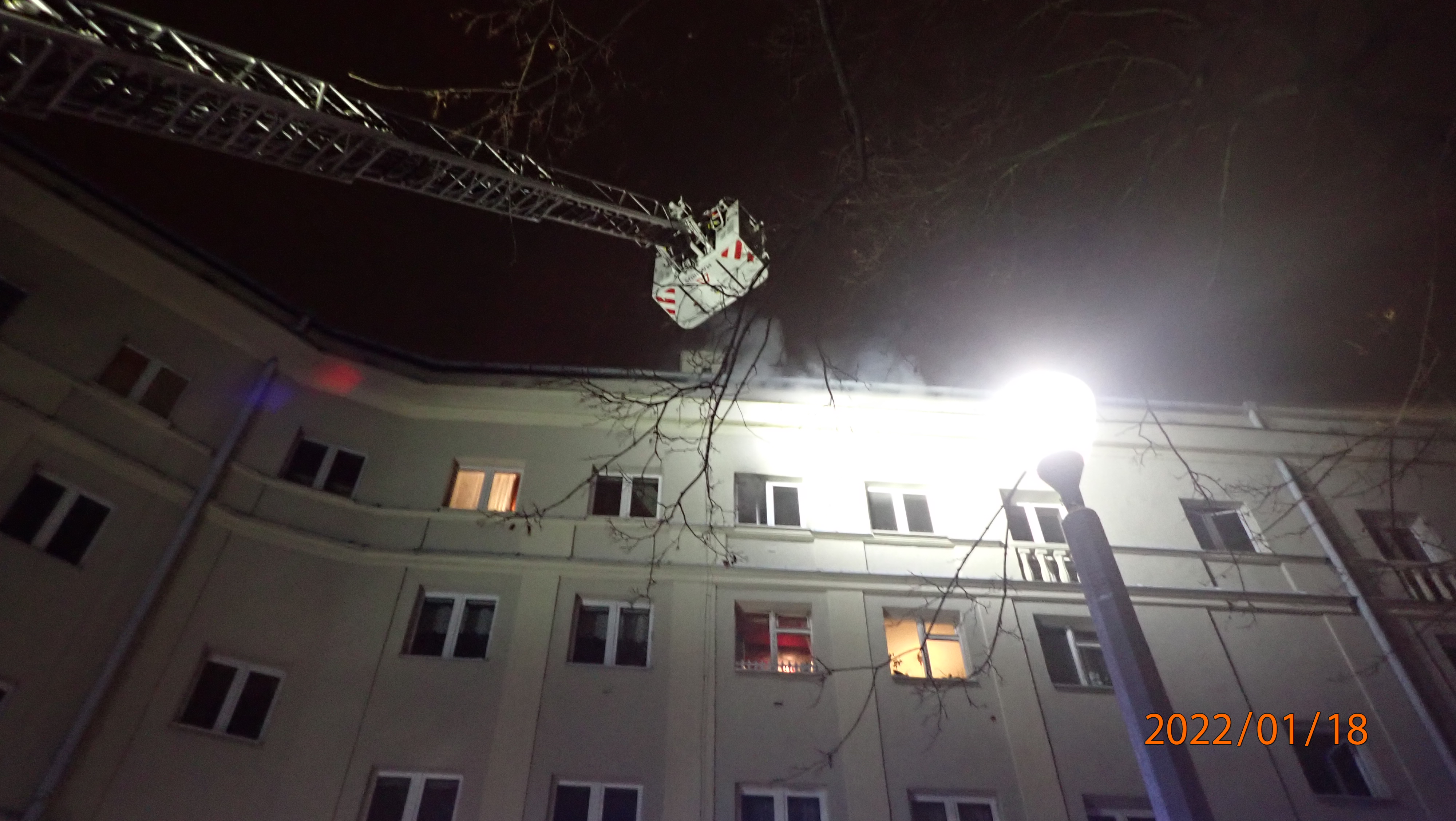 W dniu 18 stycznia ok. 17.30 doszło do pożaru mieszkania zlokalizowanego na IV piętrze w rejonie Nowej Huty przy os. Centrum A. Pierwsze zastępy z JRG SA PSP w Krakowie dotarły już po 4 minutach. W momencie przybicia pożar był już rozwinięty, z okien widać było wydobywający się ogień i dym. Dodatkowo na stromym gzymsie stała kobieta, której dym i promieniowanie cieplne odcięły drogę ewakuacji. Działania strażaków w pierwszych chwilach skoncentrowane były na nawiązaniu kontaktu z osobą stojącą na gzymsie i jak najszybsze sprowadzenie jej na dół. Jednocześnie roty próbowały sprawić linie gaśnicze po klatce schodowej i podać prądy w natarciu na palące się mieszkanie. Takie działanie umożliwiło również ograniczenie zadymienia na klatce schodowej i ewakuacje osób przebywających na wyższej kondygnacji, która nie mogła zostać przeprowadzona przy wykorzystaniu drabiny mechanicznej, ze względu na zbyt wąskie okna na najwyższej kondygnacji. Po podaniu kolejnego prądu z drabiny mechanicznej pożar udało się zlokalizować, a następnie całkowicie ugasić.