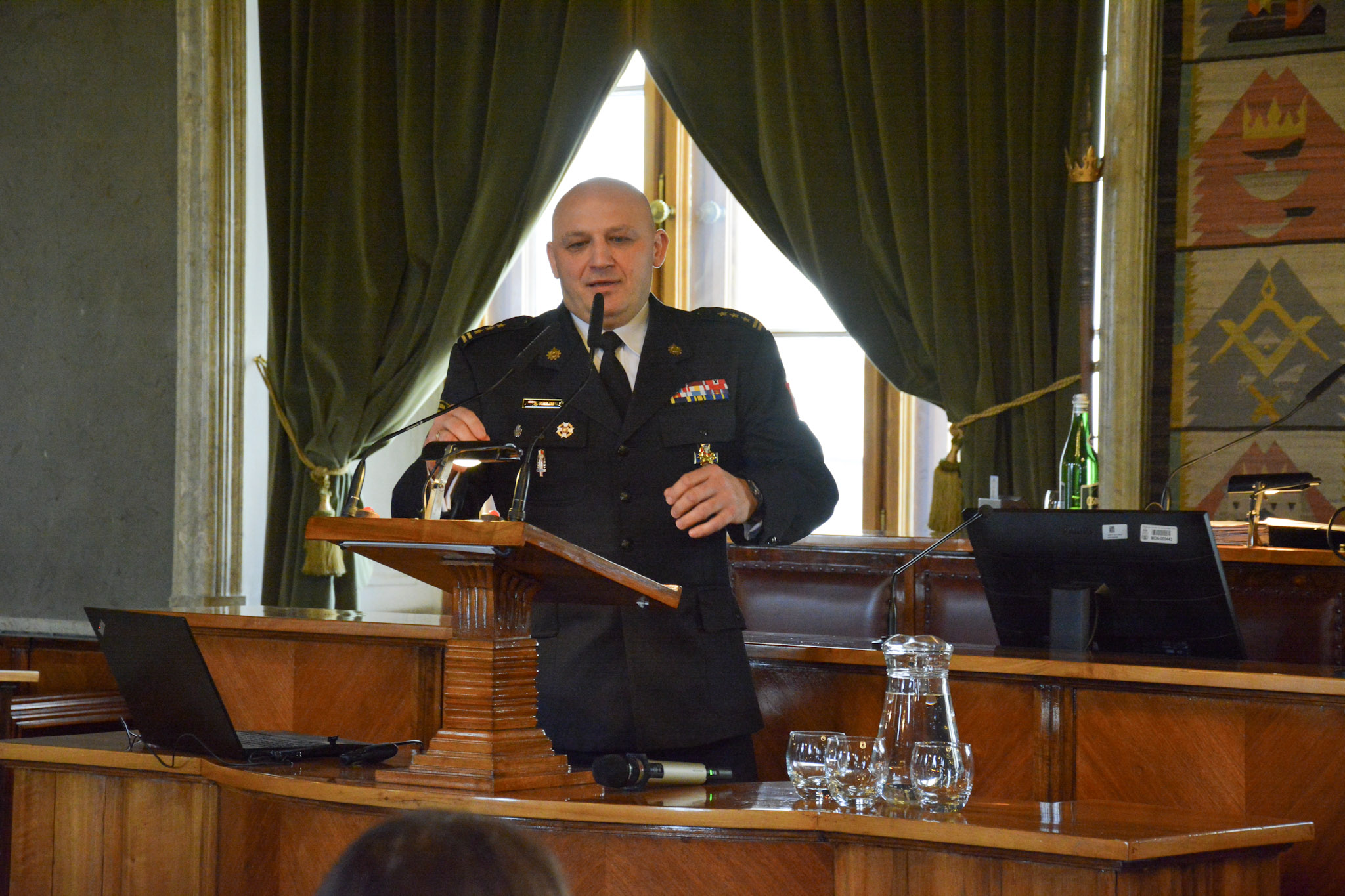 W ramach krótkiego wystąpienia Pan komendant st.bryg. dr inż. Arkadiusz Kielin przedstawił przebieg swojej kariery zawodowej, oraz szczególne osobiste więzi z miastem Kraków, ponadto omówił założenia i zamierzone cele do realizacji w najbliższym czasie realizowane przez Komenda Miejska Państwowej Straży Pożarnej w Krakowie.