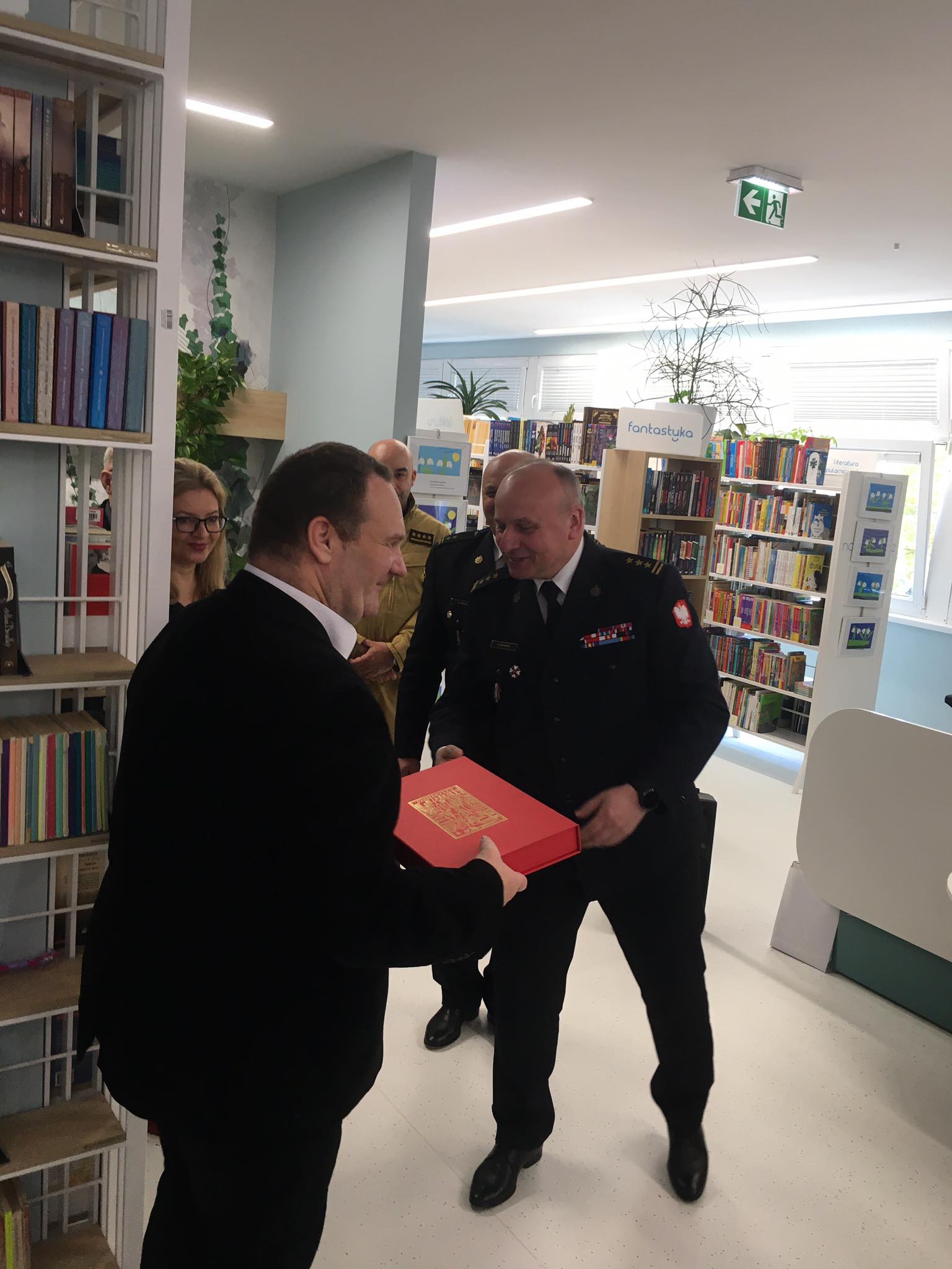 Rok 2023 jest zatem rokiem Jubileuszowym 150-lecia krakowskiej straży pożarnej. Istotnym elementem wystawy i jej historii było wystąpienie mamy Pana Marcina, która w skrócie ale w piękny i wyjątkowy sposób opowiedziała jak zaczęła się pasja u 4 letniego wówczas Marcina. W momencie kulminacyjnym wystawy głos zabrał m. in. Komendant Miejski PSP w Krakowie st. bryg. Paweł Knapik, który podziękował Panu Marcinowi za zaangażowanie i wytrwałość w kolekcjonowaniu tak olbrzymiej ilości eksponatów i podkreślił, że znaczna część strażaków nimi jest bo jest to ich pasja i nazwał Pana Marcina jednym z nas z uwagi właśnie na jego pasję. Następnie Komendant Miejski wraz ze swoim Zastępcą st. bryg. Arkadiuszem Kielinem wręczyli Panu Marcinowi okolicznościowy ryngraf z wizerunkiem Św. Floriana, który będzie pamiątką i jednocześnie wzbogaci kolekcję Pana Marcina.