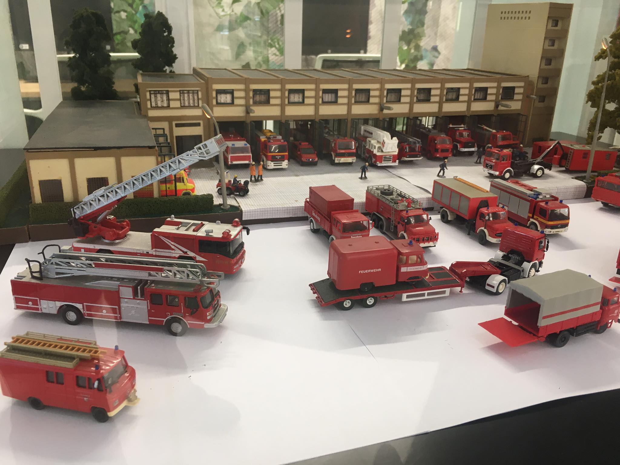 Wystawa modeli wozów strażackich pasjonata straży pożarnej.