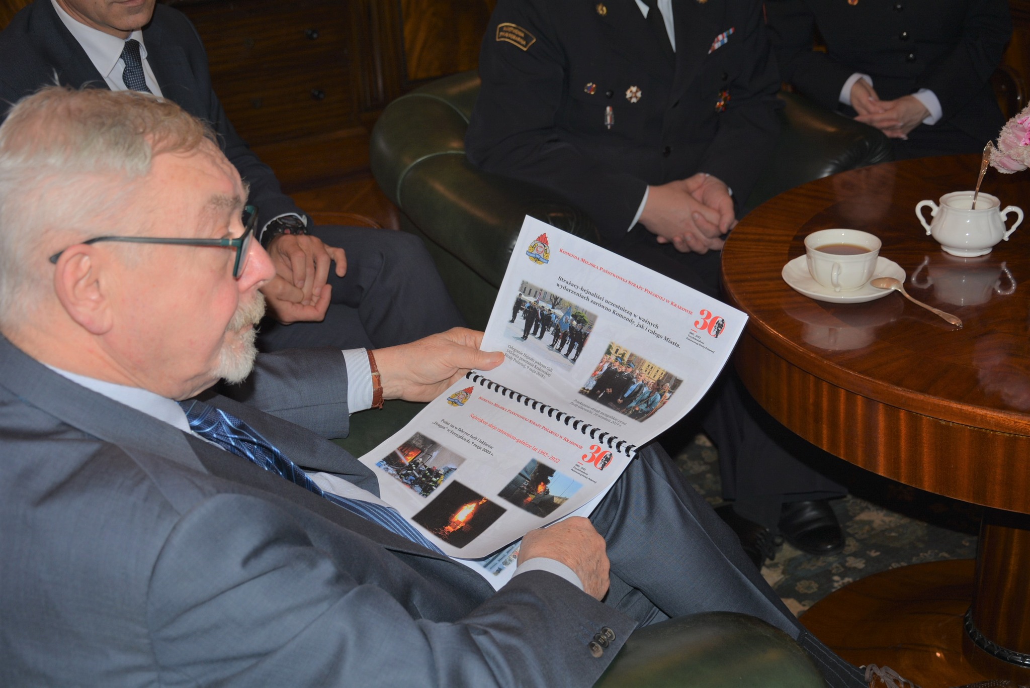 W dniu 7 listopada 2022 roku w siedzibie Urzędu Miasta Krakowa odbyło się spotkanie, którego celem było podsumowanie 30-lecia istnienia Państwowej Straży Pożarnej. W spotkaniu uczestniczyli Pan prof. Jacek Majchrowski – Prezydent Miasta Krakowa, Pan Antoni Fryczek – Sekretarz Miasta Krakowa, Pan Bogdan Klimek – Dyrektor Wydziału Bezpieczeństwa i Zarządzania Kryzysowego Urzędu Miasta Krakowa, Pan Jerzy Mądrzyk – Komendant Straży Miejskiej Miasta Krakowa. Państwową Straż Pożarną reprezentował Pan st.bryg. Paweł Knapik – Komendant Miejski Państwowej Straży Pożarnej w Krakowie wraz z Zastępcami – Panem st. bryg. Andrzejem Nowakiem i Panem bryg. Arkadiuszem Kielinem.