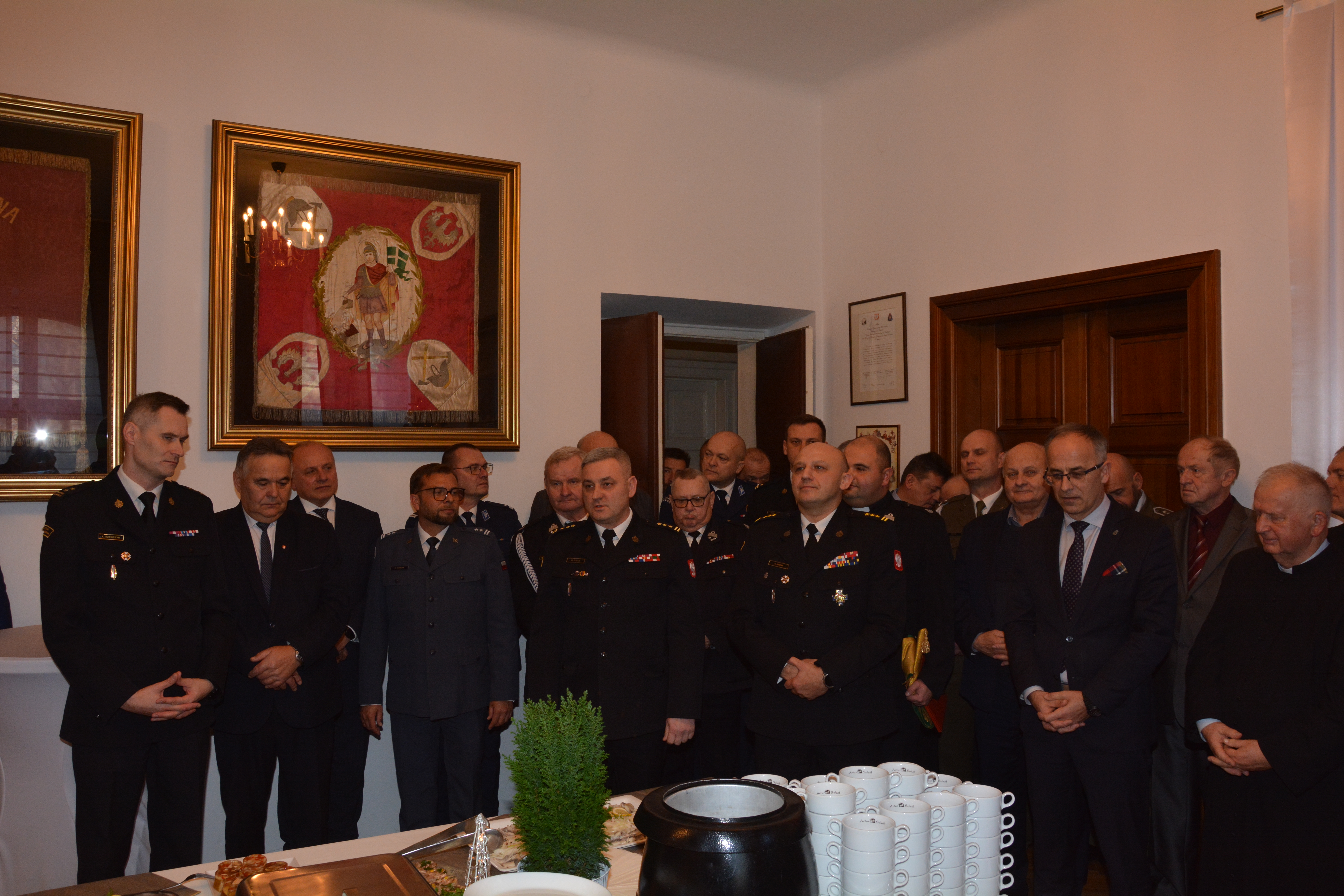 18 grudnia 2025 r. w Komendzie Miejskiej Państwowej Straży Pożarnej odbyło się uroczyste spotkanie wigilijne pracowników komendy, z udziałem zaproszonych gości. W wydarzeniu uczestniczyli m.in. przedstawiciele Miasta i Powiatu, służb odpowiedzialnych za bezpieczeństwo, byli komendanci, emeryci oraz duchowni.