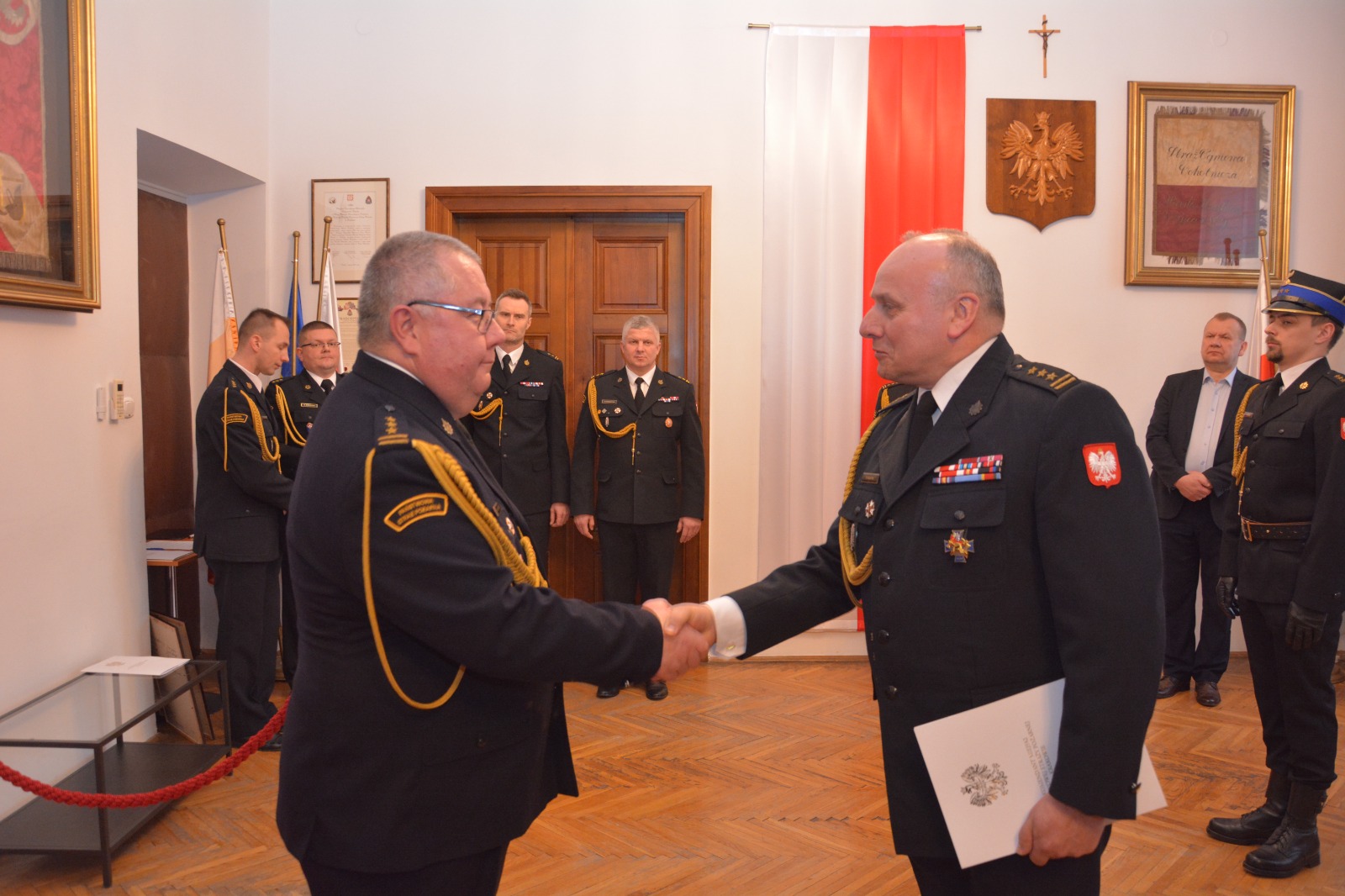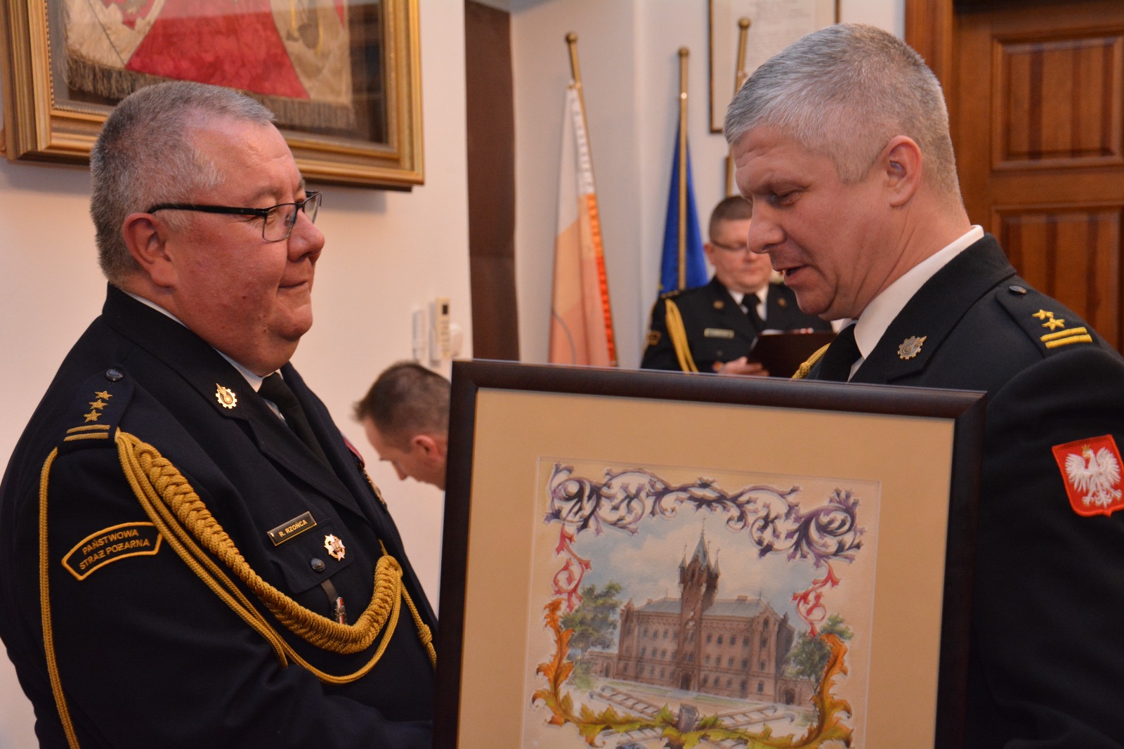 Naczelnik Wydziału Operacyjno-Szkoleniowego bryg. Grzegorz Jeziorek, oraz Dowódca JRG w Skawinie st.bryg. Radosław Rzońca po 32 latach pożegnali się ze służbą w Państwowej Straży Pożarnej.