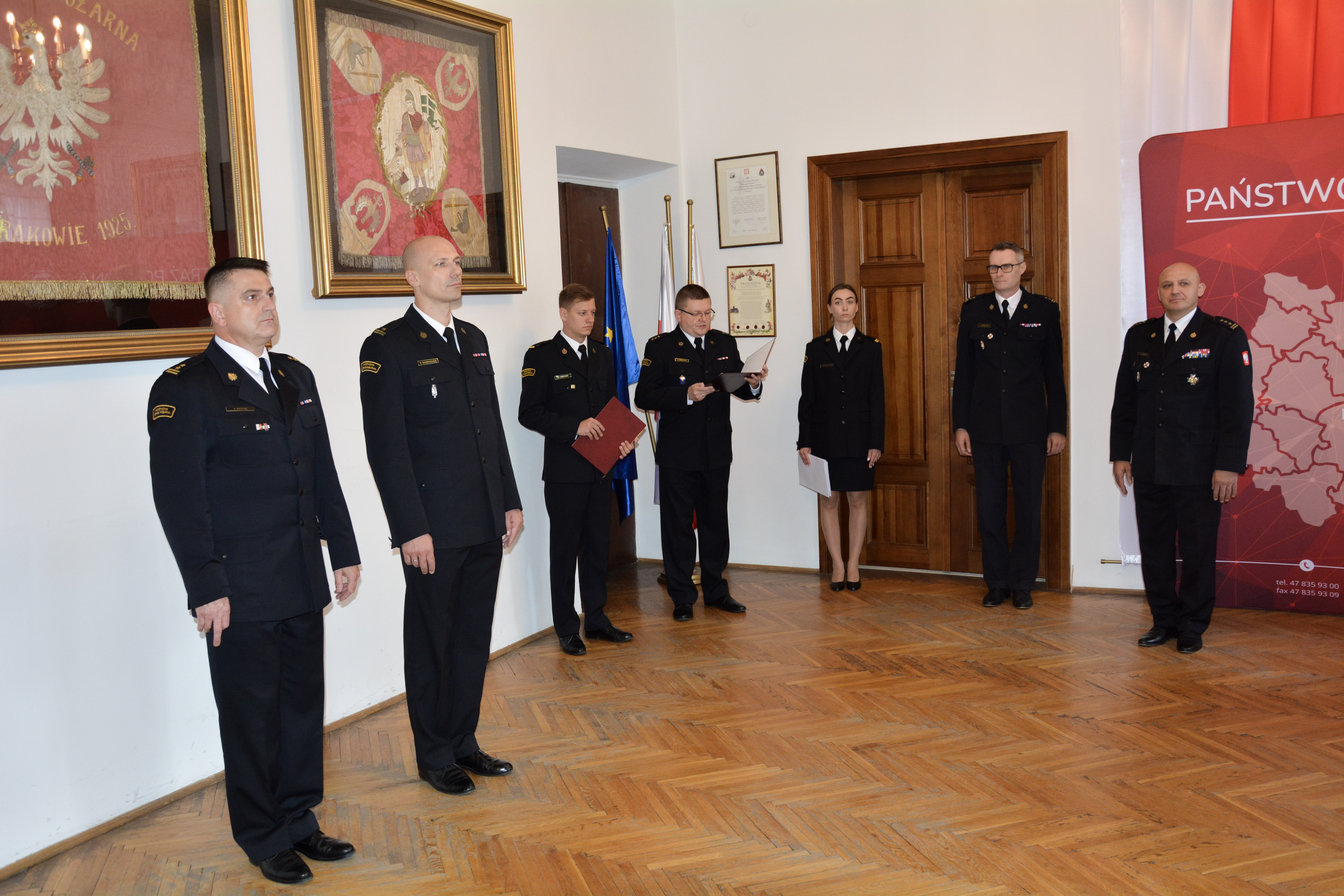 W dniu dzisiejszym, w sali portretowej Komendy Miejskiej PSP w Krakowie, odbyła się uroczysta zbiórka kadry kierowniczej, podczas której mianowano funkcjonariuszy na stanowiska wyższe stanowiska służbowe.