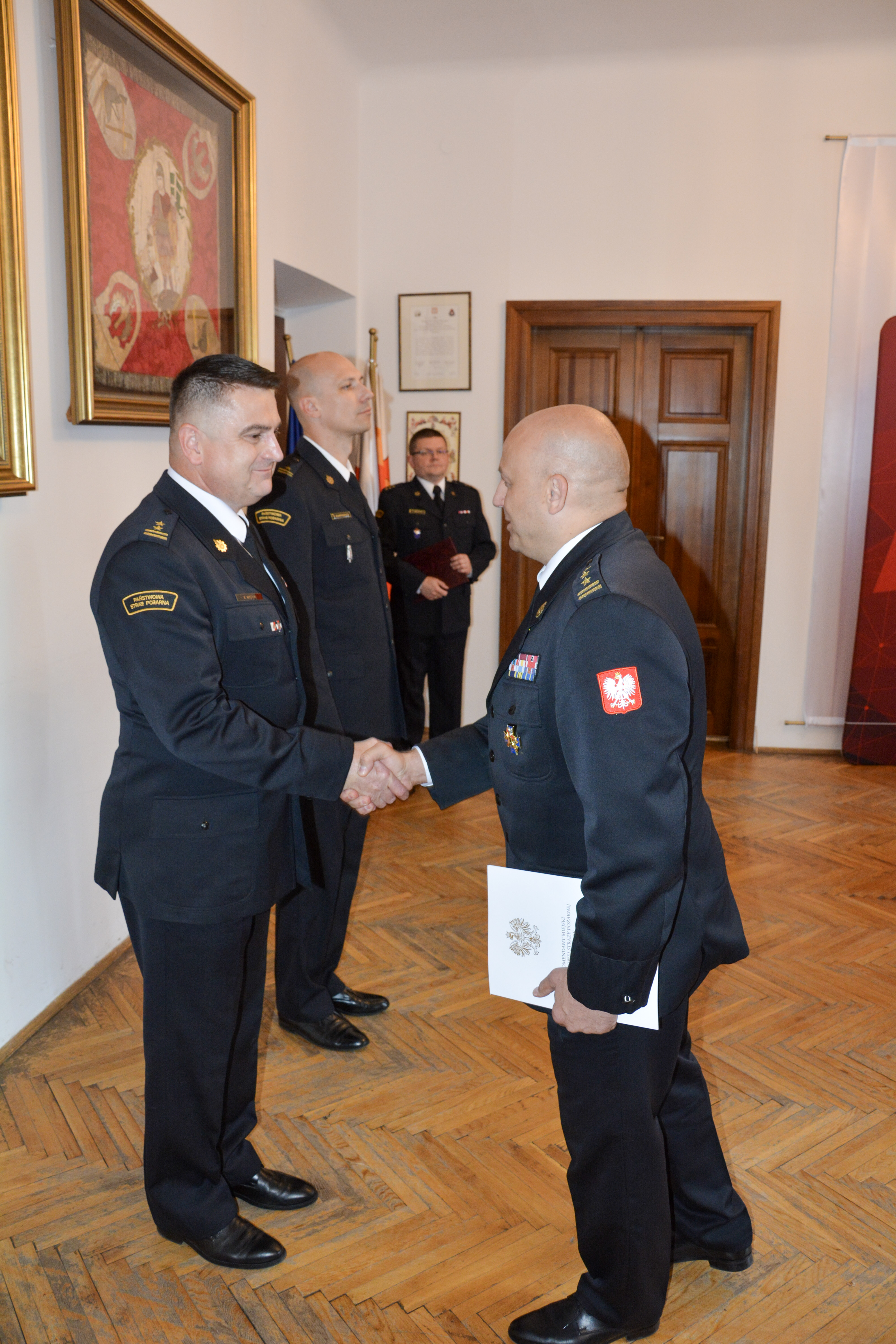 W uroczystości udział wzięli Komendant Miejski PSP w Krakowie st. bryg. Arkadiusz Kielin wraz z Zastępcą bryg. Łukaszem Szewczykiem, którzy wraz z kadra kierownicza Komendy Miejskiej PSP w Krakowie pogratulowali mianowanym funkcjonariuszom i życzyli im powodzenia oraz satysfakcji z pełnienia nowych obowiązków.
