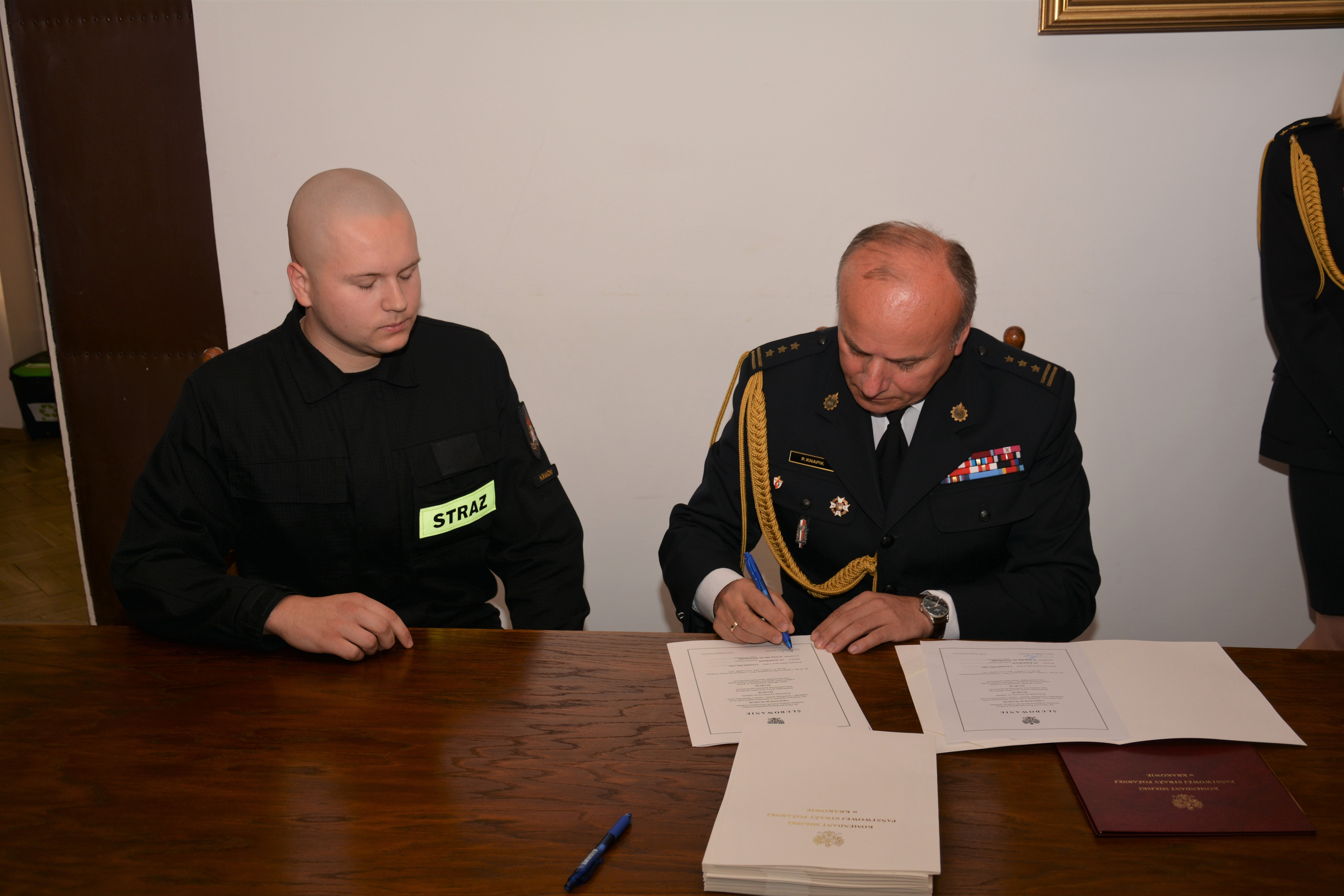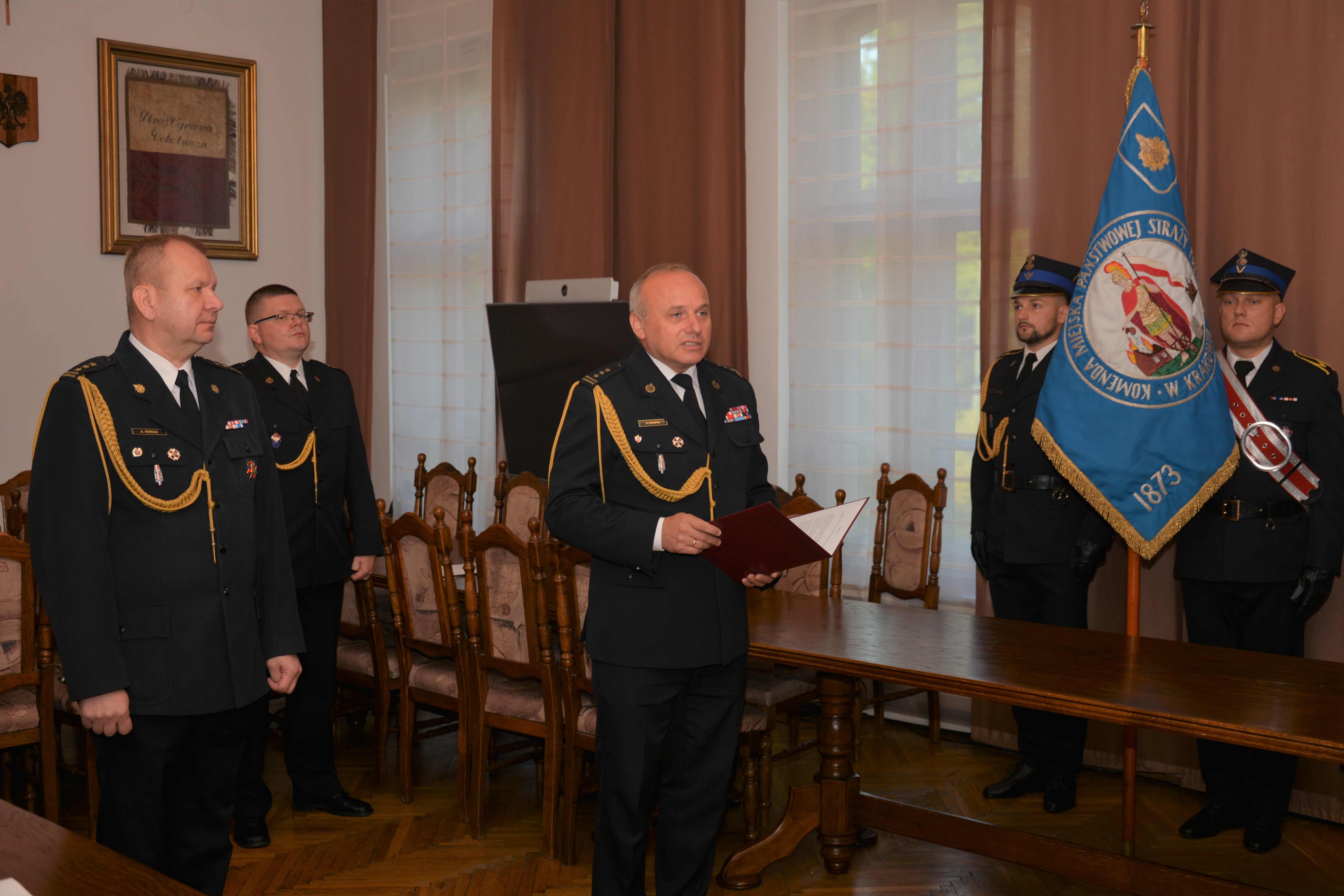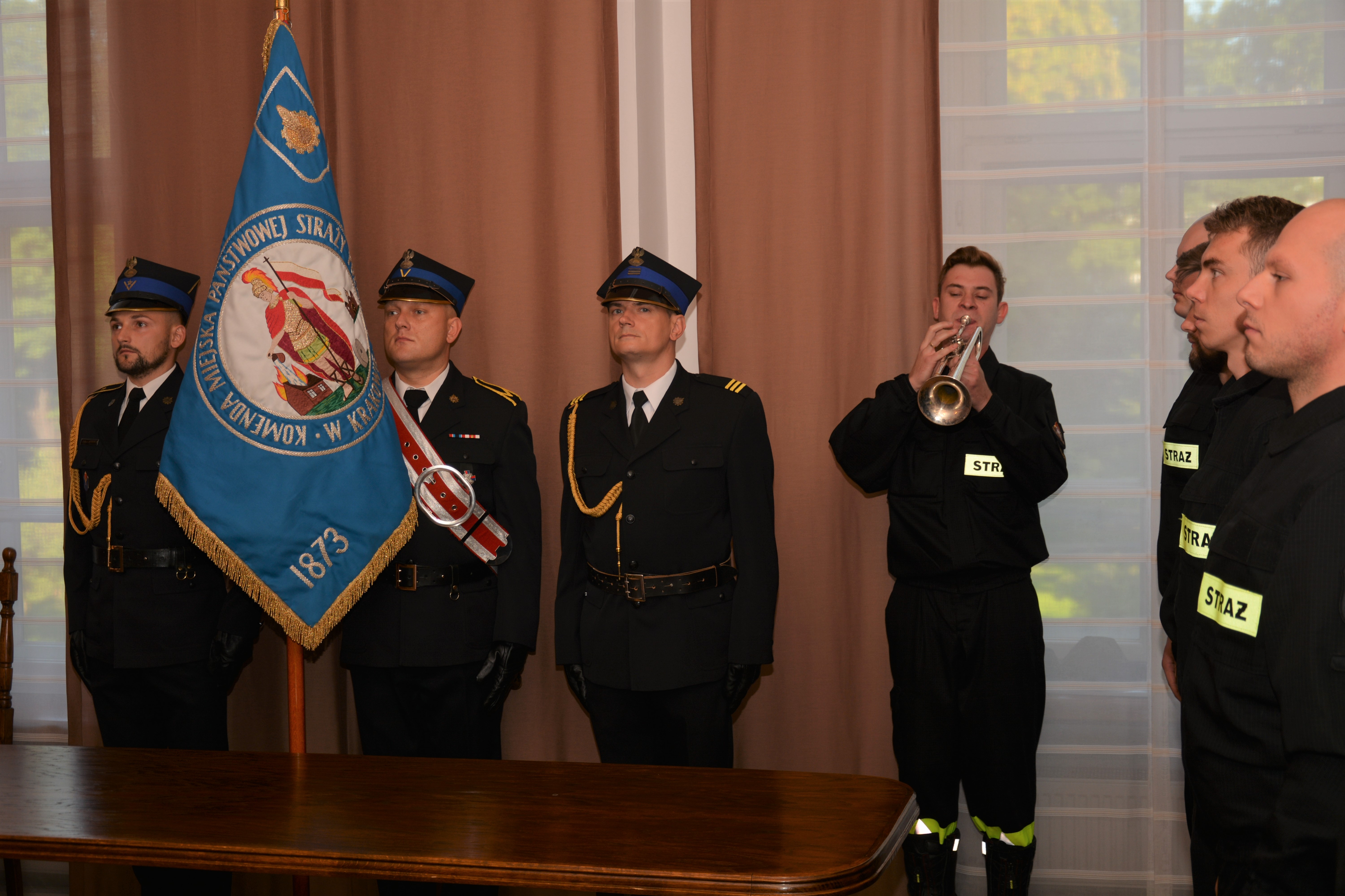 Przed sztandarem Komendy Miejskiej PSP w Krakowie, w obecności st. bryg. Pawła Knapika, Komendanta Miejskiego PSP w Krakowie oraz Dowódców Jednostek Ratowniczo - Gaśniczych Komendy Miejskiej PSP w Krakowie, w dniu 3 września 2021 roku kolejnych piętnastu nowo przyjętych do służby strażaków złożyło uroczyste ślubowanie. Słowami roty ślubowania zobowiązali się m. in.: „być ofiarnym i mężnym w ratowaniu zagrożonego życia ludzkiego i wszelkiego mienia – nawet z narażeniem życia, (...) przestrzegać prawa i dyscypliny służbowej, (...) strzec tajemnic związanych ze służbą, a także honoru, godności i dobrego imienia służby (...)". Następnie, po podpisaniu aktu ślubowania, Komendant pogratulował młodym strażakom wejścia na drogę strażackiej służby. Aby zdobyć odpowiednie kwalifikacje zawodowe młodzi adepci pożarnictwa wezmą w najbliższym czasie udział w szkoleniu podstawowym w zawodzie strażak. Życzymy im powodzenia.