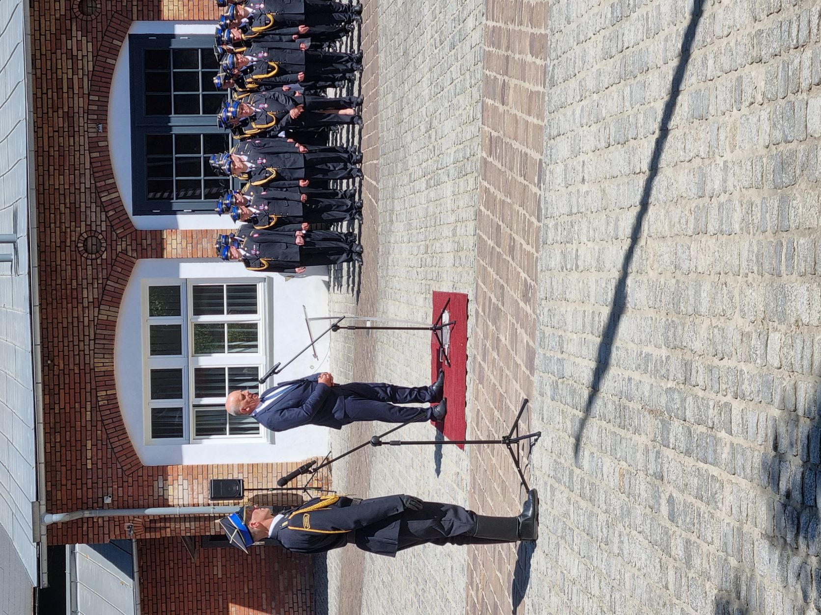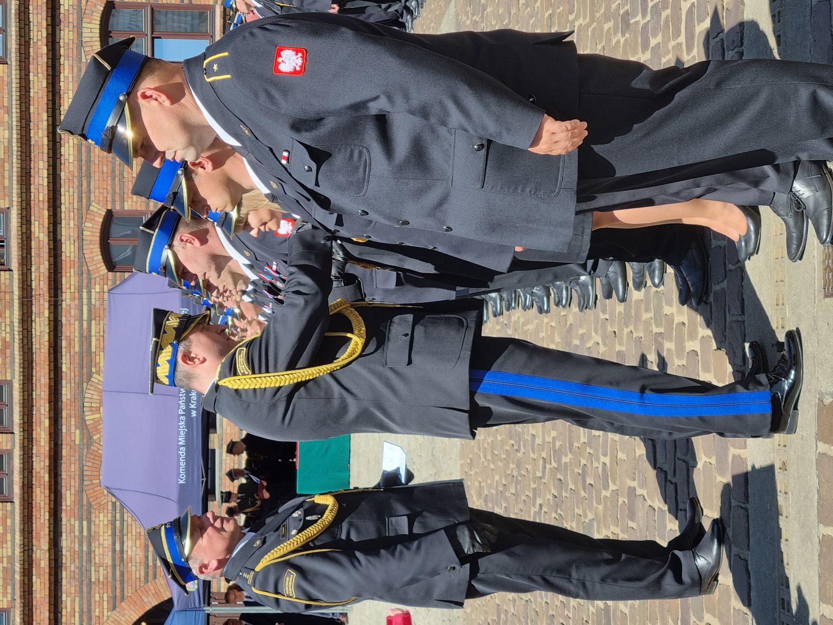 Apel rozpoczęło złożenie meldunku Dowódcy uroczystości do wojewody małopolskiego p. Łukasza Kmity, po czym wciągnięto flagę państwową na maszt i odegrano Hymn Polski.
