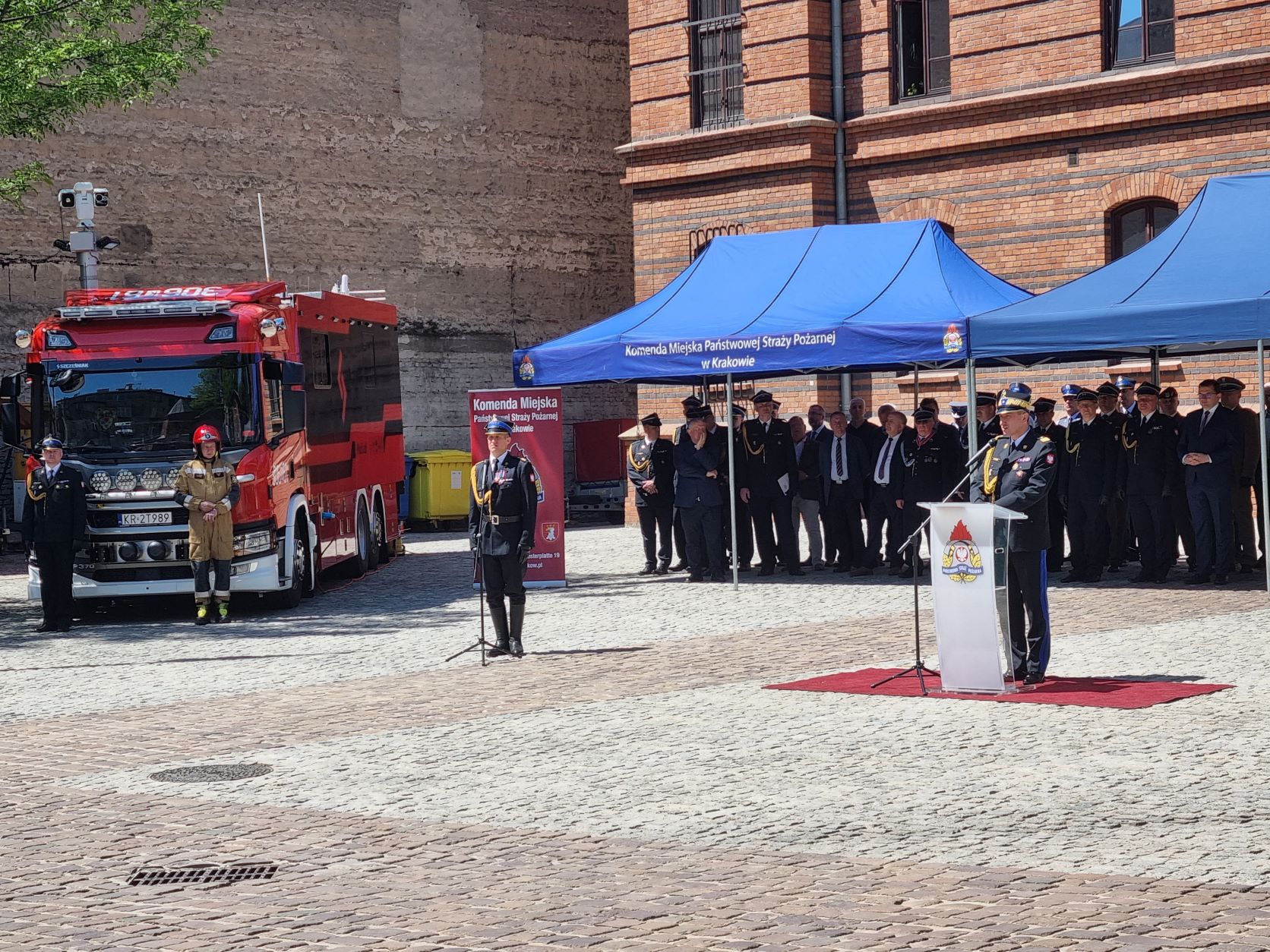 Swoje przemówienia podczas uroczystości oprócz Pana Wojewody wygłosili - gospodarz komendant miejski PSP w Krakowie st.bryg. Paweł Knapik , małopolski komendant wojewódzki PSP nadbryg. Piotr Filipek , sekretarz miasta Krakowa Antoni Fryczek, przewodniczący rady powiatu krakowskiego - Piotr Goraj, wiceprzewodniczący rady miasta Krakowa Artur Buszek, druh. Leszek Zięba - wiceprezes zarządu Oddziału Wojewódzkiego ZOSP RP.