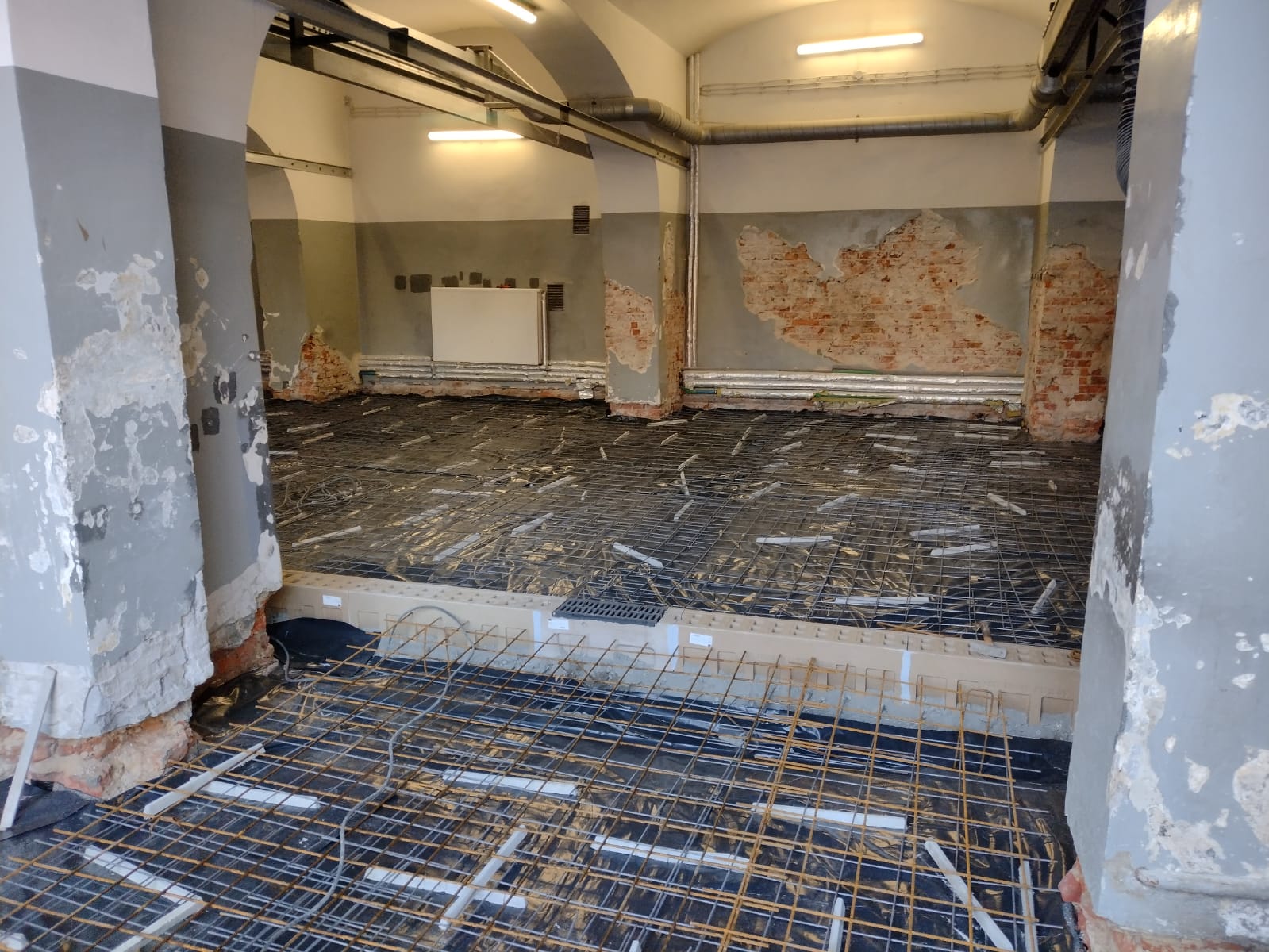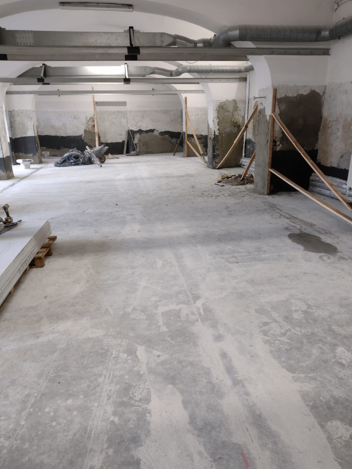 w Krakowie. Remont obejmował głównie prace ziemne, wykonanie podbudowy, wylanie nowej betonowej posadzki, położenie warstwy żywicznej, wykonanie odpływów oraz położenie nowych tynków na ścianach i filarach.