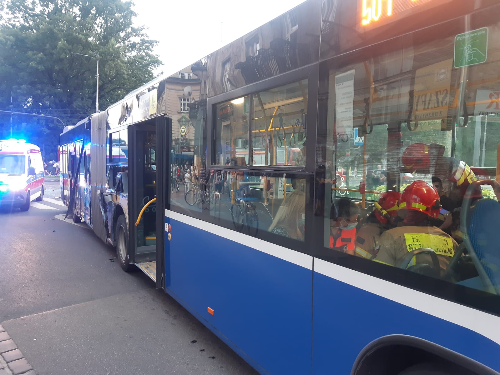 9.07 tuż po godzinie dwudziestej na skrzyżowaniu ul. Karmelickiej z Alejami Trzech Wieszczów doszło do zderzenia tramwaju linii 8 z autobusem 501. W wyniku zdarzenia poszkodowane zostały cztery osoby, które zostały opatrzone na miejscu przez ZRM. W akcji brało udział 5 zastępów PSP z JRG 1 i JRG 3.