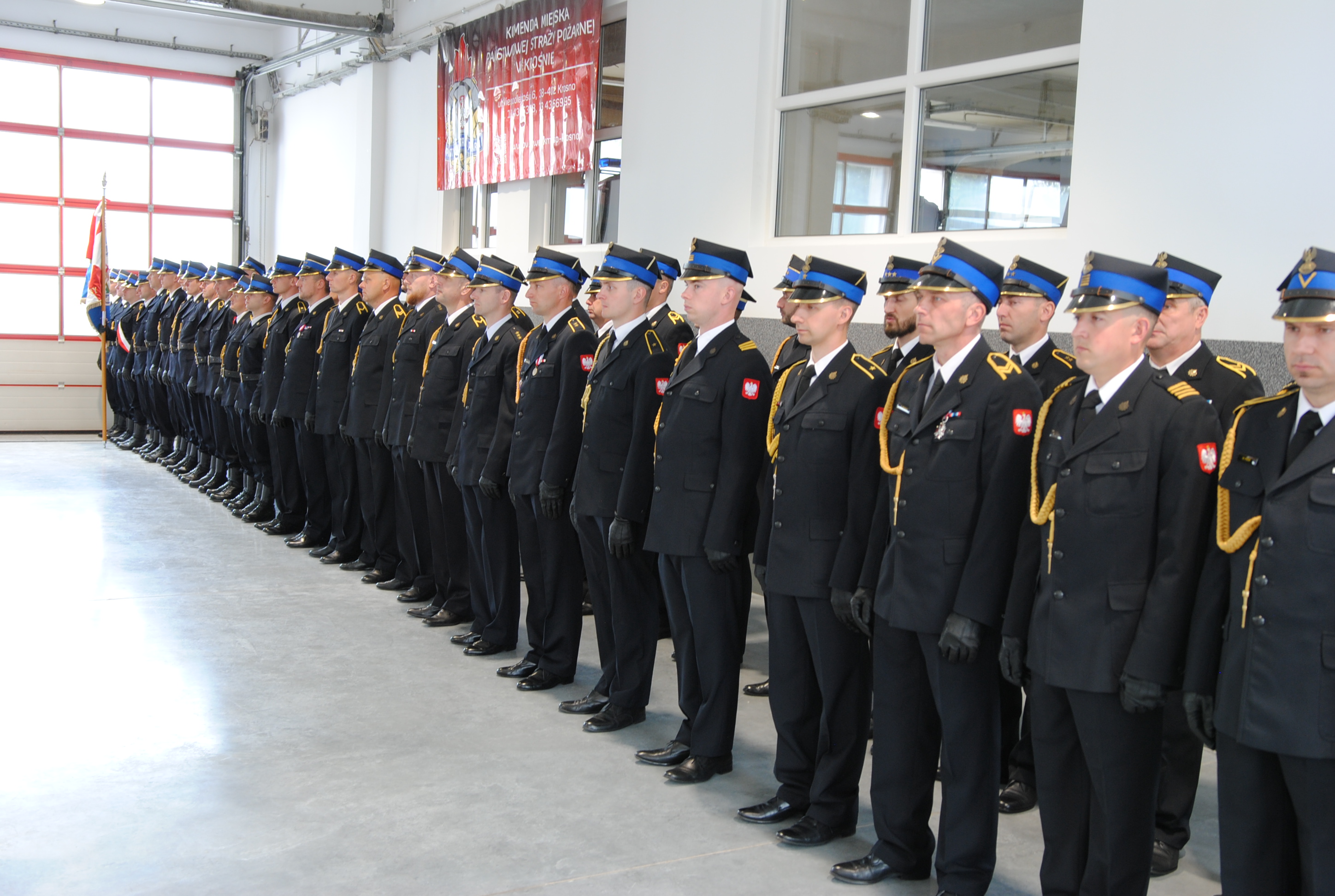 Po Mszy Świętej, w pomieszczeniu garażowym obiektu krośnieńskiej komendy, odbył się uroczysty apel z udziałem wielu znamienitych gości. Swoją obecnością zaszczycili m.in.