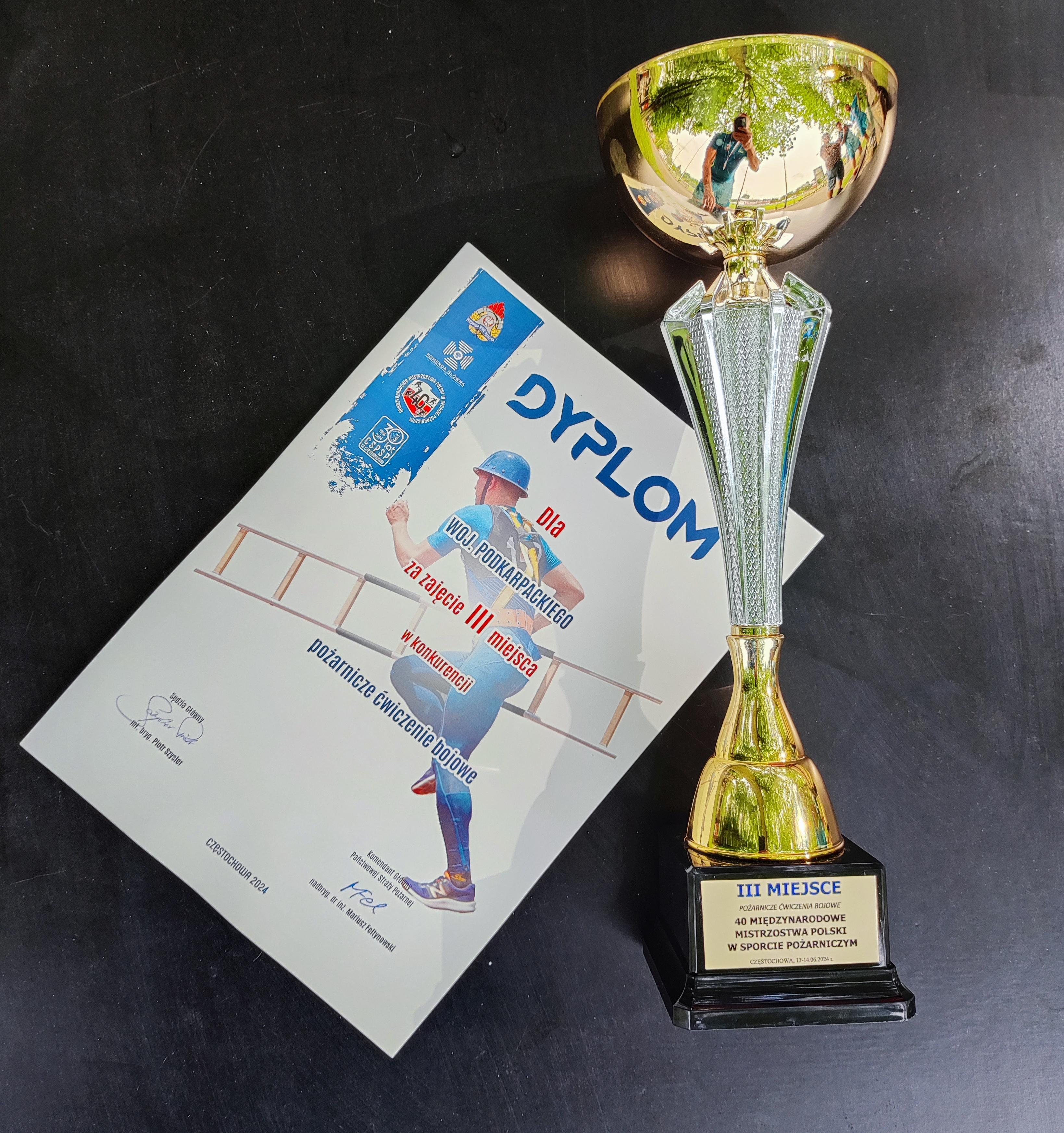 W dniach 13-14.06.2024 roku w Centralnej Szkole Państwowej Straży Pożarnej w Częstochowie, odbyły się 40 Międzynarodowe Mistrzostwa Polski w Sporcie Pożarniczym. Zawody stanowiły podsumowanie całorocznego trudu szkolenia sportowego strażaków, prowadzonego w jednostkach Państwowej Straży Pożarnej. W Mistrzostwach udział wzięło łącznie 21 drużyn i 182 zawodników w konkurencjach indywidualnych i drużynowych. Trzon, kadry woj. podkarpackiego stanowili strażacy z komendy miejskiej PSP w Krośnie. Drużyny rywalizowały łącznie w 4 konkurencjach. Jedną z konkurencji było „pożarnicze ćwiczenie bojowe”, gdzie województwo podkarpackie reprezentowała drużyna naszej komendy. Prawo do startu, krośnieńska drużyna wywalczyła sobie dwa tygodnie temu, wygrywając mistrzostwa na szczeblu wojewódzkim. W trakcie mistrzostw polski krośnieńscy strażacy wykonali swoje ćwiczenie w czasie 27,04 sek., co pozwoliło na zajęcie III miejsca. Na pierwszym miejscu uplasowała się drużyna województwa kujawsko-pomorskiego, z czasem 26.22 sek., a drugą lokatę zajęło województwo świętokrzyskie z czasem 26.39 sek.