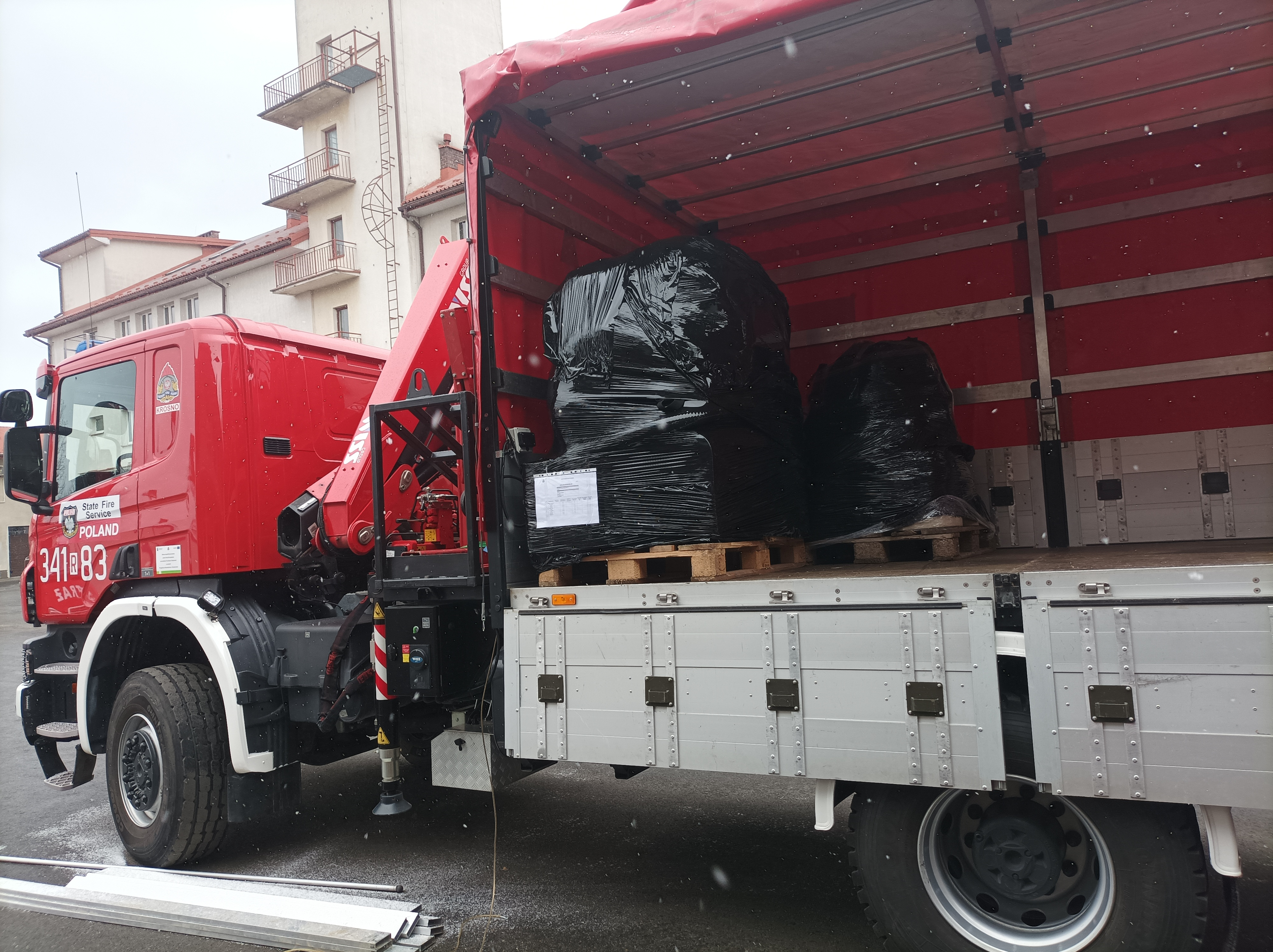 W dniu 28 lutego, sprzęt został spakowany na palety oraz przewieziony trzema pojazdami KM PSP Krosno do dalszego punktu koncentracji w Komendzie Wojewódzkiej PSP w Rzeszowie.