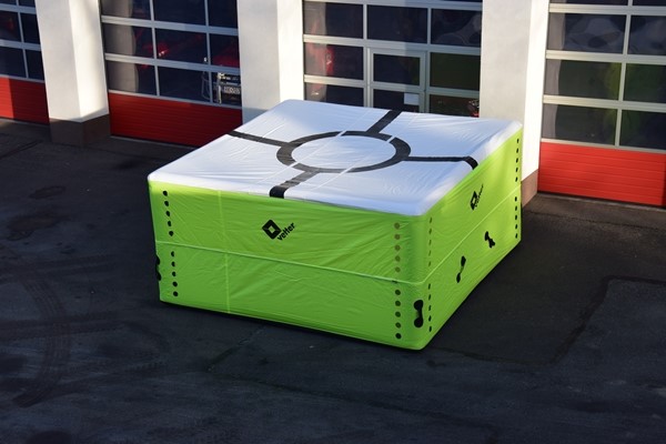 Skokochron o powierzchni 12m2 powala na ewakuację osób z wysokości do 16 metrów. Sprzęt posiada pneumatyczny stelaż, którego napełnienie zajmuje około 30 sekund. Niska waga (ok.70kg) pozwala na jego obsługę przez dwóch strażaków.