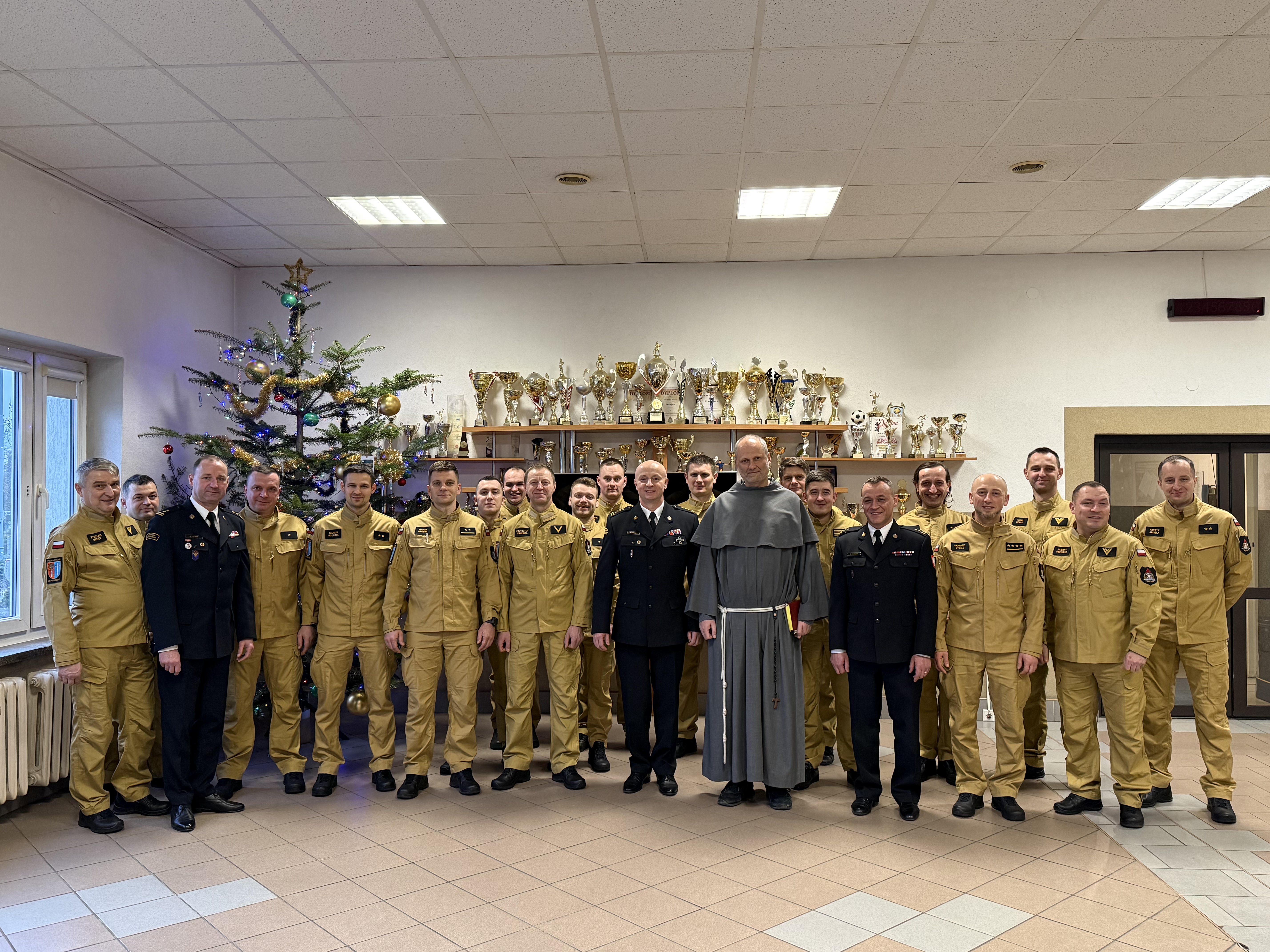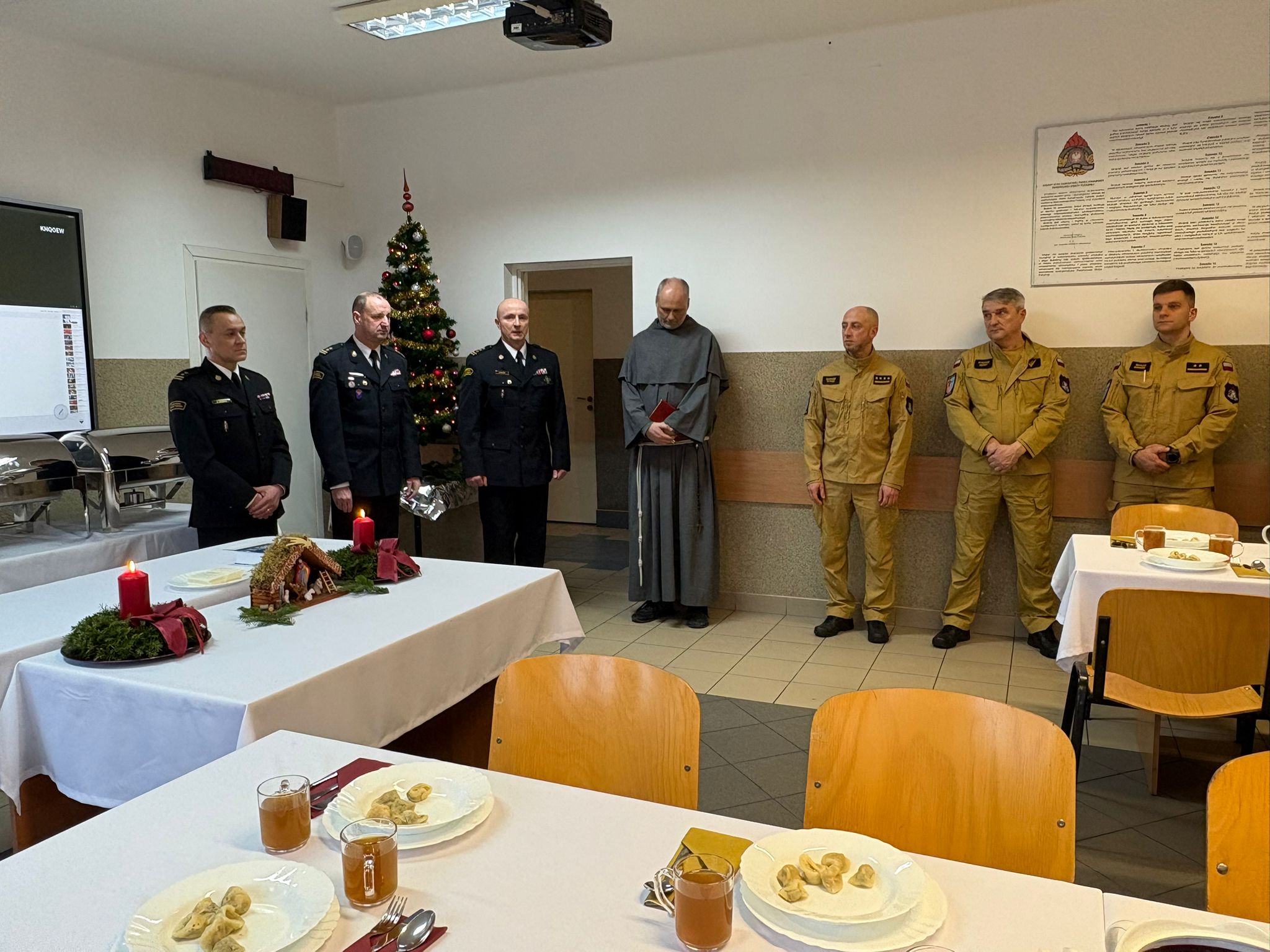W dniu 24.12.2025 r. w Komendzie Miejskiej Państwowej Straży Pożarnej w Krośnie odbyła się kolacja wigilijna strażaków. Wspólne spotkanie, swoją obecnością zaszczycił oraz rozpoczął modlitwą, Gwardian Klasztoru o.o. Franciszkanów o. Piotr Micał. Następnie, Komendant Miejski PSP,