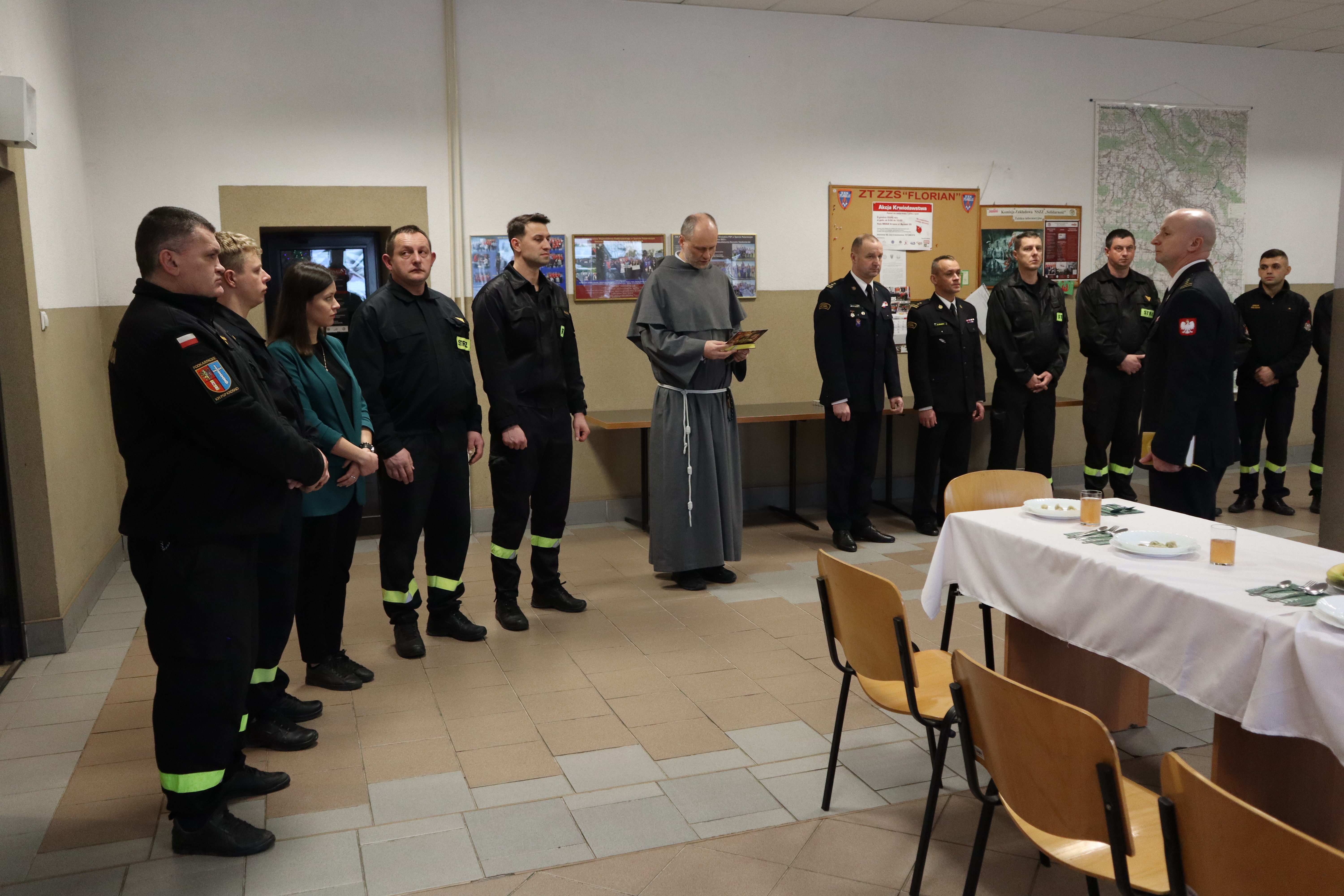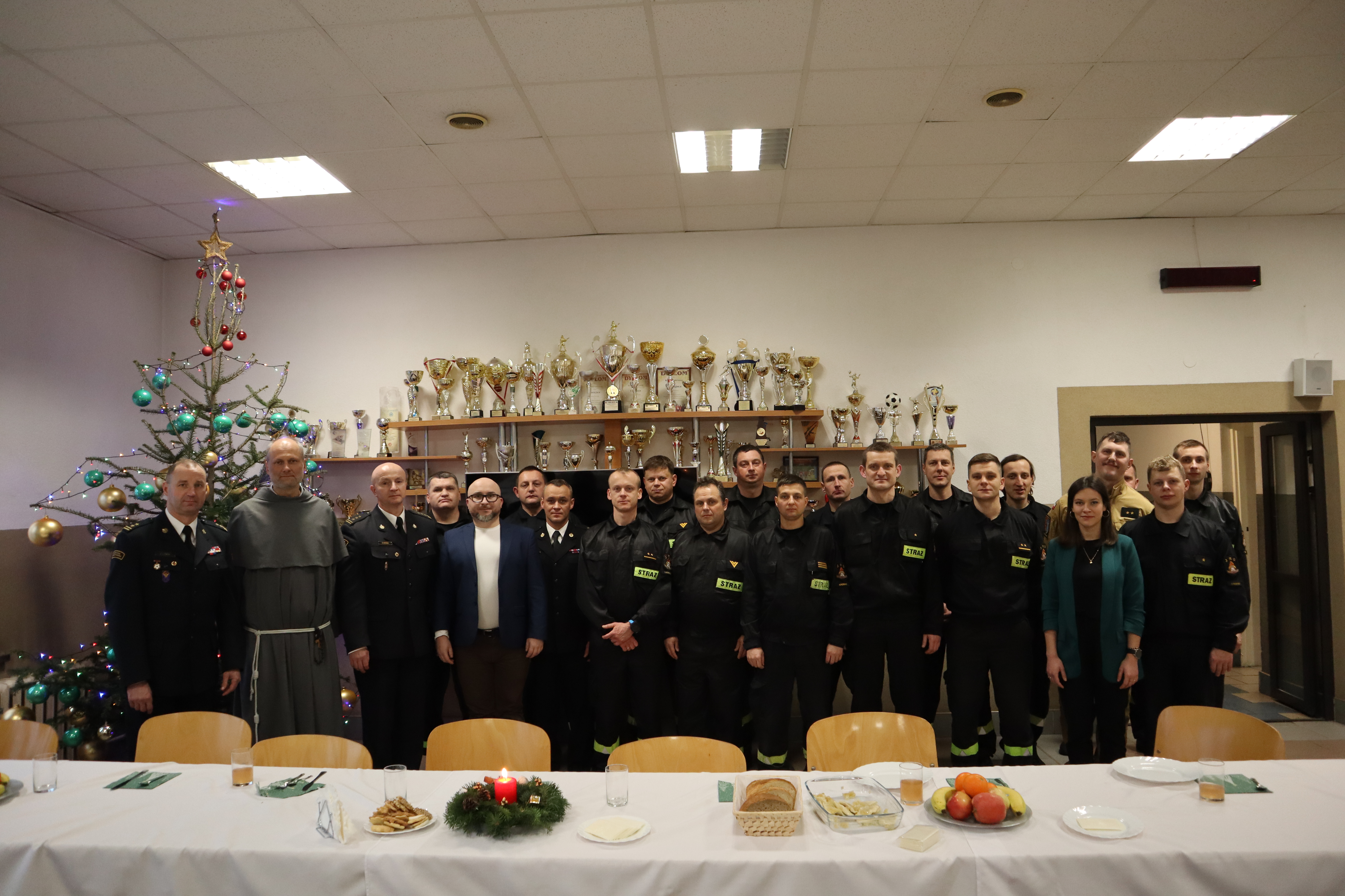 W dniu 24.12.2024 r. w Komendzie Miejskiej Państwowej Straży Pożarnej w Krośnie odbyła się kolacja wigilijna strażaków. Wspólne spotkanie, swoją obecnością zaszczycił oraz rozpoczął modlitwą, Gwardian Klasztoru o.o. Franciszkanów o. Piotr Micał. Następnie Komendant Miejski st. bryg. Zbigniew Nowak podziękował strażakom za służbę w kończącym się 2024 r. i złożył życzenia bożonarodzeniowe. Po połamaniu się opłatkiem wszyscy obecni zasiedli do wspólnego wigilijnego stołu.